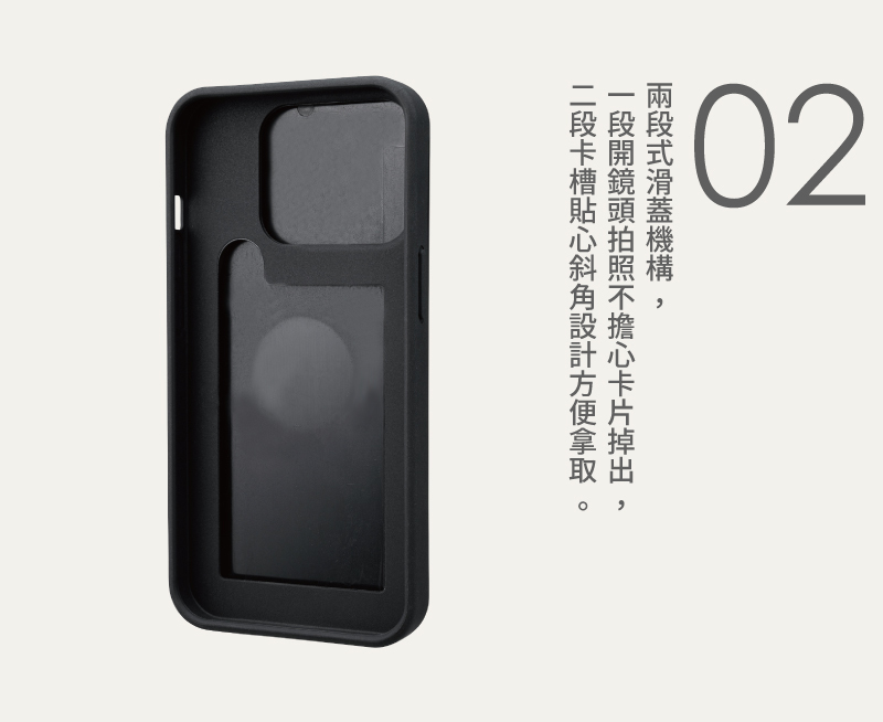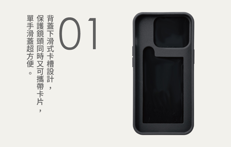 • 背蓋下滑卡槽設計,攜帶卡片好方便