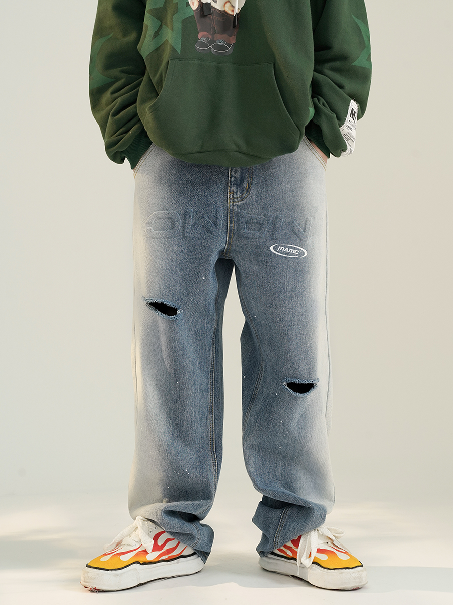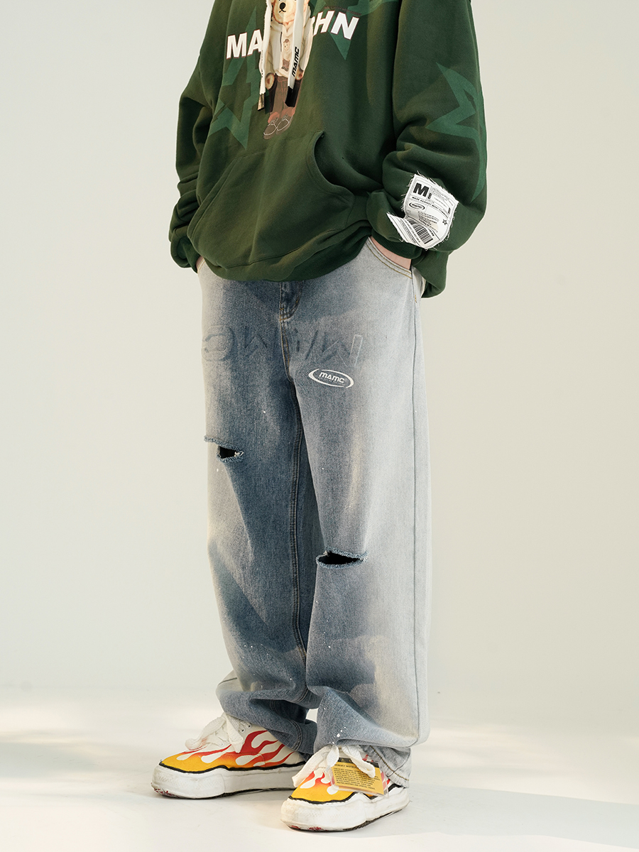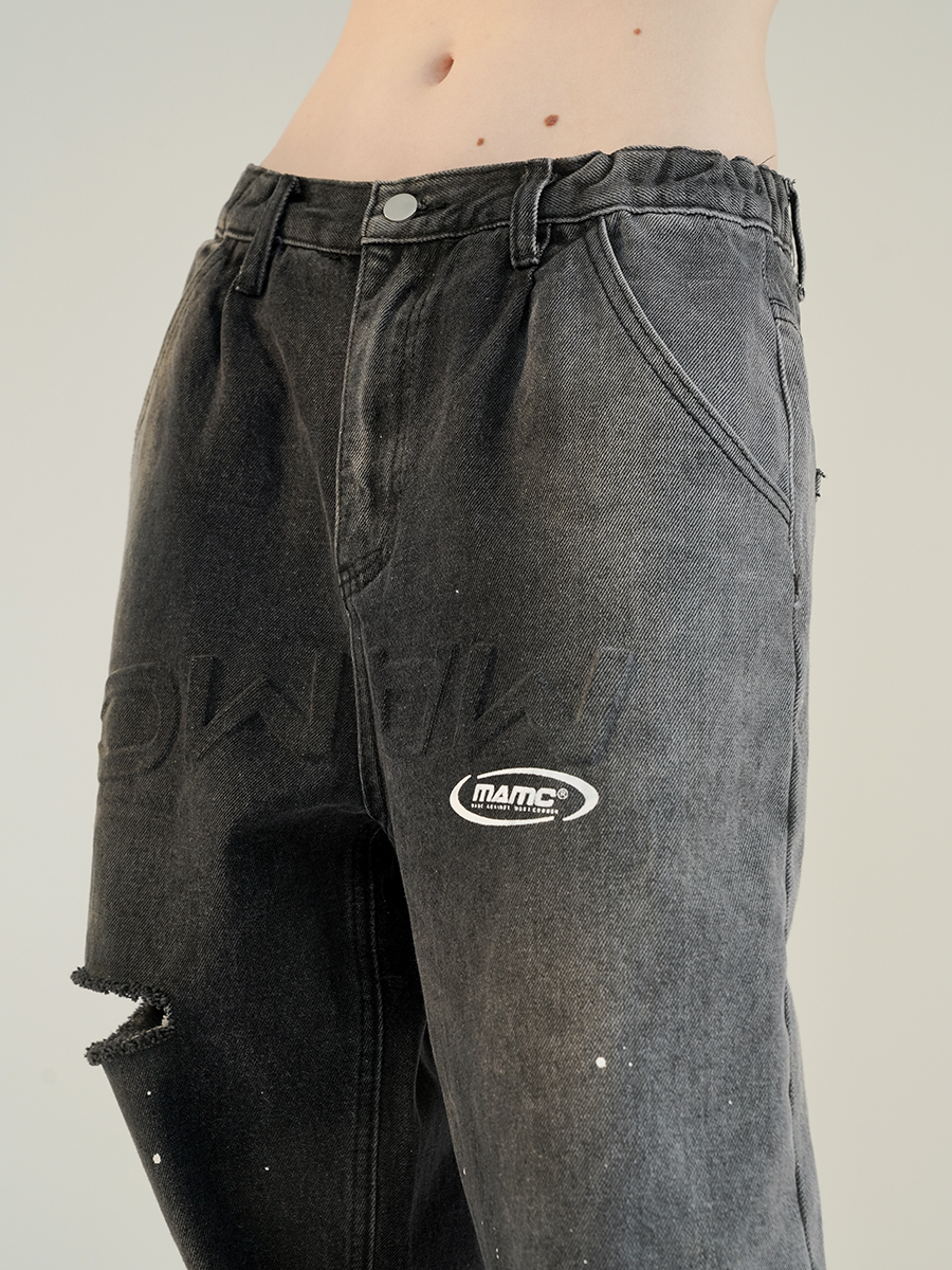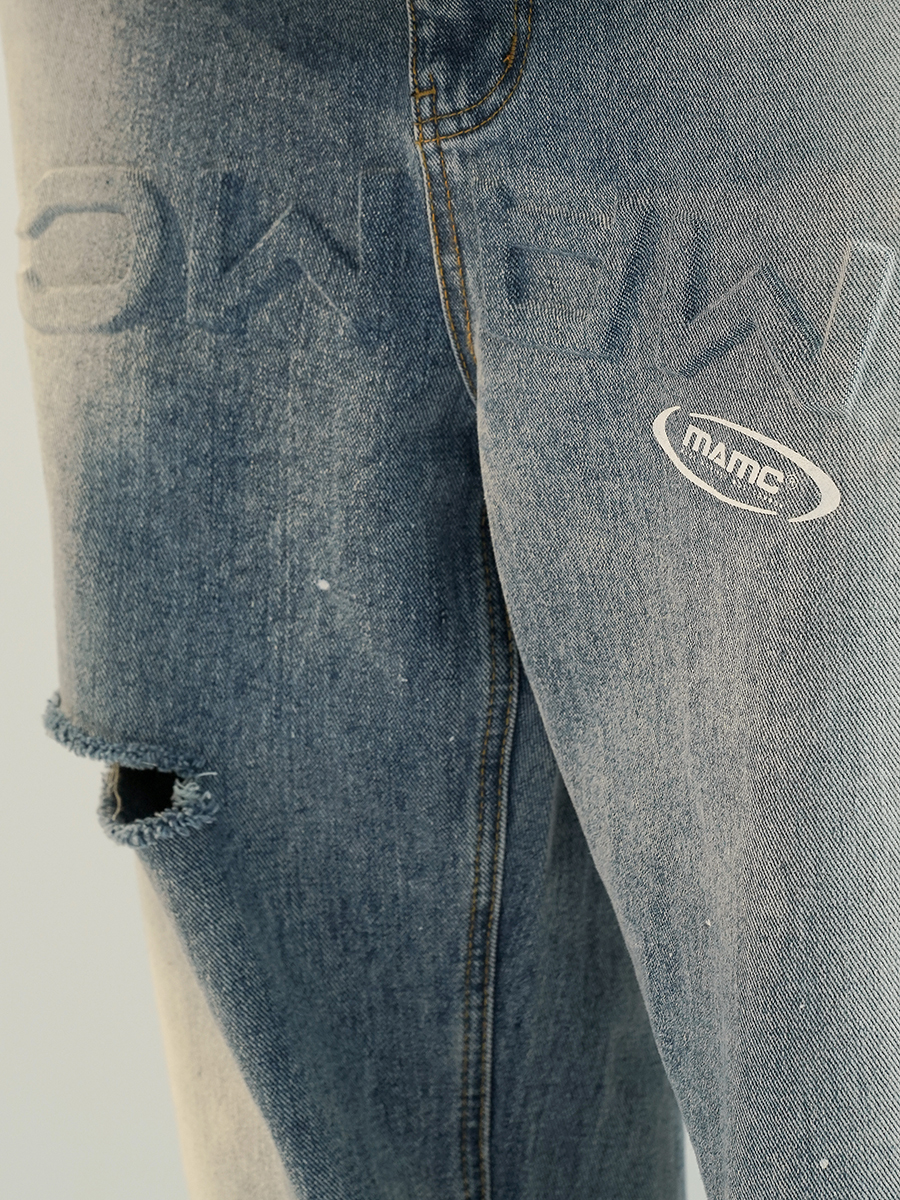 MAMC 拼色潑墨牛仔長褲 - 2色