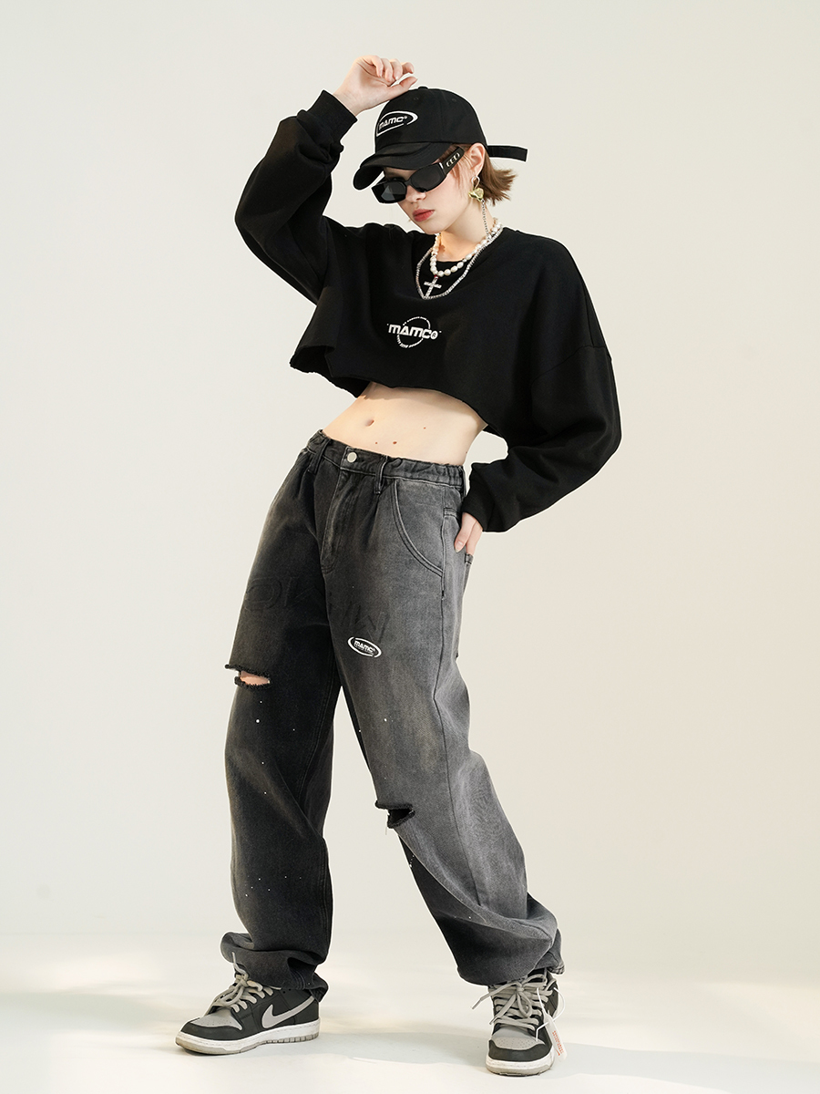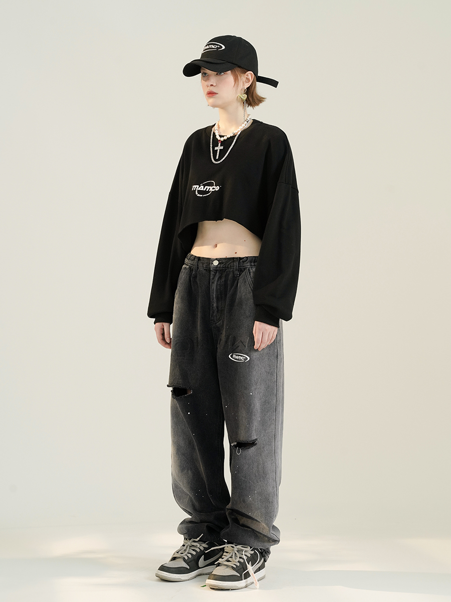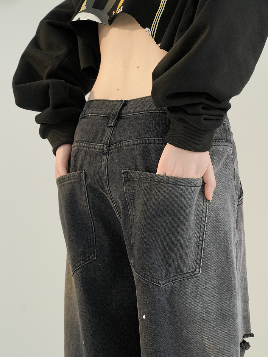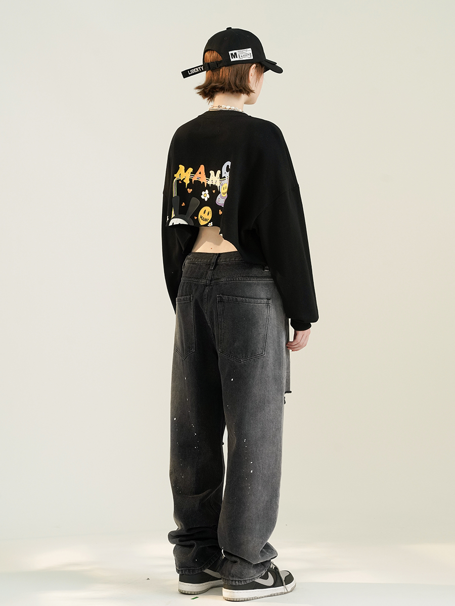 MAMC 拼色潑墨牛仔長褲 - 2色