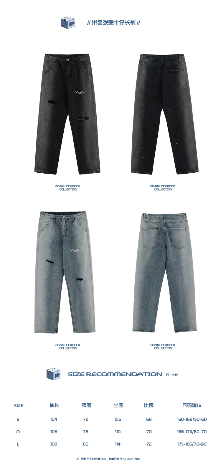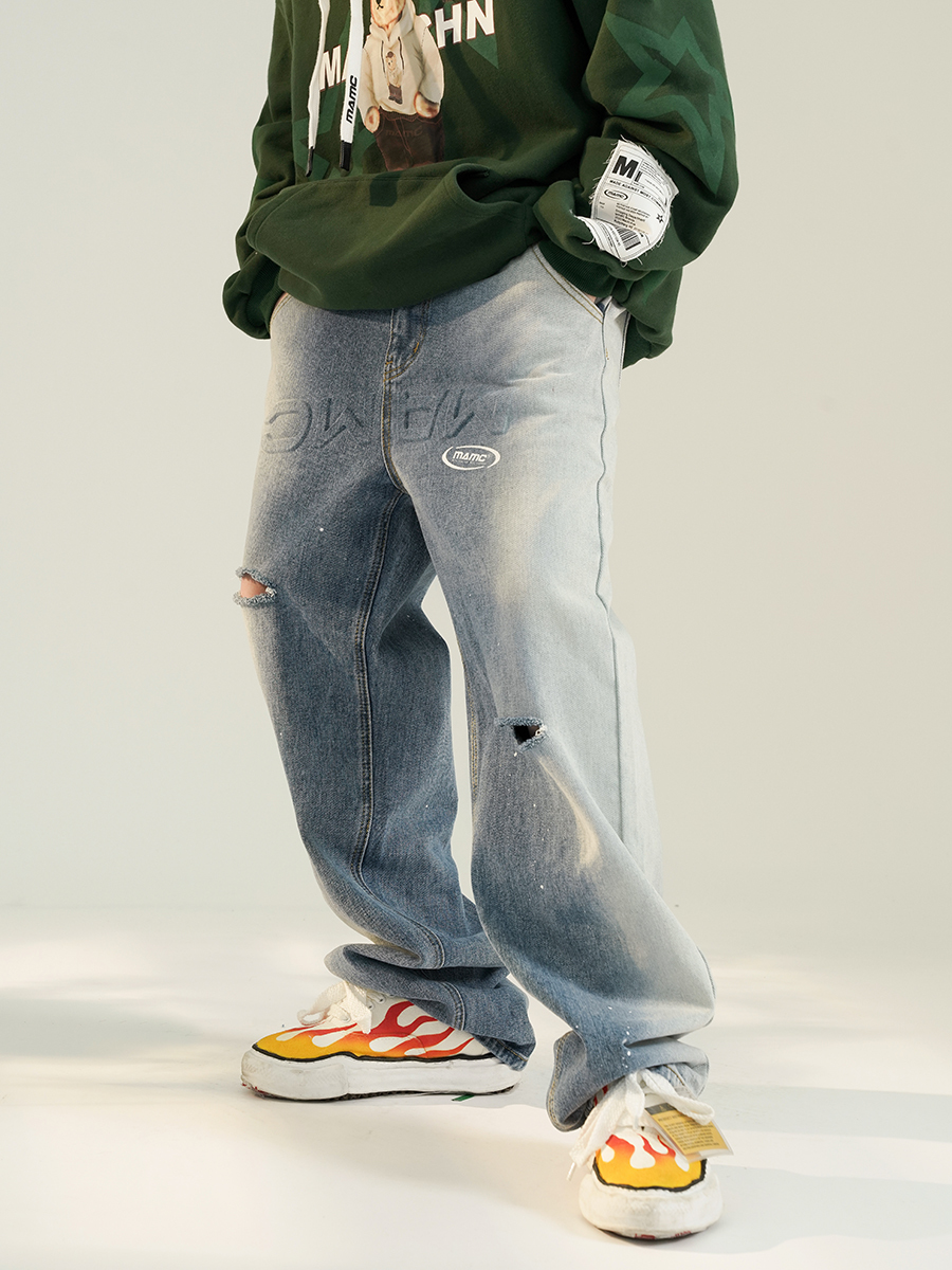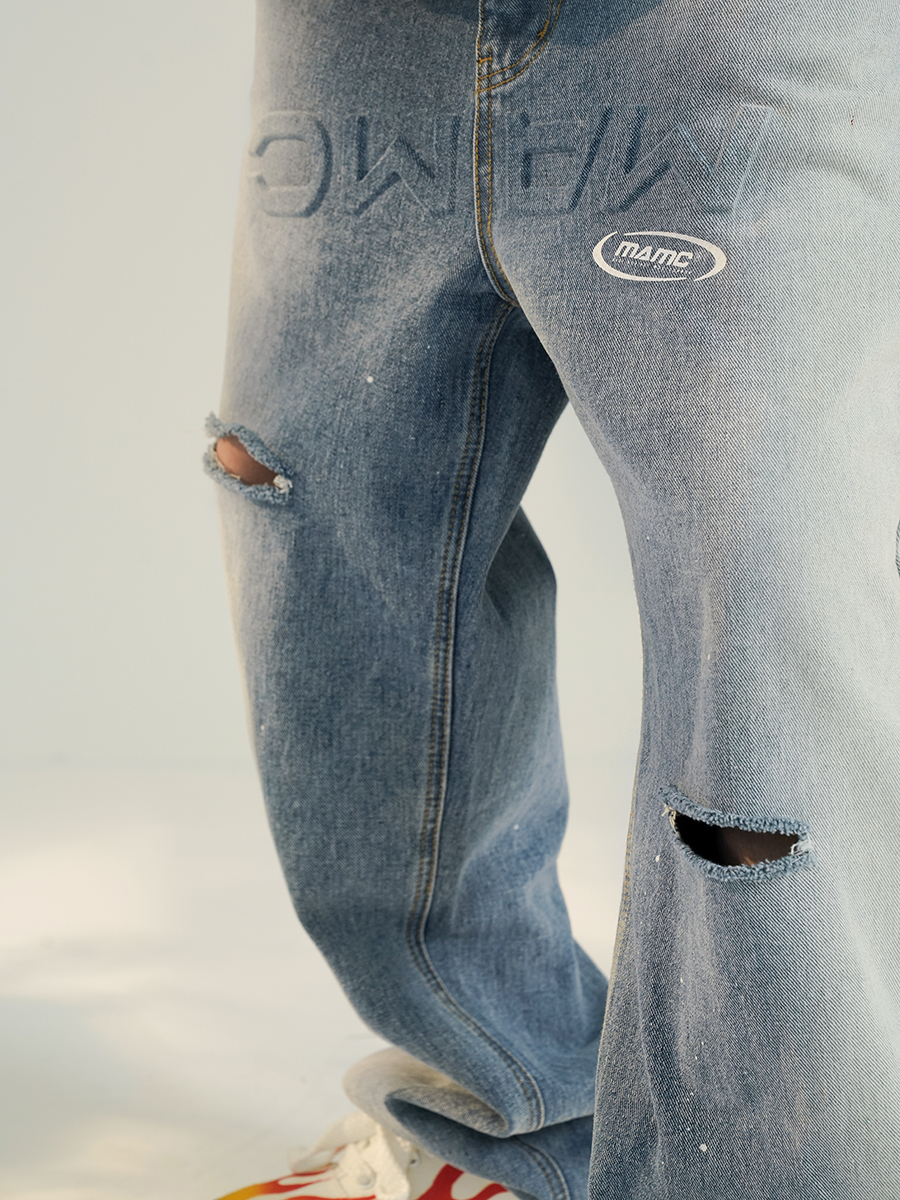 【 MAMC | 拼色潑墨牛仔長褲 - 2色 】