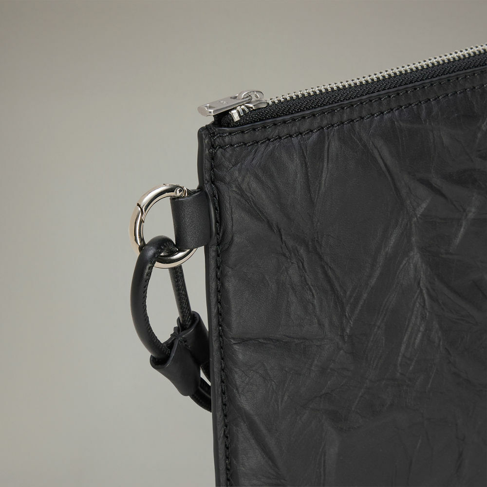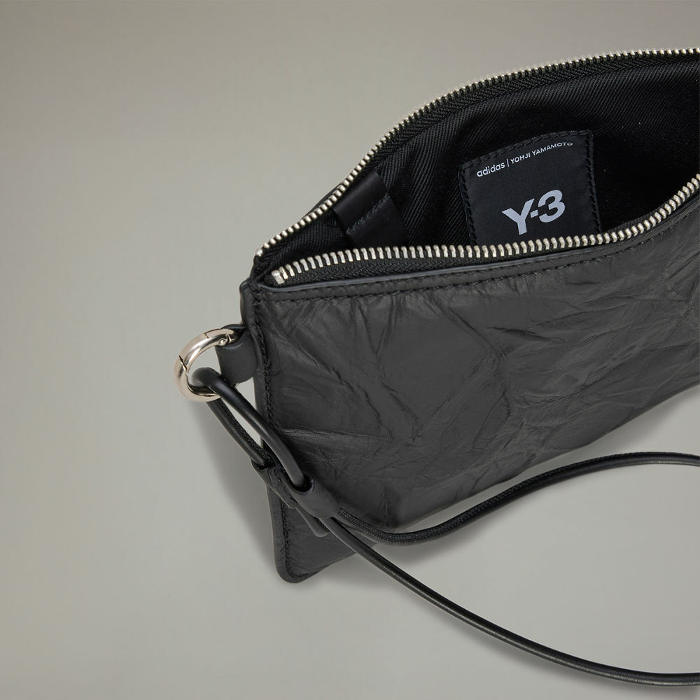 【 Y-3 POUCH 皺褶皮革手拿包 - 黑 】
