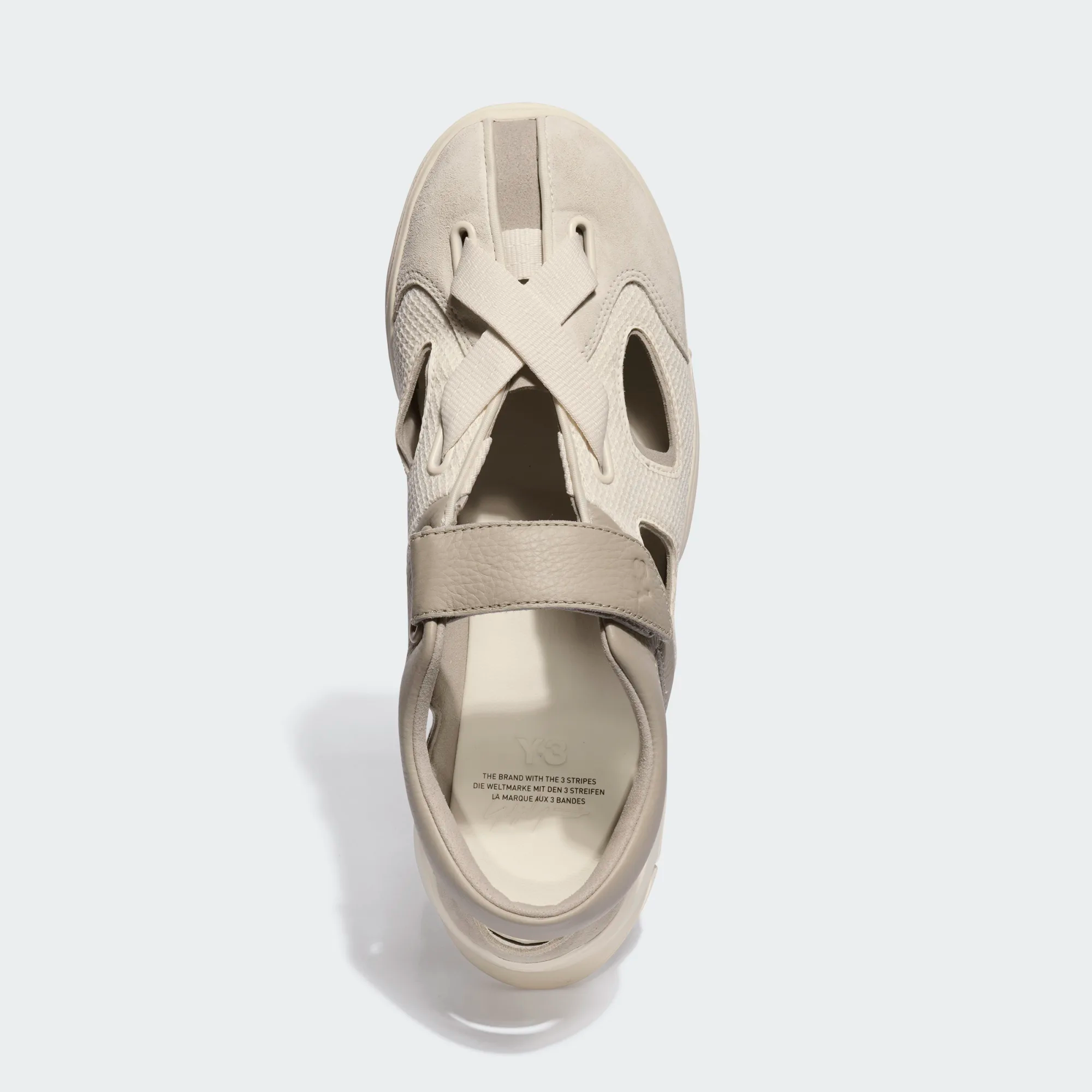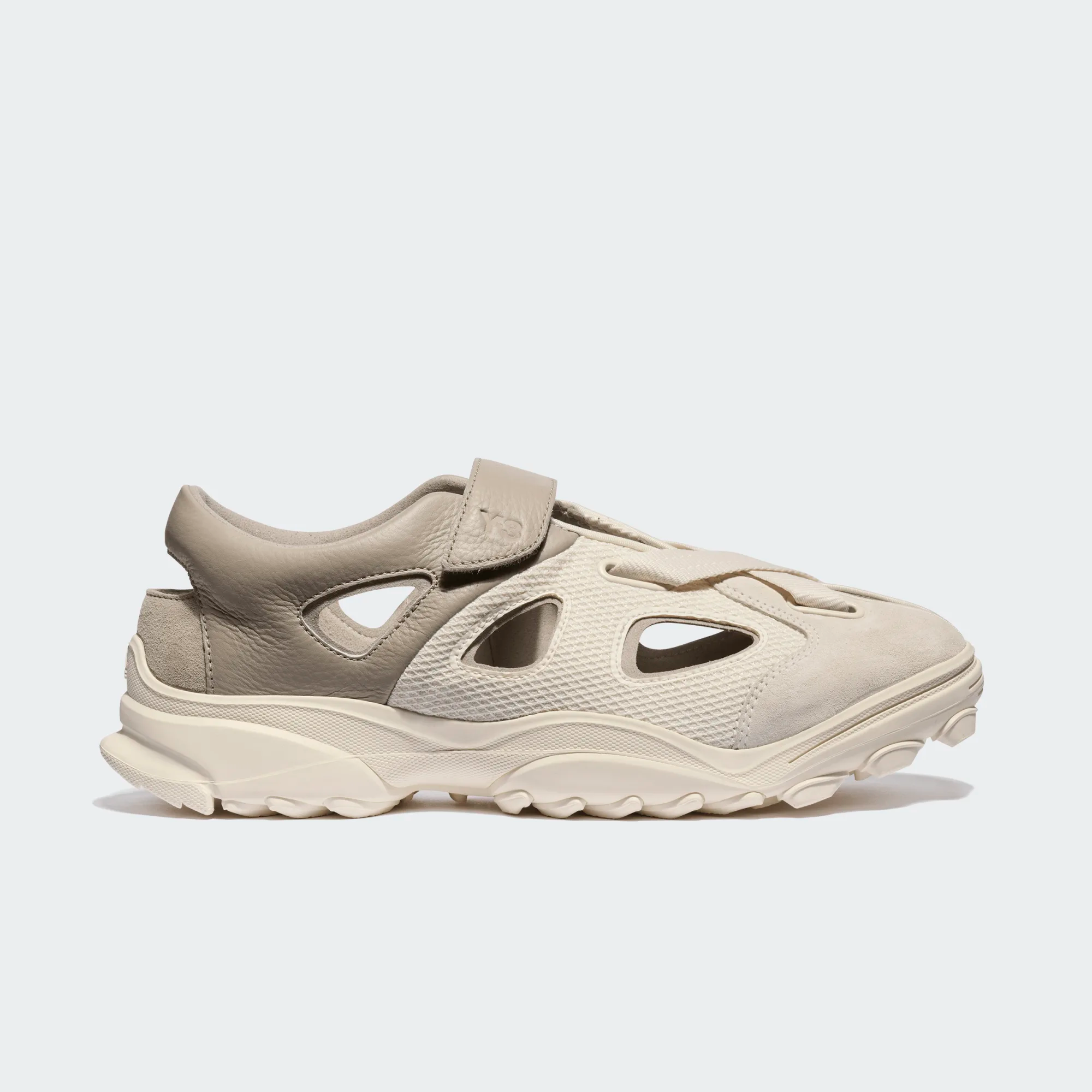 細節方面,魔鬼氈黏扣帶設計帶來便捷穿脫與穩定包覆,無論是城市街頭穿梭或日常輕鬆出行,都能自在應對。鞋帶上的 Y-3 標誌點綴,為整體造型增添俐落且具有辨識度的收尾。
