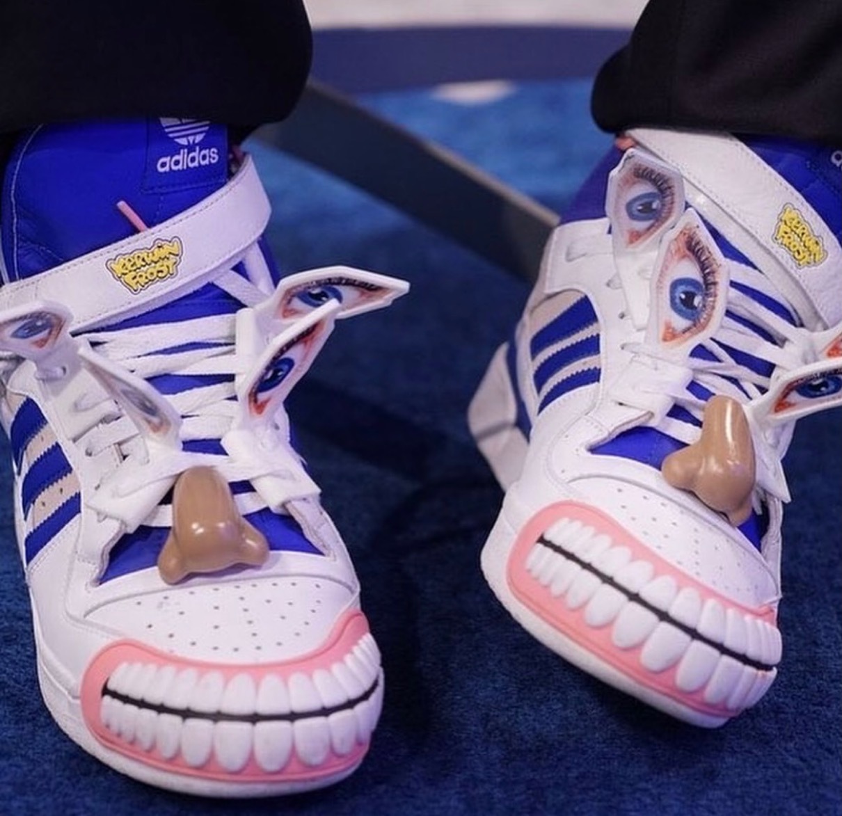 ★ 在美國相當有名氣的饒舌歌手兼喜劇演員 Kerwin Frost 與 adidas 聯手開啟一系列的瘋狂合作,推出讓人過目想忘都難並充滿特色的聯乘系列商品,強烈的喜劇風格甚至超越「翅膀鞋」的瘋狂設計師 Jeremy Scott 過往作品。"與阿迪達斯合作打造這個系列是我小時候的夢想,從設計產品到最終出現在這世上真是太瘋狂!!!"KerwinFrost說。他會設計這風格強烈的系列作品,為的就是想告訴大家他一直以來的信念"不要害怕嘗試新事物並將你的想法記錄起來,也絕對不要在乎別人的想法,做 1000% 的自己是一件非常有趣的事情!"