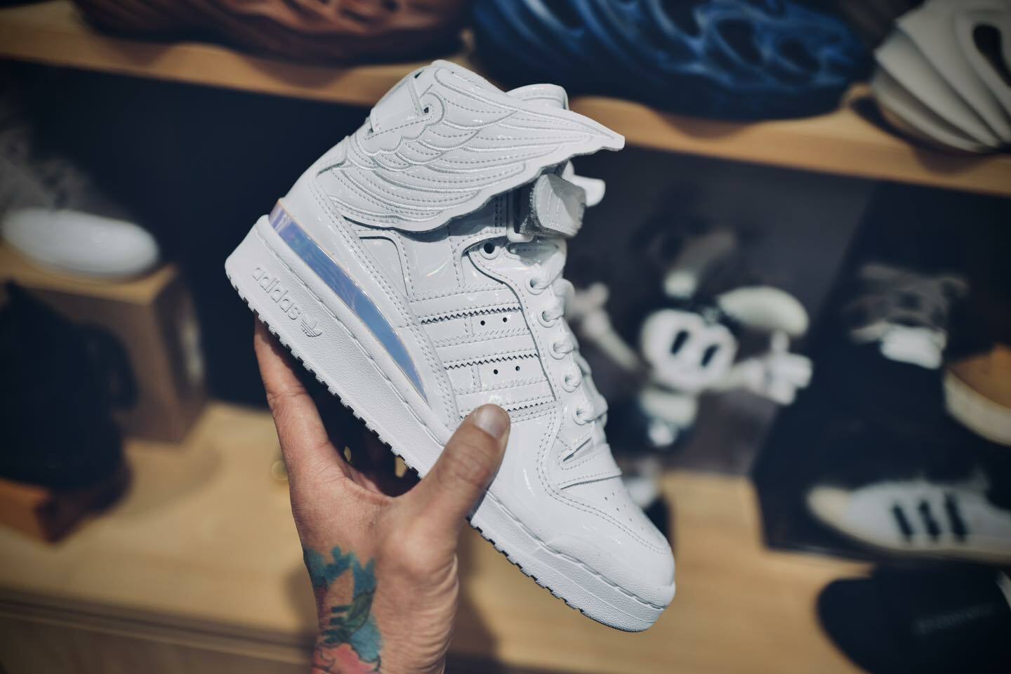 這次 Jeremy Scott 特別將翅膀角度,做了相反的方向,一改過往張揚飛翔的視覺,反而將翅膀由後往前包裹著腳踝去設計,呈現出另外一種合上翅膀的天使羽翼感,讓人有種莫名的安心感,並且給了很棒的上腳感覺,謝謝Jeremy Scoot在20年後,還能給我們更多更期待的想像空間~