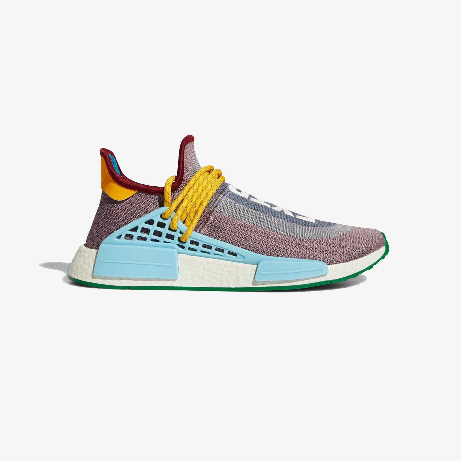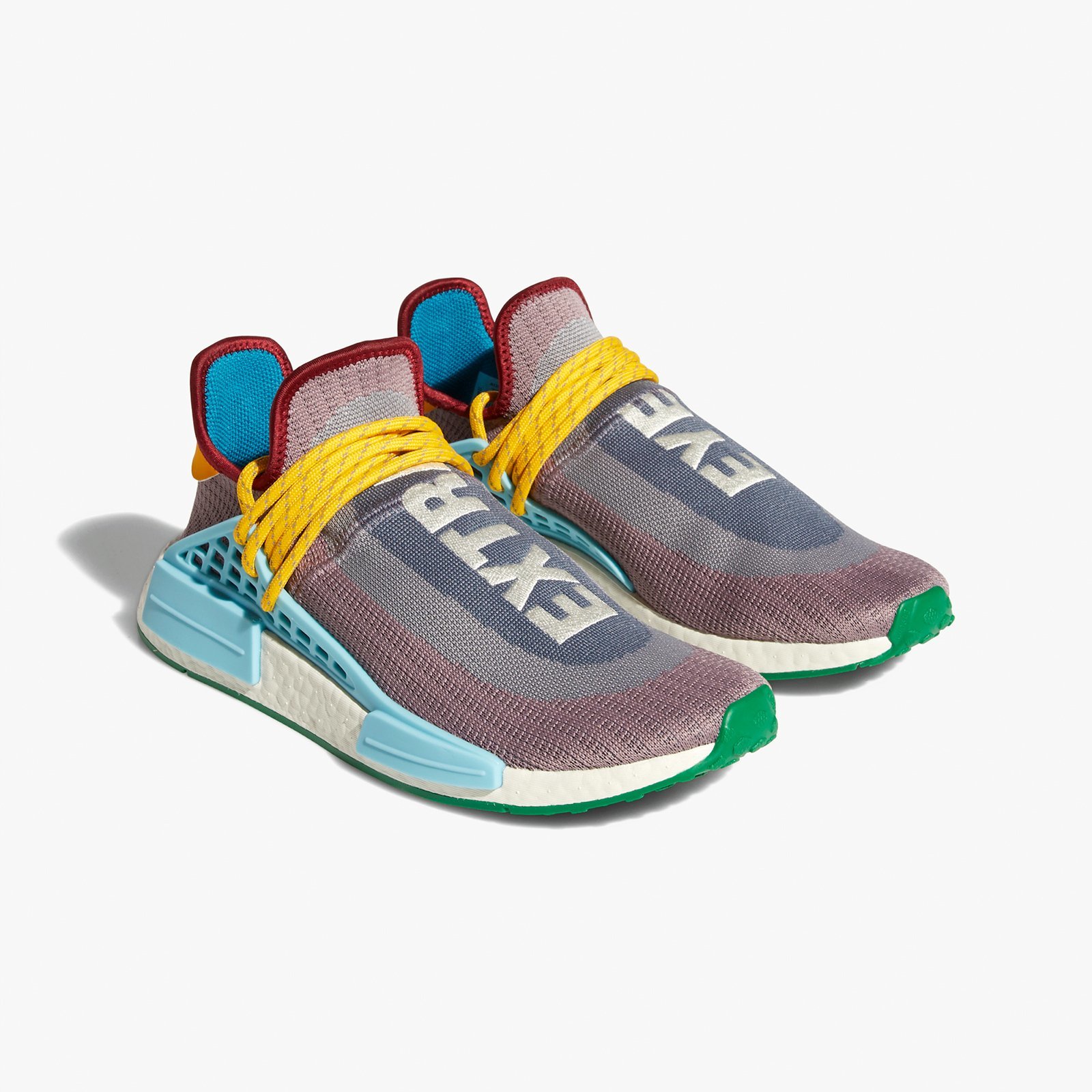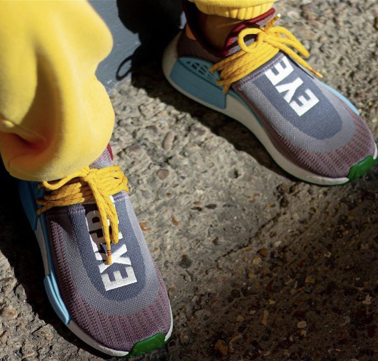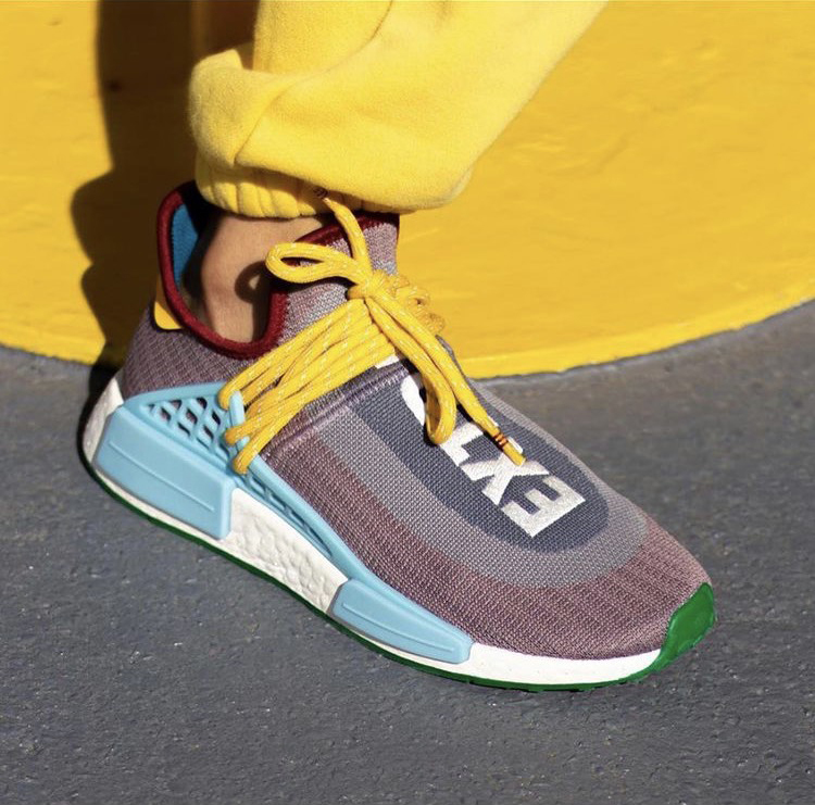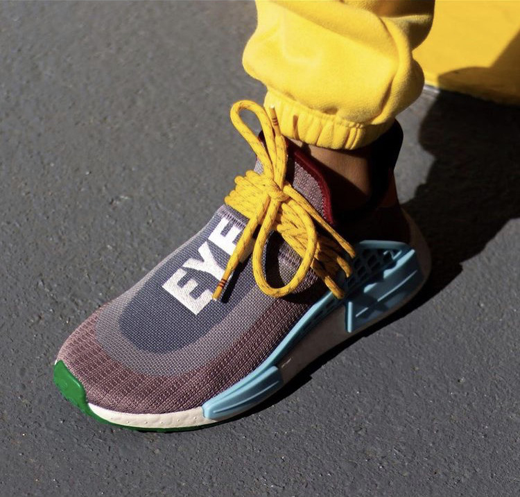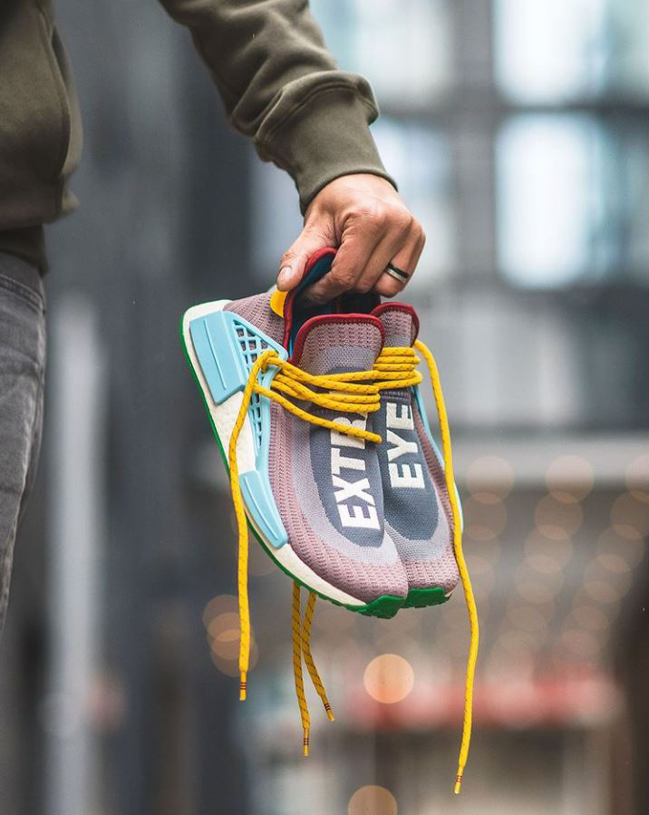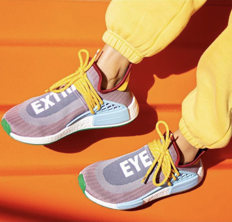 ★ adidas Originals by Pharrell Williams 的聯名系列金字招牌「NMD HU」迎來新配色。由酒紅、淡紫、深藍三種顏色以環繞方式拼接而成,鞋身層次感十足。淺灰色刺繡字體“Extra"以及"Eye”分別飾在左右腳上,而英文單字的翻譯為"額外的"、"眼睛"。黃色鞋帶與亮藍色鞋身支撐帶來一抹亮眼表現。整雙鞋款不管是配色還是其他細節表現,都非常有菲董自己的美學態度!
