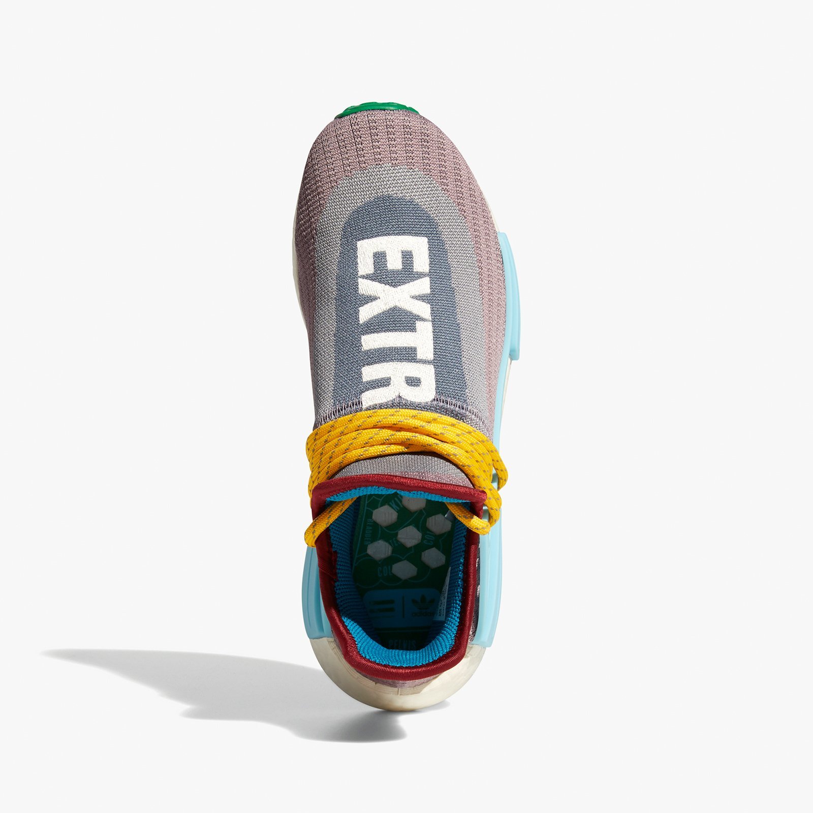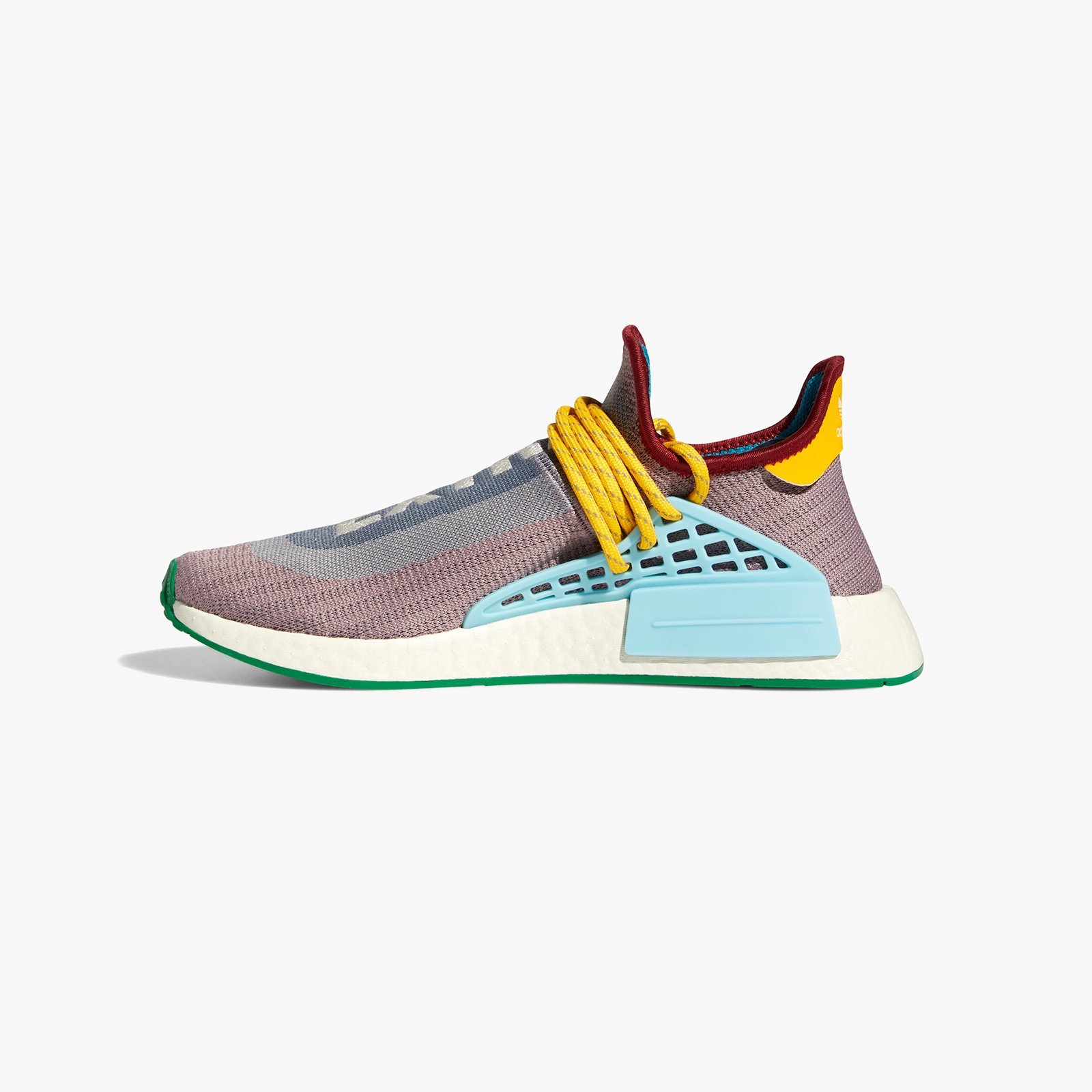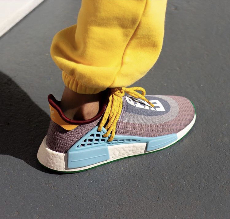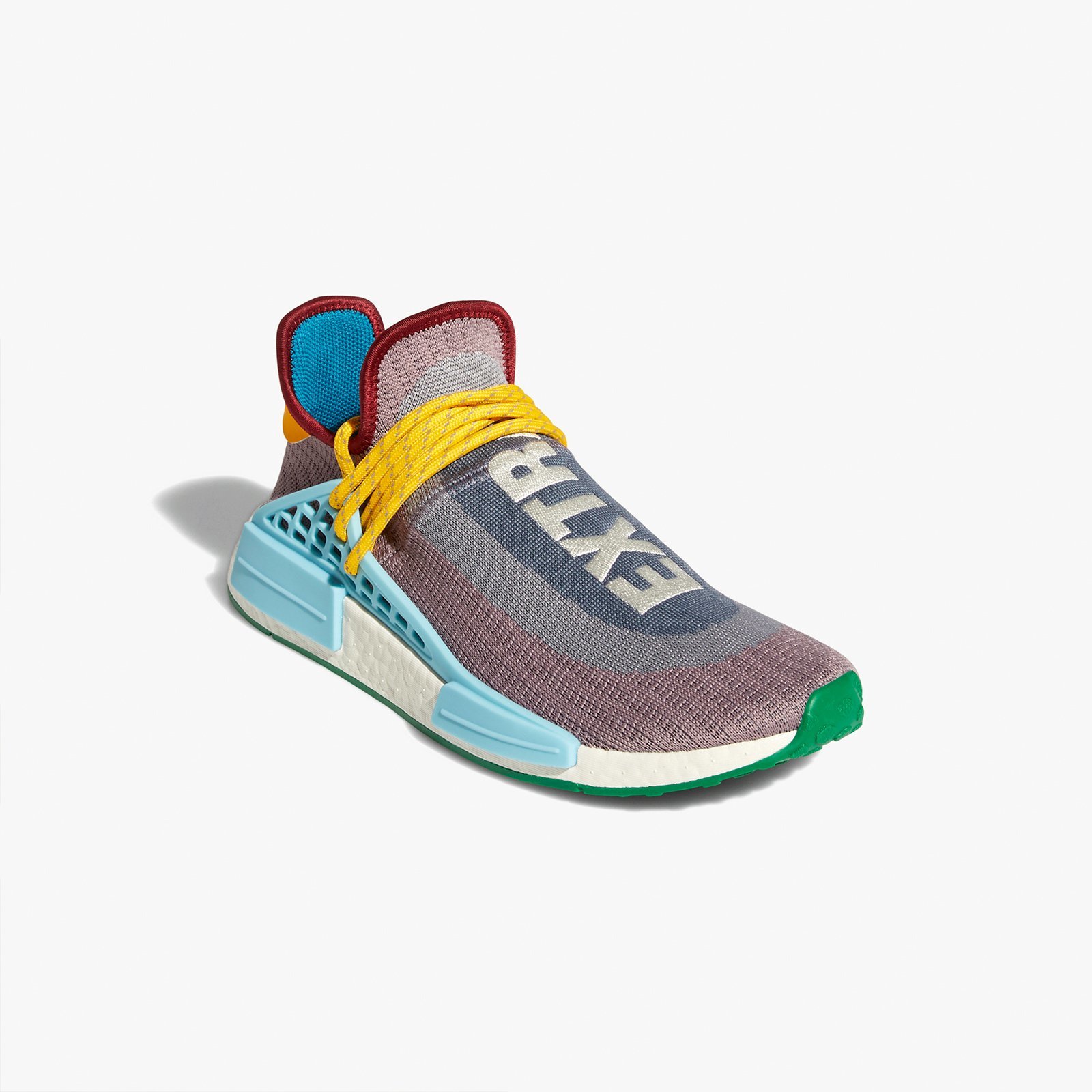★ adidas Originals by Pharrell Williams 的聯名系列金字招牌「NMD HU」迎來新配色。由酒紅、淡紫、深藍三種顏色以環繞方式拼接而成,鞋身層次感十足。淺灰色刺繡字體“Extra"以及"Eye”分別飾在左右腳上,而英文單字的翻譯為"額外的"、"眼睛"。黃色鞋帶與亮藍色鞋身支撐帶來一抹亮眼表現。整雙鞋款不管是配色還是其他細節表現,都非常有菲董自己的美學態度!