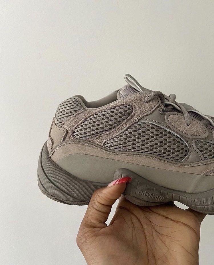 YEEZY 500 最新配色「Ash Grey」延續以往常見的大地色調,運用灰色網眼、石色麂皮與柔軟皮革共同建構鞋面質料,將深淺色調的應用達到平衡,並於鞋舌注入 3M 反光細節,賦予不可忽視的奪目效果,最終搭載 adiPRENE+緩震中底,加強穩定性減緩衝擊力,提供最佳的回彈效果。