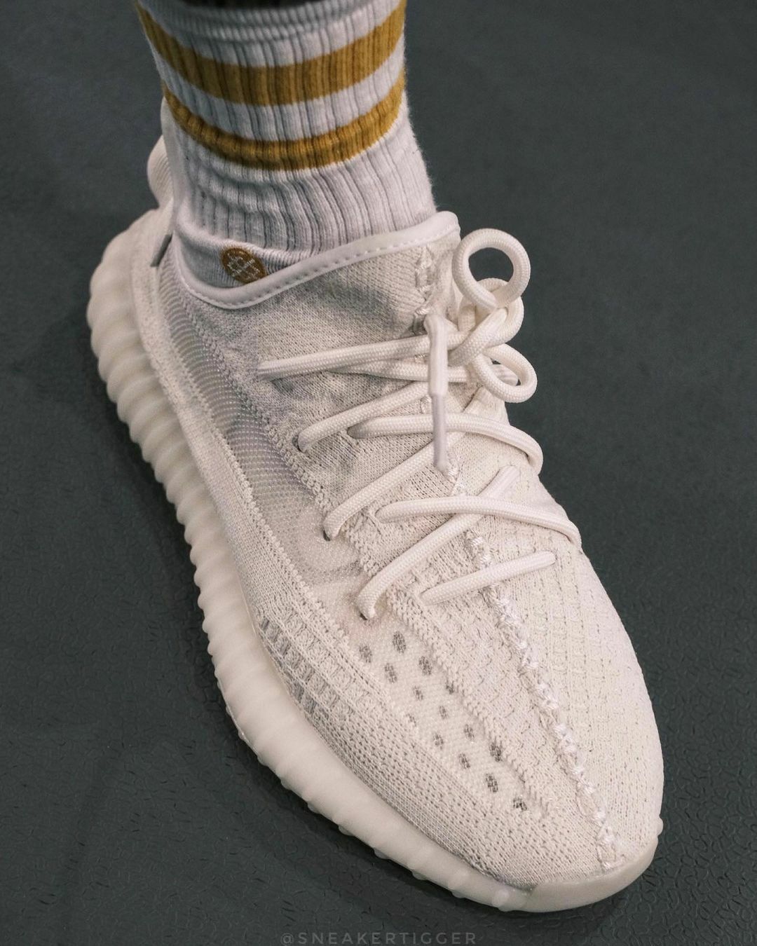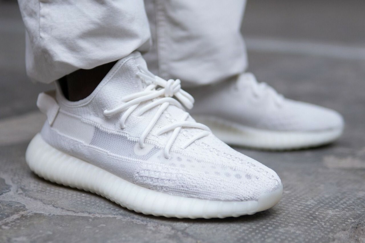 YEEZY BOOST 350 V2 最新配色「Bone」最先是以「Pure Oat」之名登場,十分接近過去推出的經典人氣配色「Triple White」,不過本次刷條的版本改以新版的半透明風格呈現。整體運用純白色 Primeknit 構成透氣鞋面,配搭同色調的鞋身及後跟拉環縫線,盡顯簡約格調;鞋墊上的黑色 YEEZY 與地球 Logo 除了彰顯身份之外,亦代表採用環保材質製作,最終再搭載標誌性的 BOOST? 中底更提高了超卓的耐磨度、緩震及反應力。