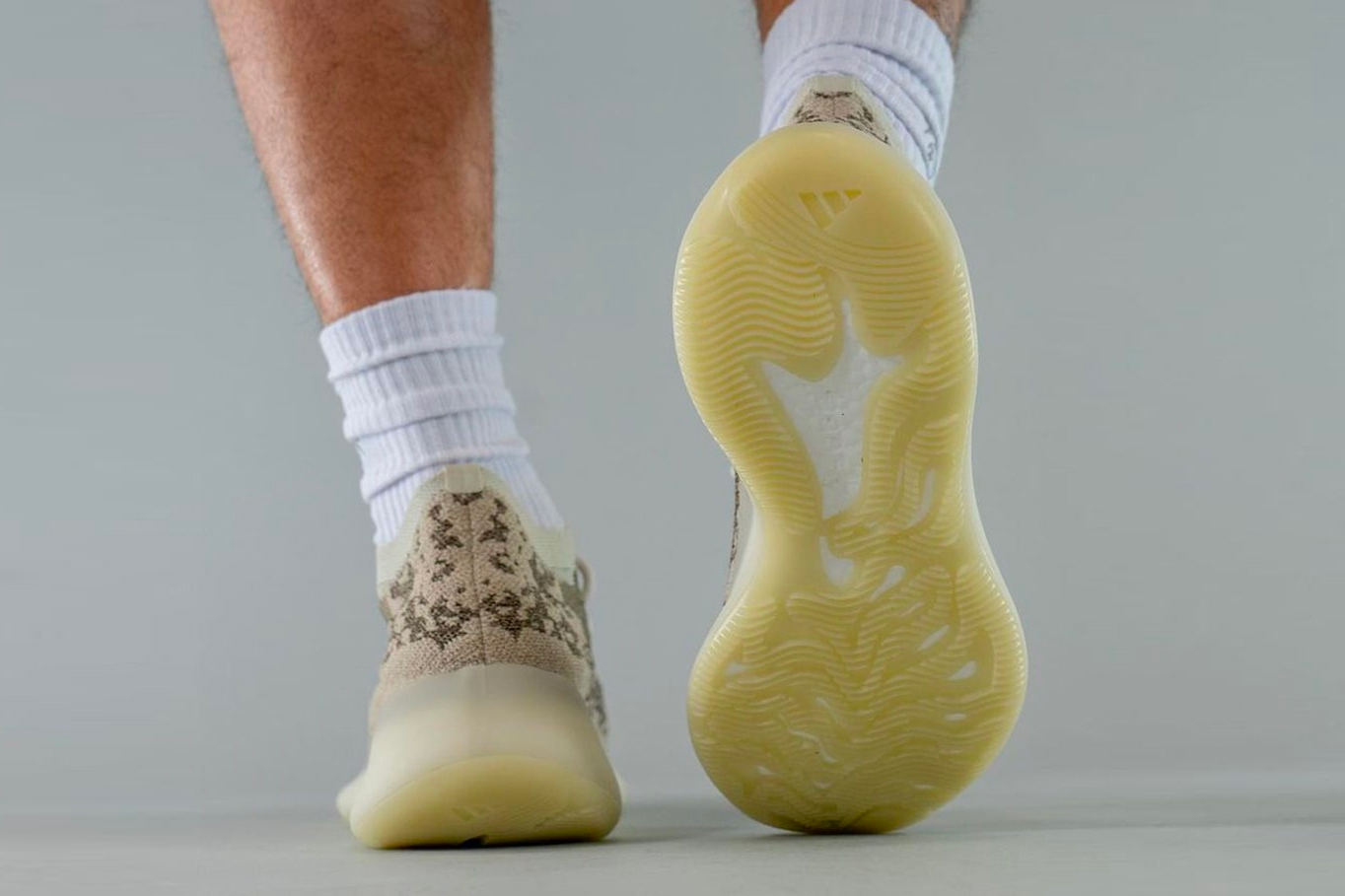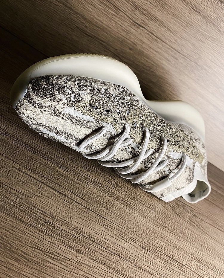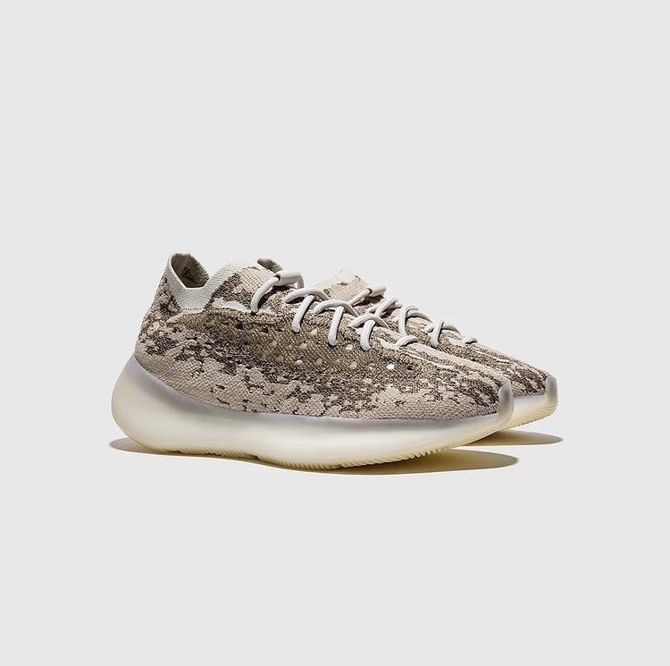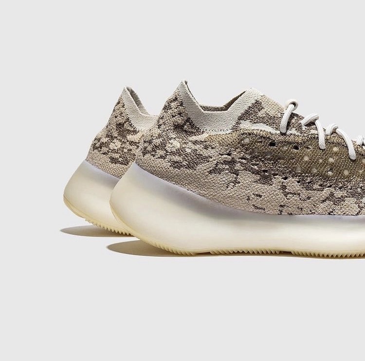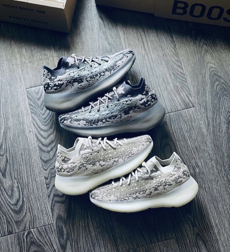 YEEZY 這次同時帶來兩款 YEEZY BOOST 380 配色,「Pyrite」使用明亮的灰白色調,而「Stone SLT」則是深大地色系、微透暖調的紫紅棕色,兩者皆透過不同顏色深淺的針織面料製造斑駁的數碼迷彩效果;鞋底部分,前者為半透明中底搭配乳白色外底,後者中外底同樣為融入鞋體棕色的半透明材質,除顏色上差異,皆全腳掌採用 BOOST 緩震系統,打造渾厚外型。