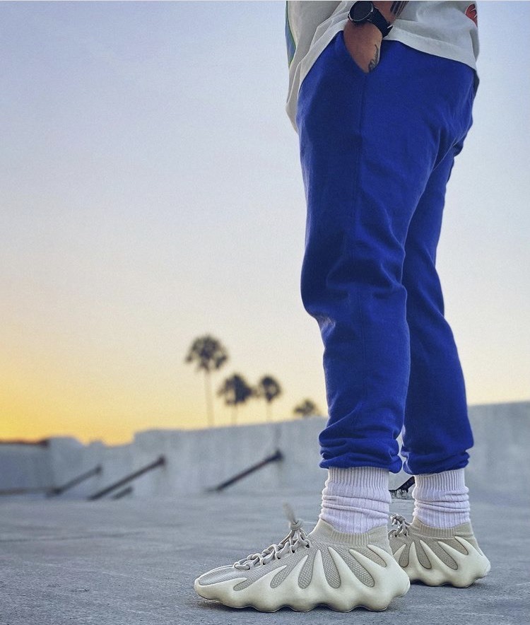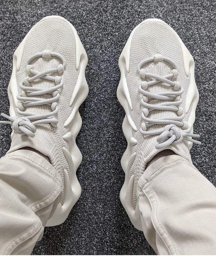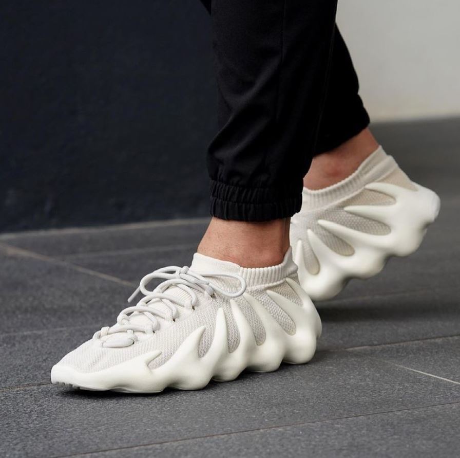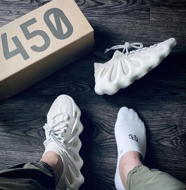 有別以往的 YEEZY 鞋款,YEEZY 450 具備最為突出的前衛特質,一體成型的 Primeknit 編織鞋面搭配包覆性的襪套設計,提供絕佳的穿著體驗。加入偌大搶眼的 EVA 鋸齒外底,將鞋面進行爪式包覆,從側面角度觀察能發現該大底有如山稜線的排列曲線,使得 YEEZY 450 有著莫名的火山氣息。