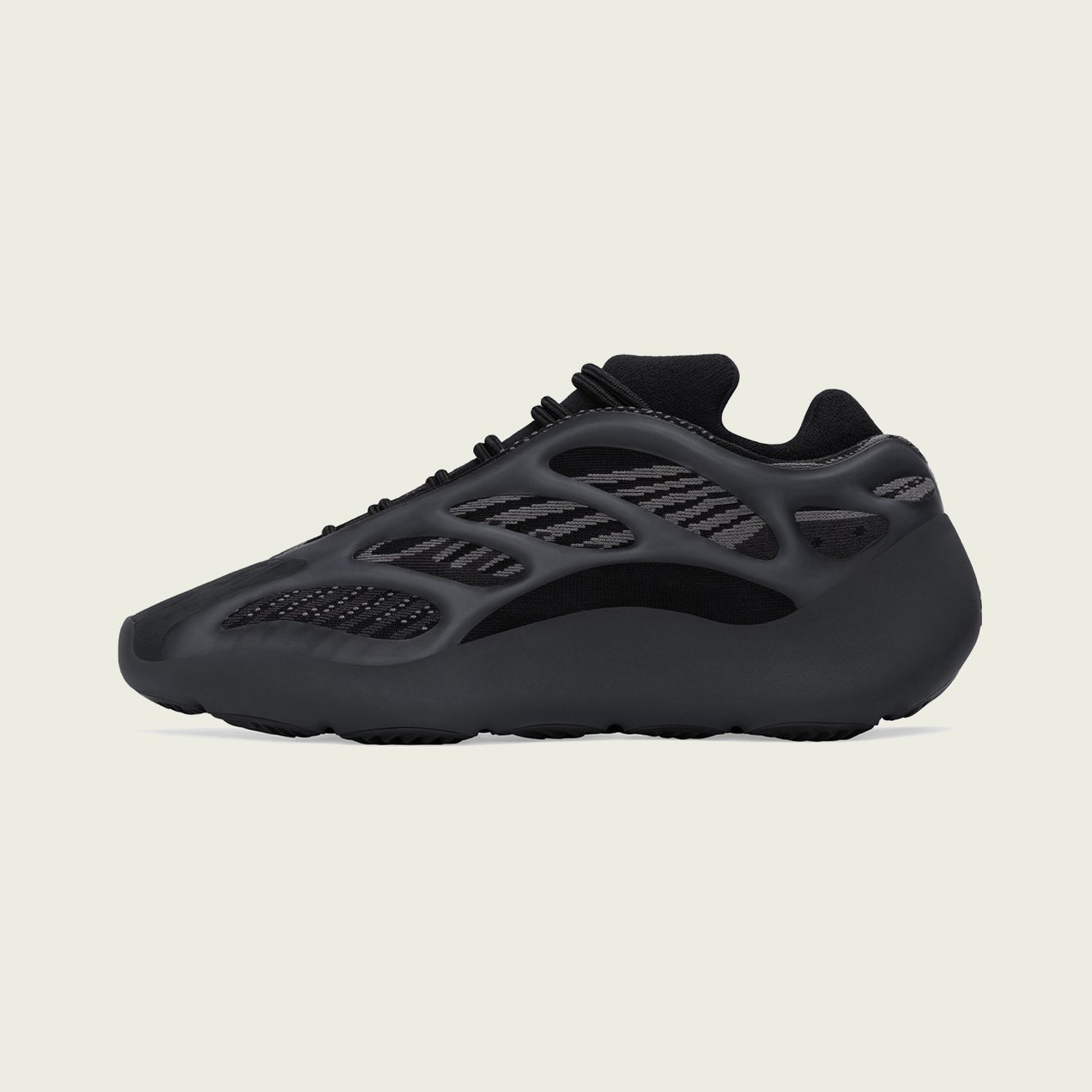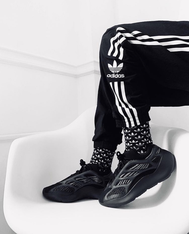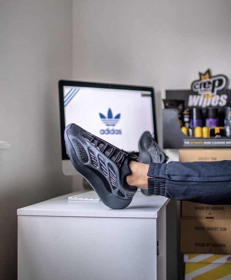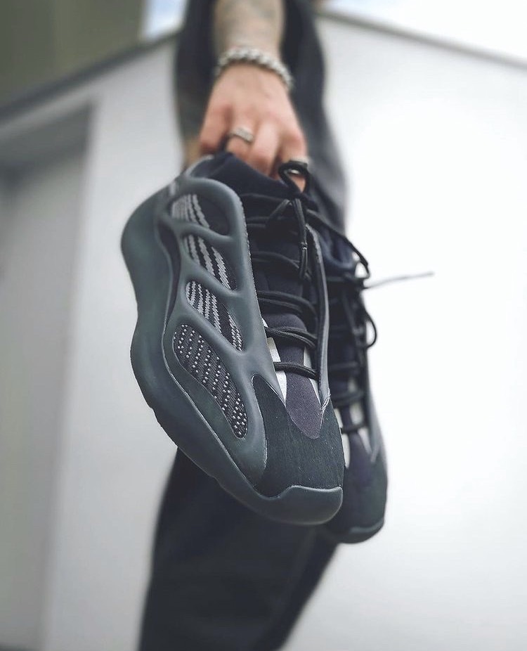 adidas YEEZY BOOST 700 V3 人氣配色「Alvah」,黑魂鞋身搭載具有灰色條紋的網眼面料,並運用 TPU 支架進行部分包覆,凸顯 YEEZY 後階段極為亮眼的未來感,並利用異材質來凸顯層次,並再添加 3M 反光細節。