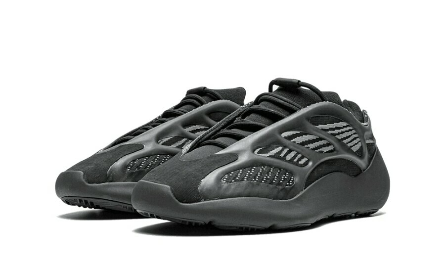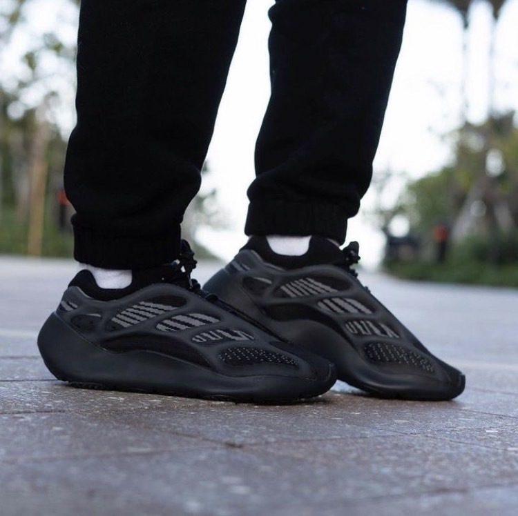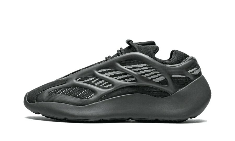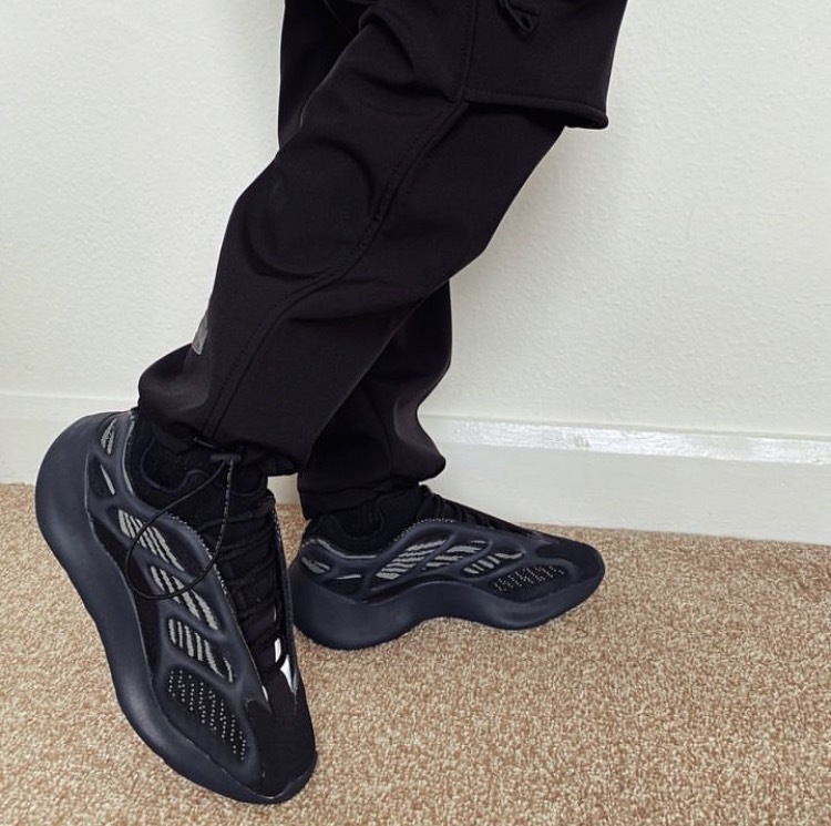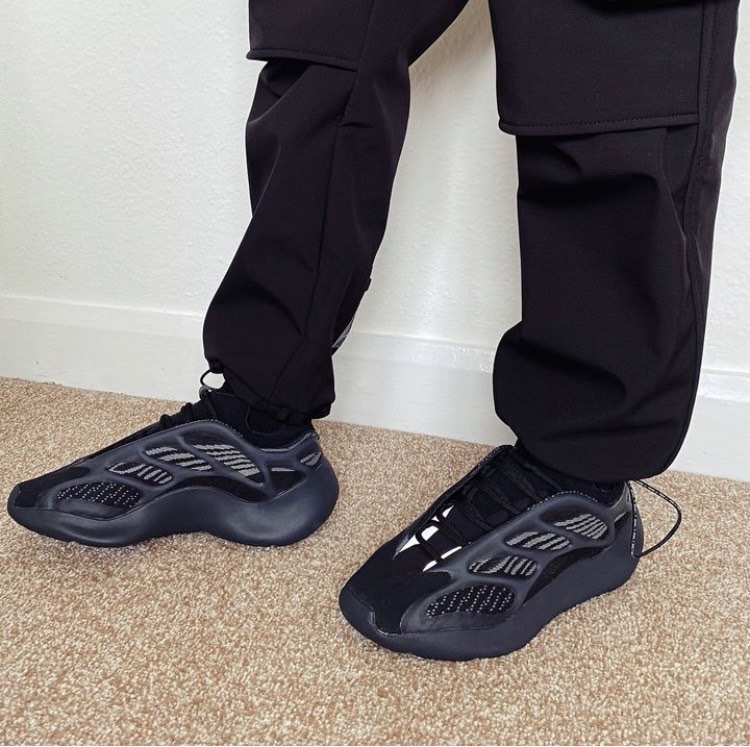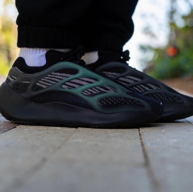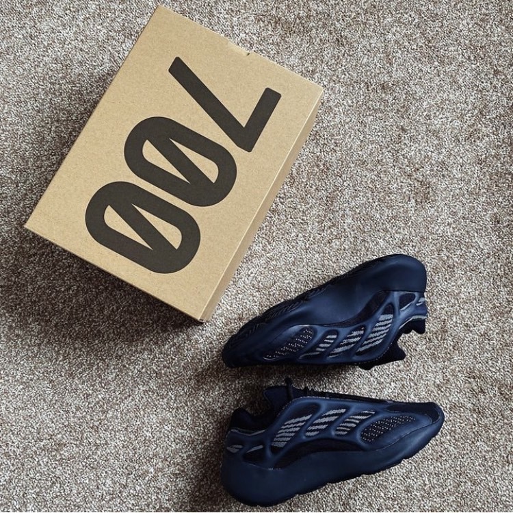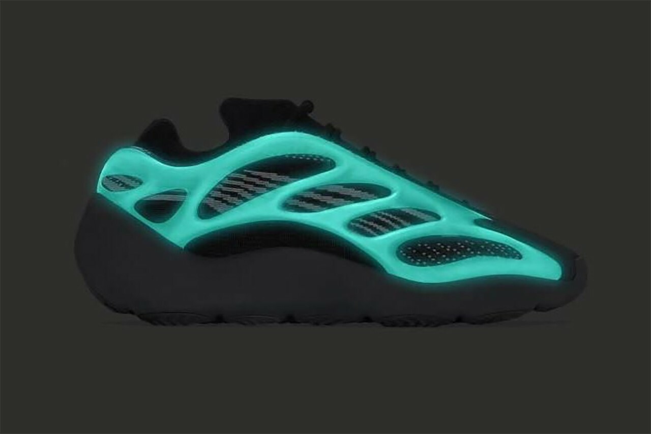 YEEZY 700 V3「Dark Glow」的外型幾乎百分百近似於去年四月發售的 YEEZY 700 V3 人氣配色「Alvah」,同樣以黑魂注入注入 Primeknit 編織鞋面,並於 RPU 支架下輔以灰色條紋,最後搭載 EVA 泡沫中底確保緩震腳感,而其差異則是支架上的 3M 夜光而非原有的綠色,今番改以藍色作為改版。