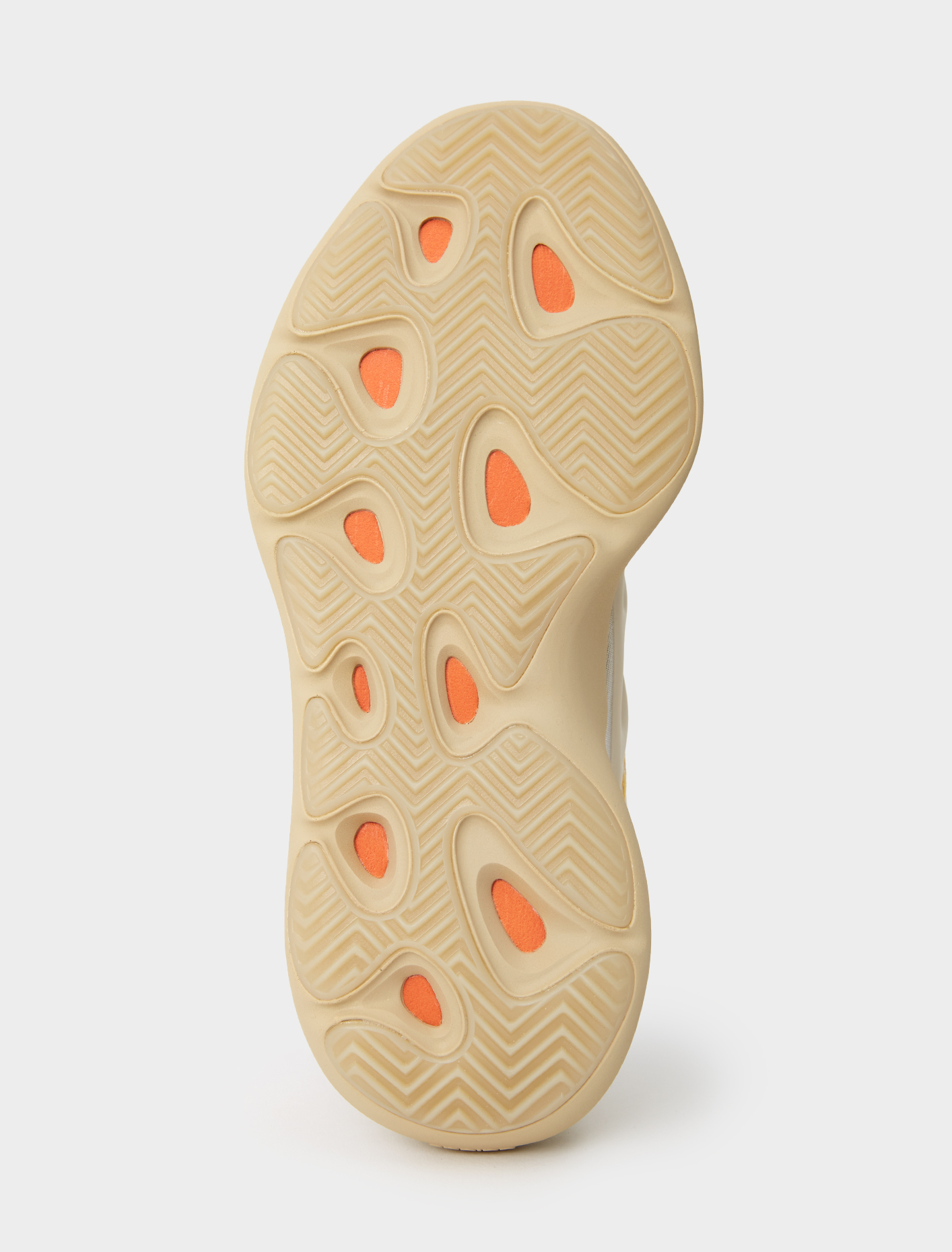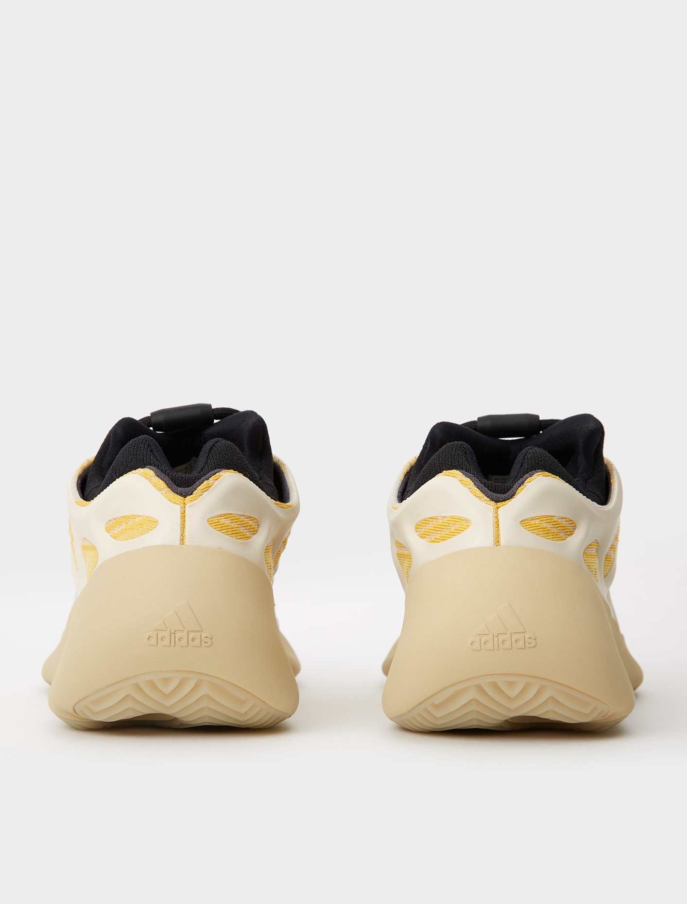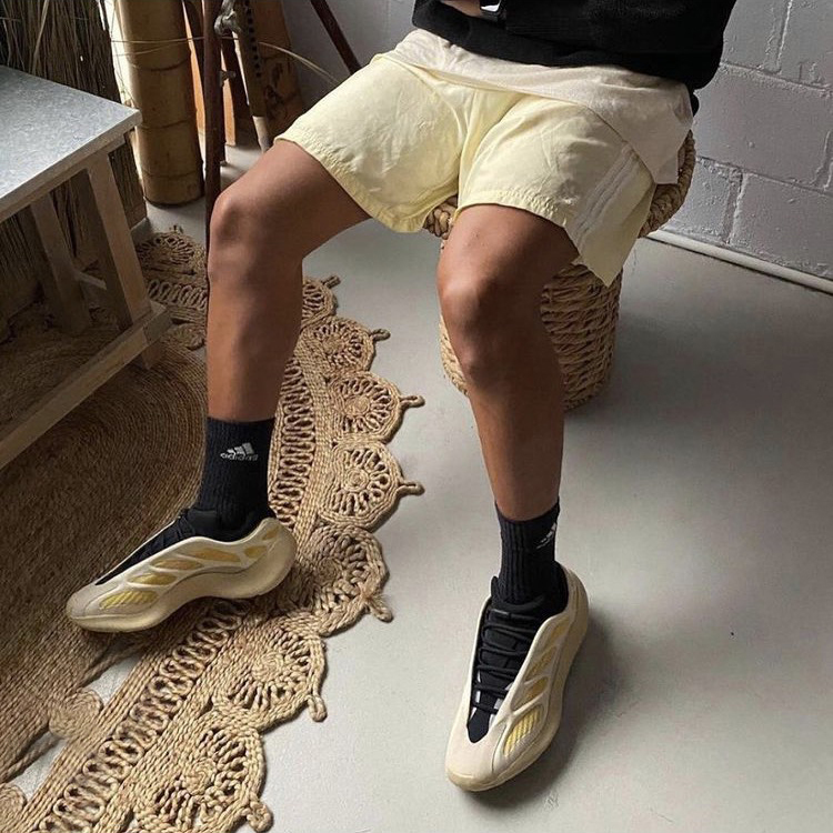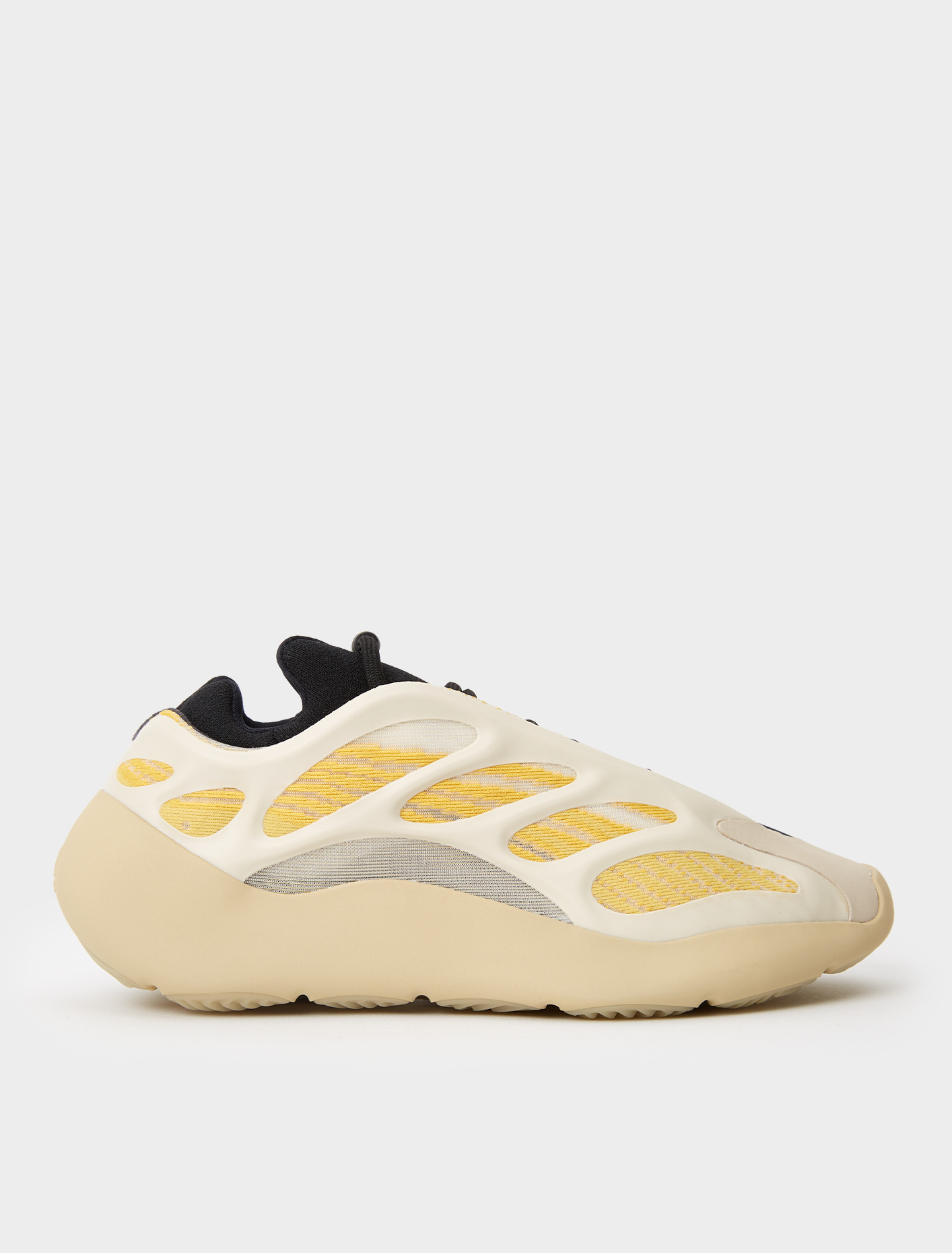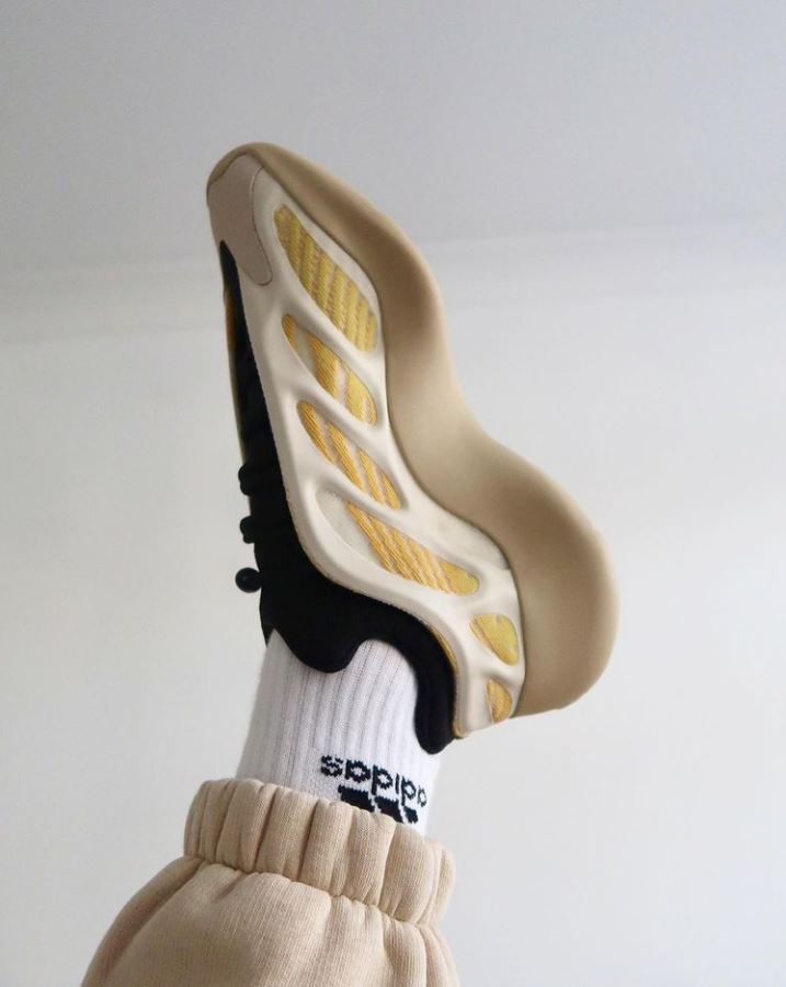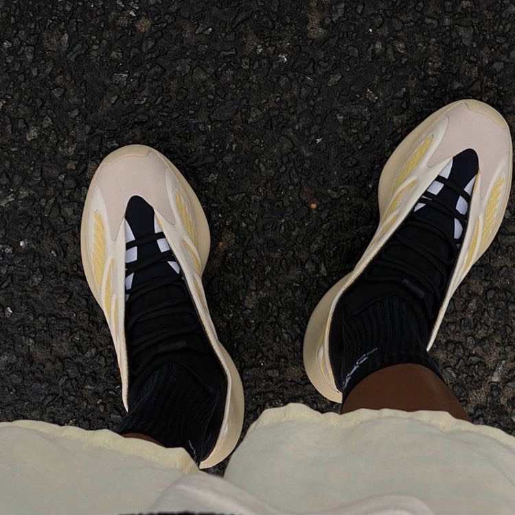 adidas Originals 與 Kanye West 共同打造的 YEEZY BOOST 700 V3 今番迎來最新配色「SAFFLOWER」,以檸檬黃單絲編織網布與奶油白 TPU 支架為鞋身主體,配靴型鞋筒結構,提升耐用度與穩定性,TPU 支架的夜光功能則為鞋款增添幾分星際異形美學。無綁帶的彈性鞋帶系統提供穿脫便利性,同時另附上一組一般鞋帶可供替換;EVA中底增強穿著的輕便度與舒適感,人字型橡膠大底則增加了防滑摩擦力。