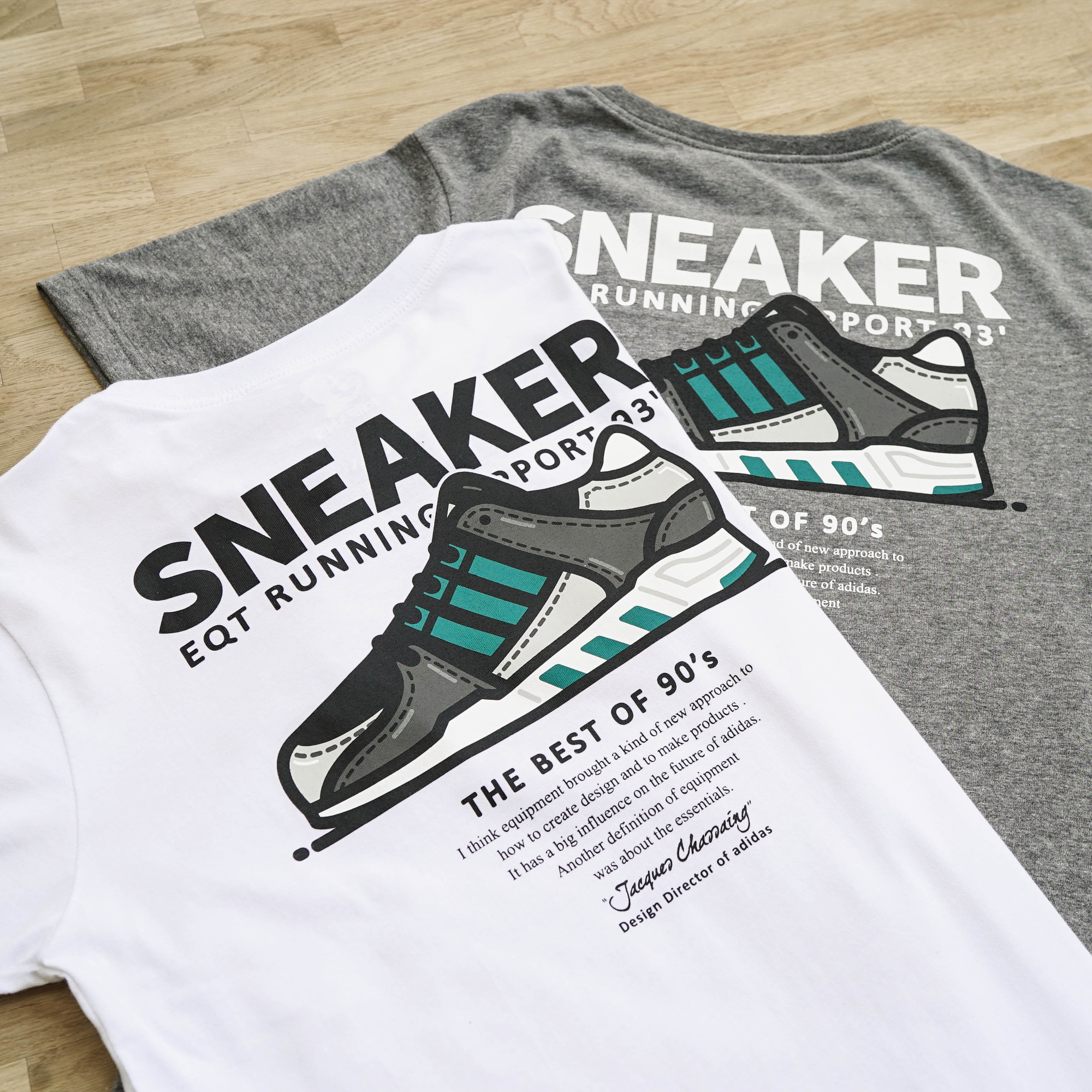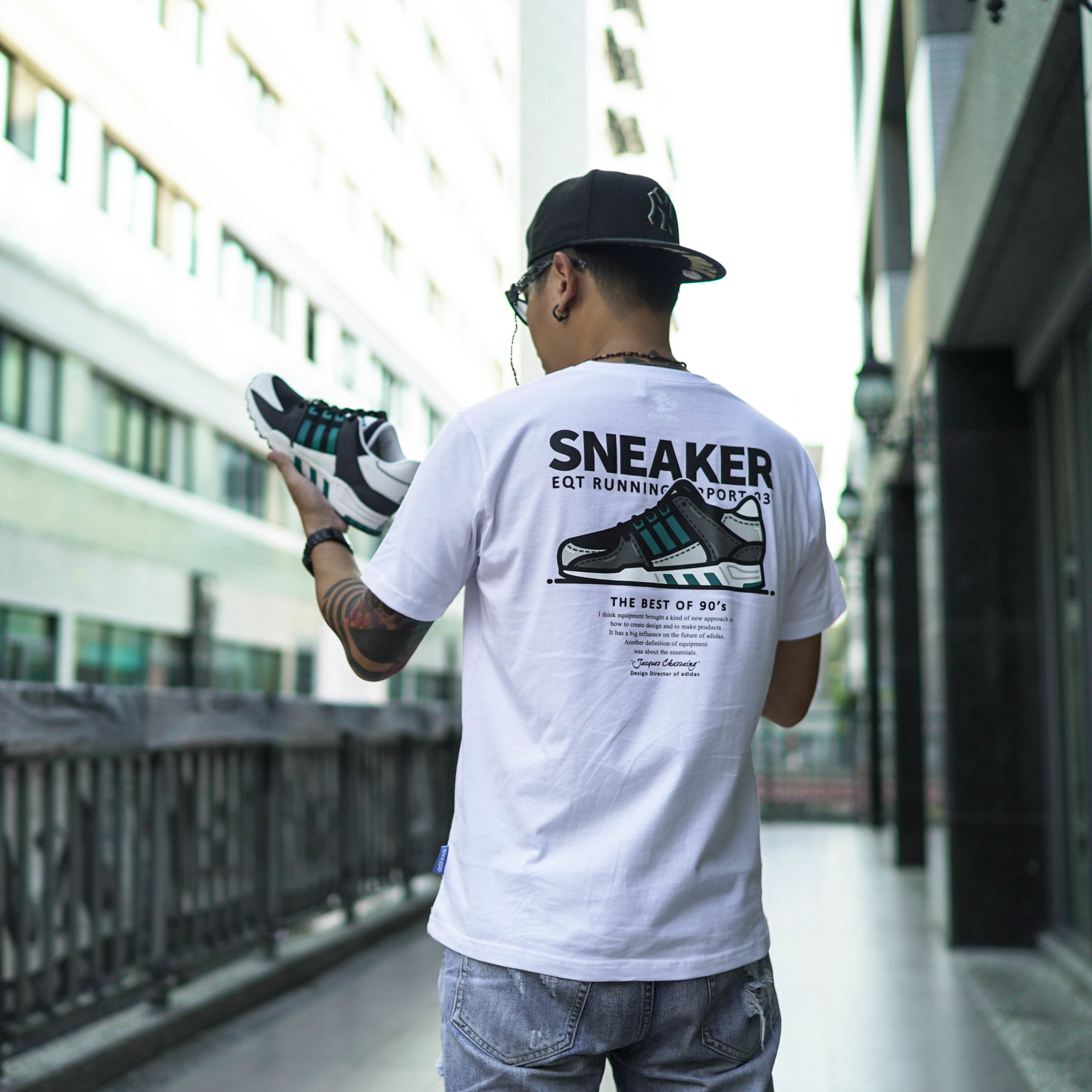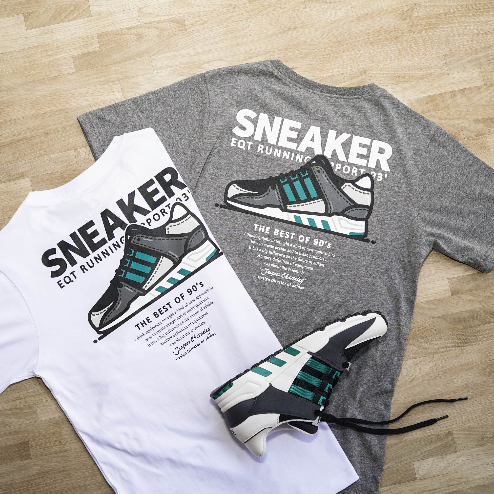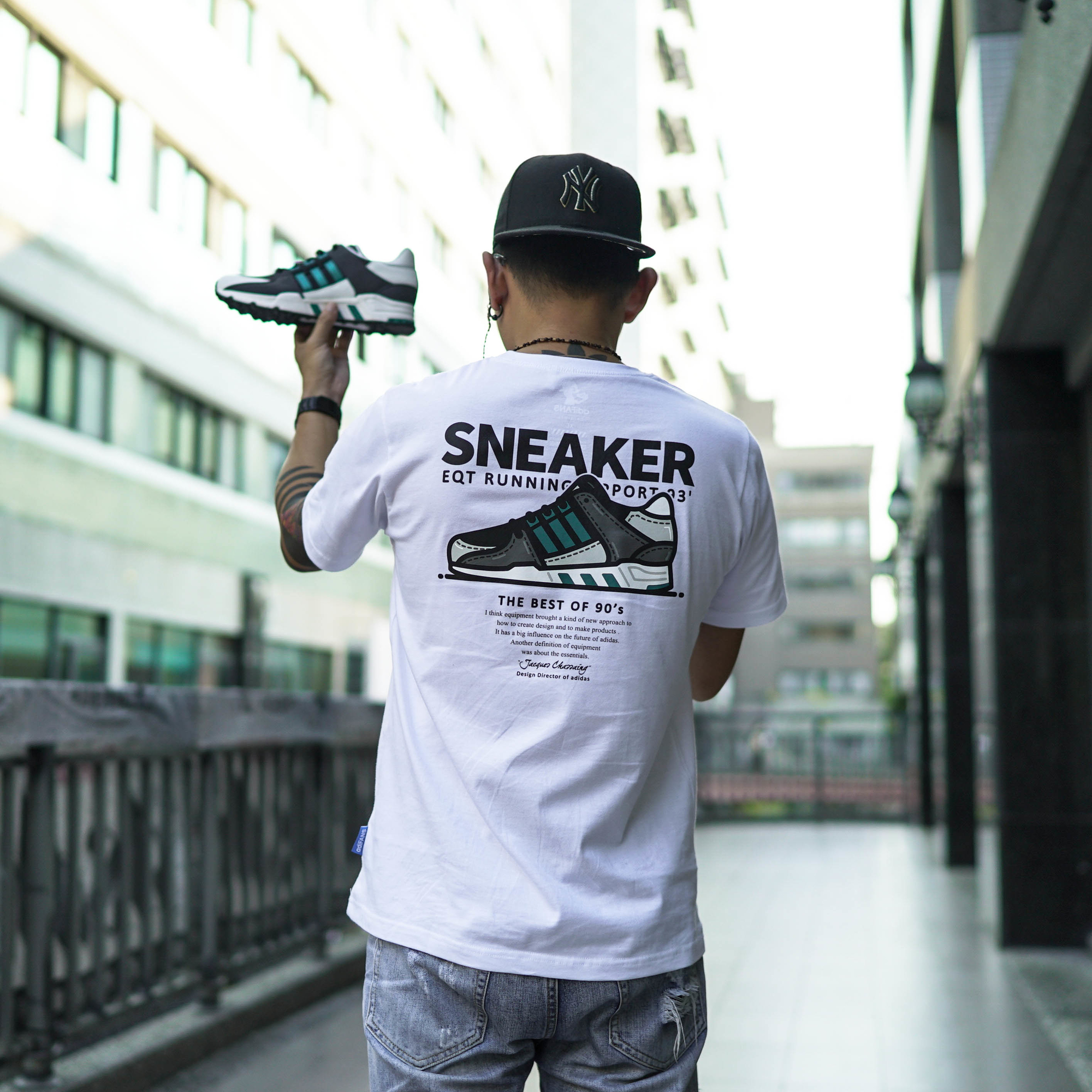 ★ 以EQT SUPPORT 93' OG鞋款作為藝術創作 , 以詼諧調皮的漫畫風格表現 , 引述adidas設計總監 Jacques Chassaing 針對EQT系列的訪談觀點並於胸前秀出EQT LOVER的有趣字樣 , 獻給所有喜愛EQT OG的藍血人!!!