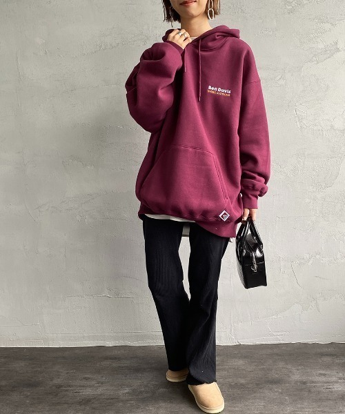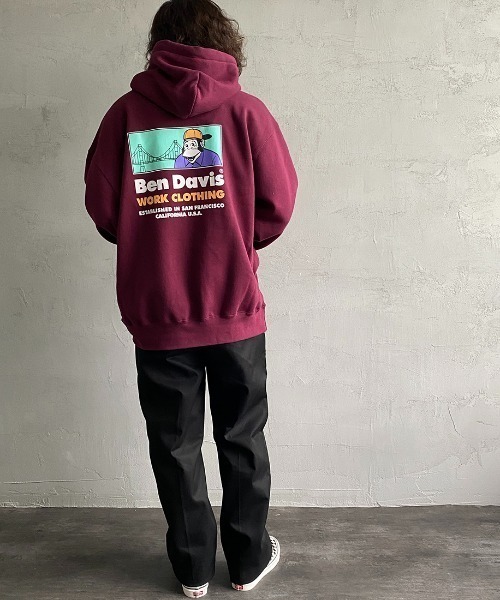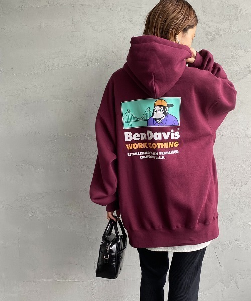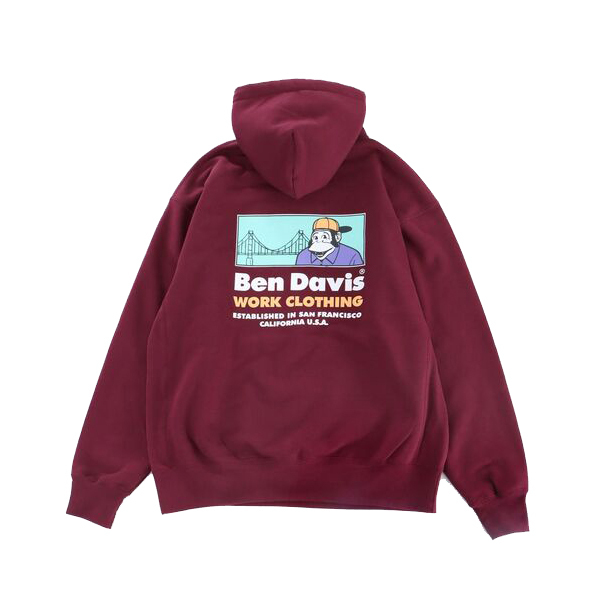 【 BEN DAVIS | 金門大橋內刷毛帽TEE - 酒紅 】