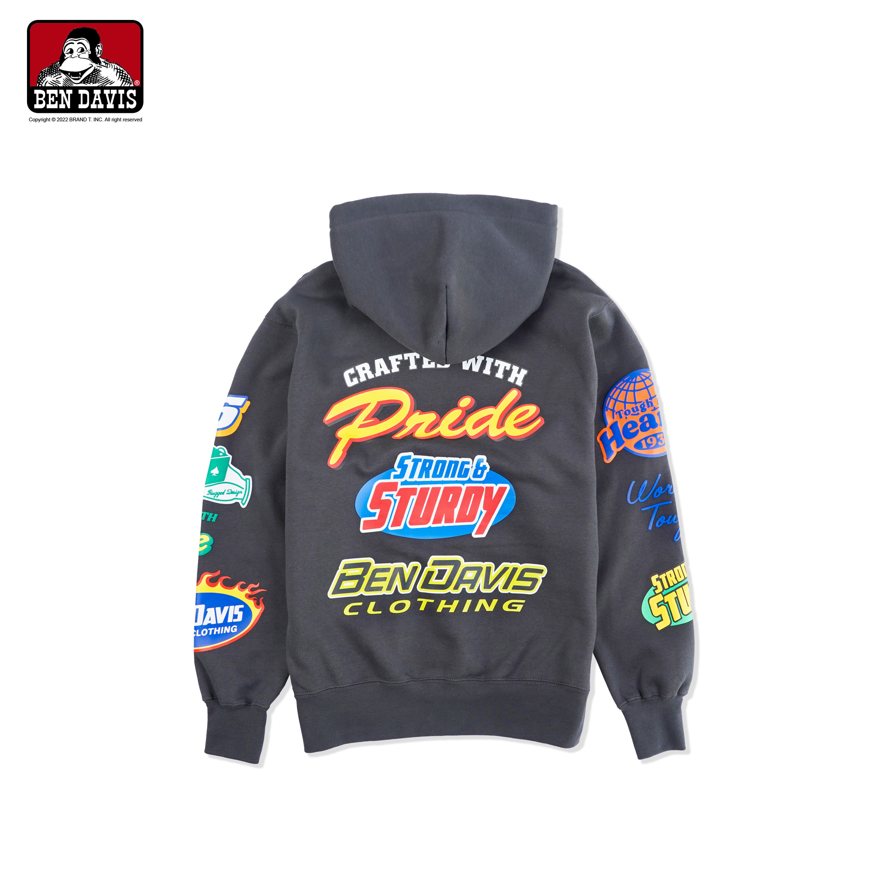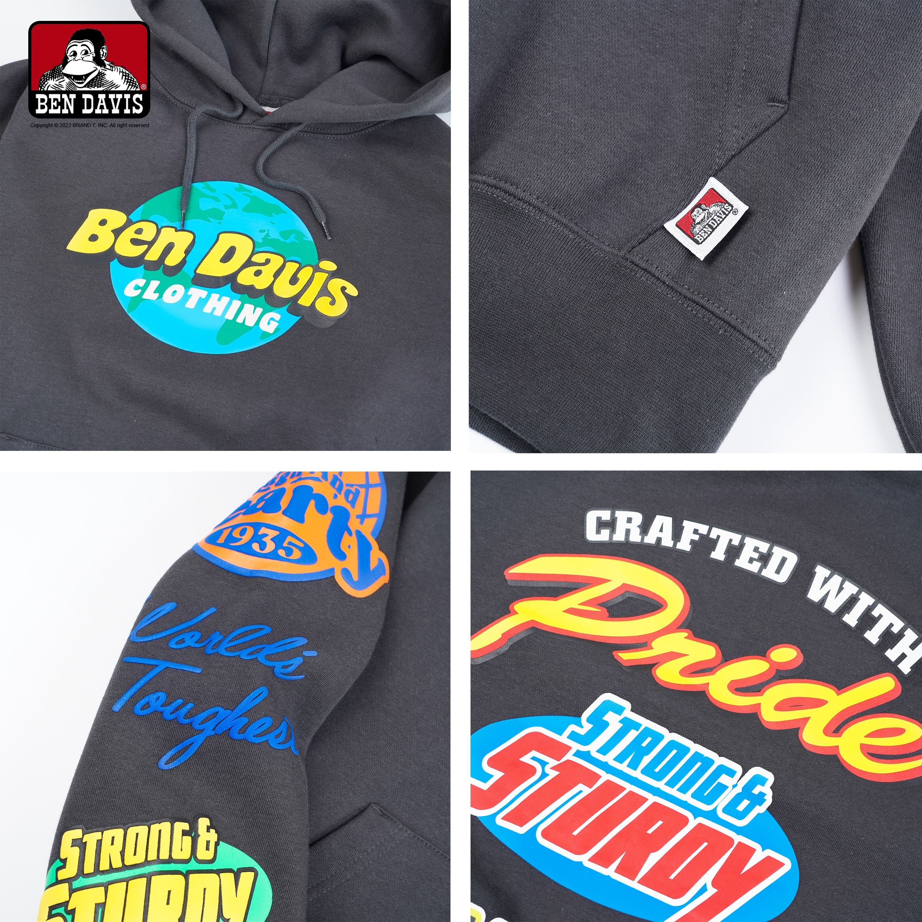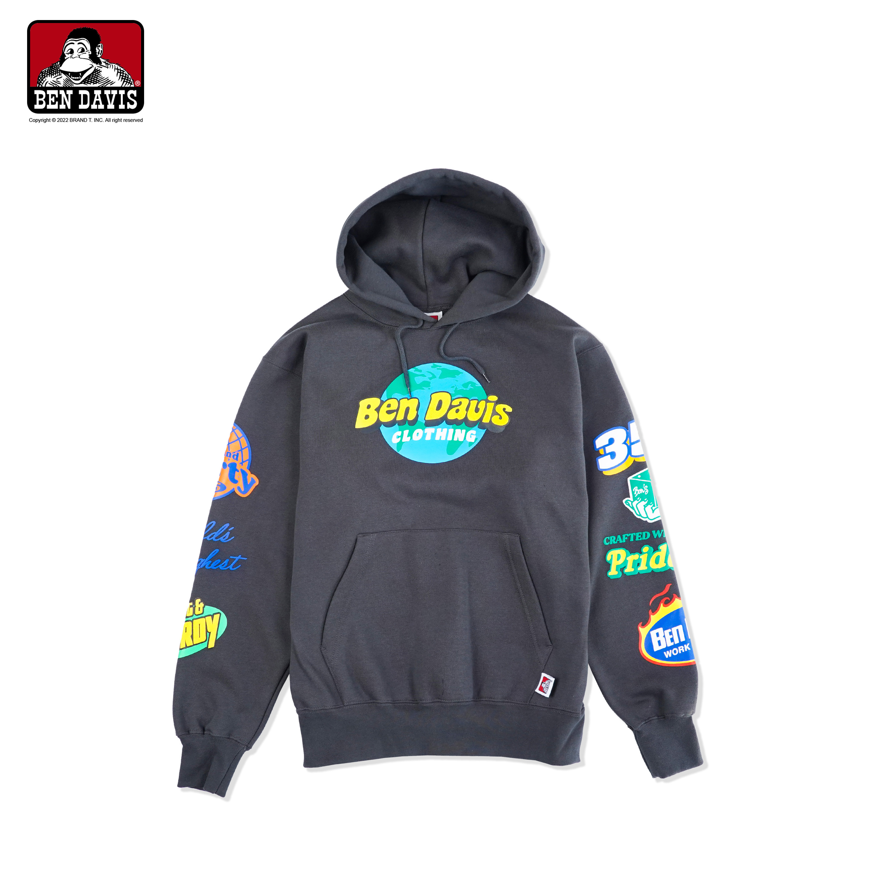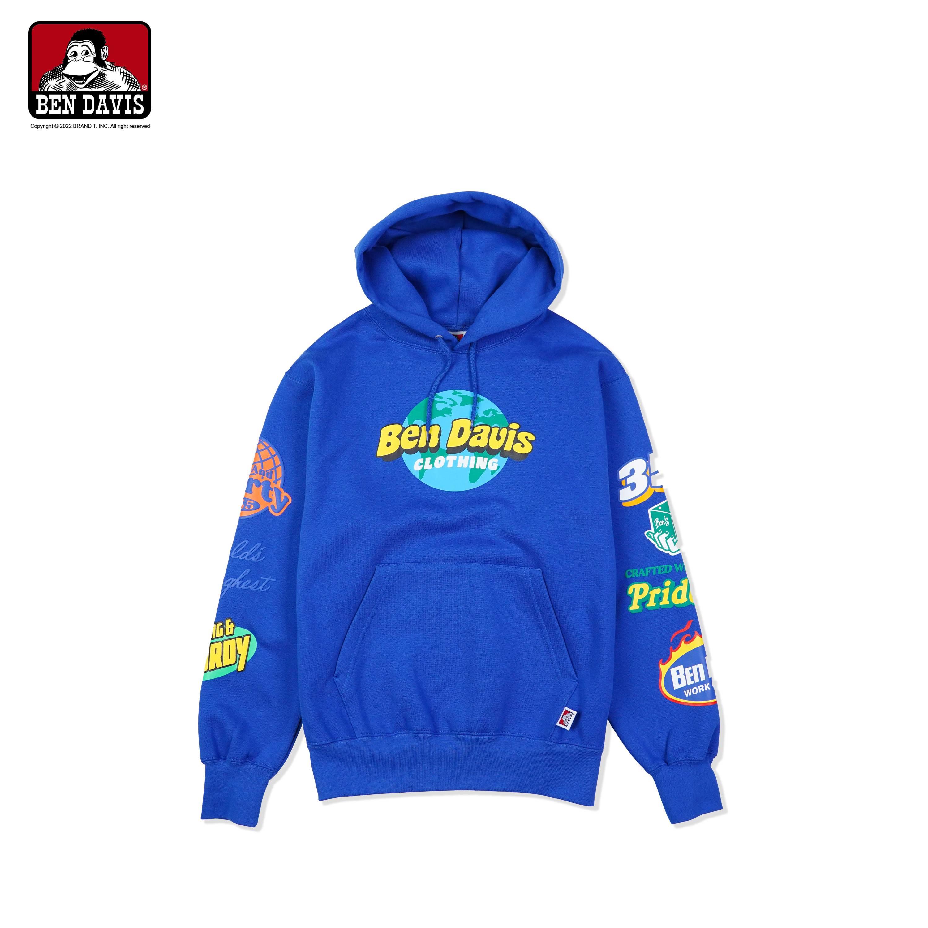 BEN DAVIS 地球LOGO內刷毛帽TEE ( 碳黑 / 灰白 / 藍 )