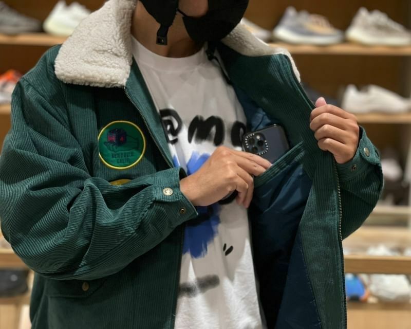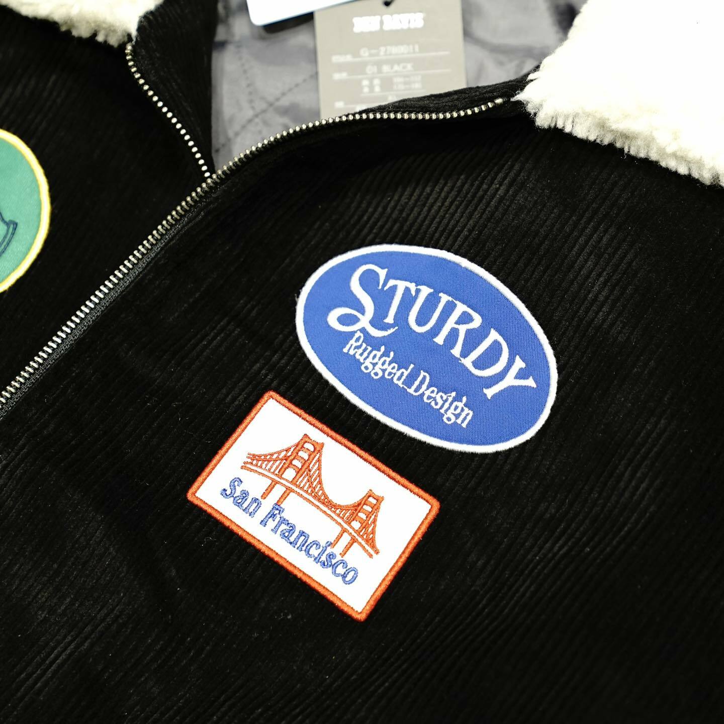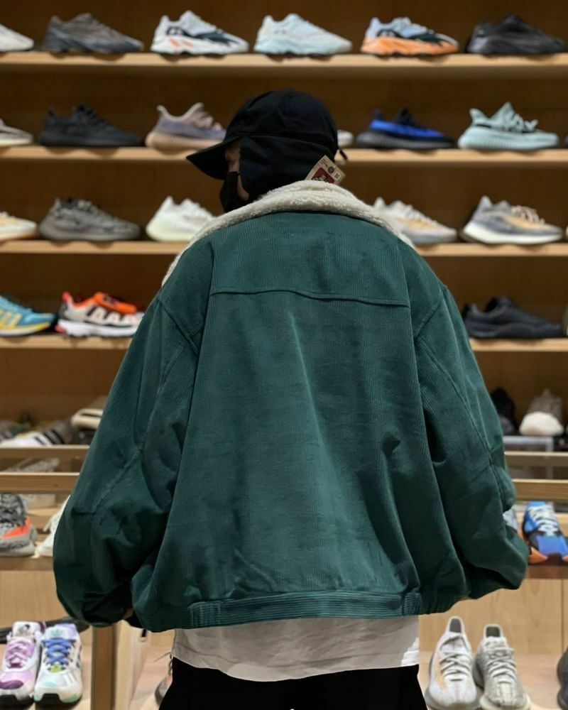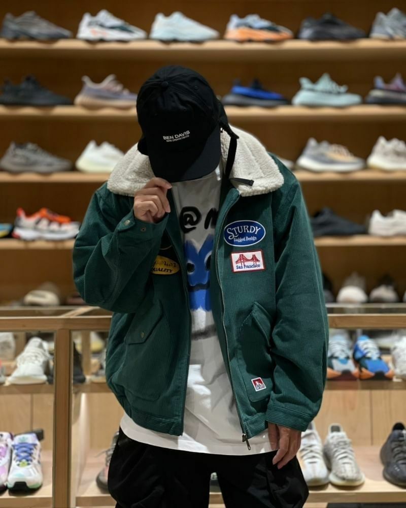 BEN DAVIS 燈芯絨拼布毛領夾克 ( 黑 / 綠 )