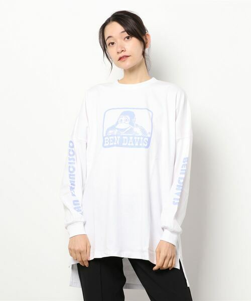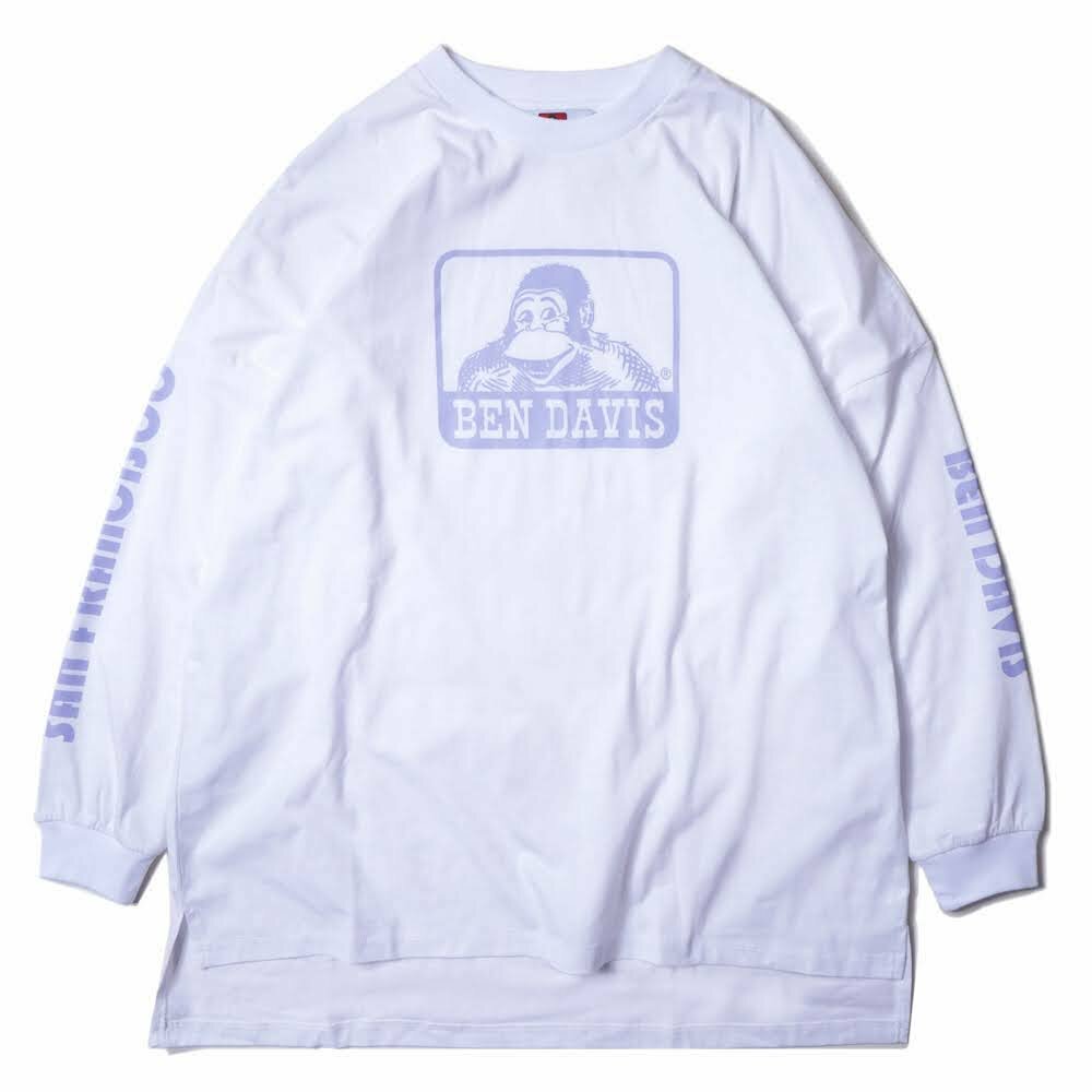 BEN DAVIS 猿人經典薄長TEE ( 白 / 灰藍 )