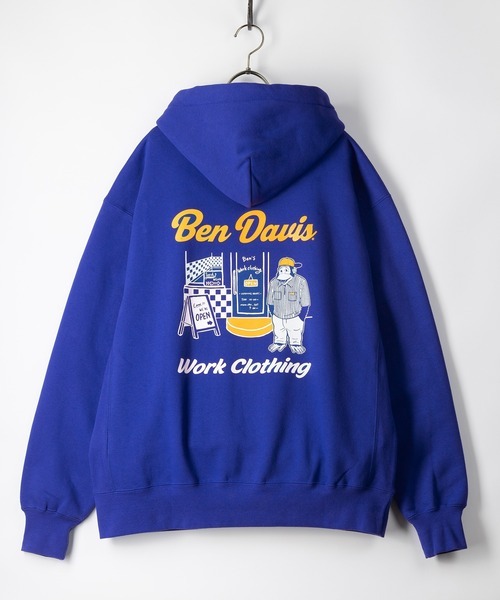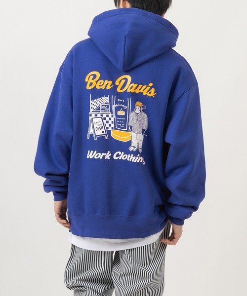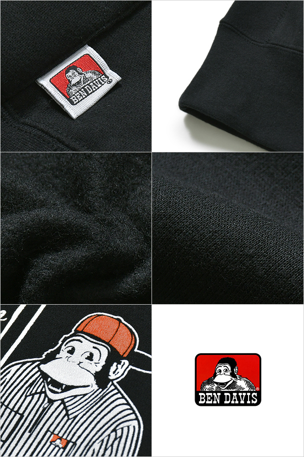 BEN DAVIS 商店猿人刷毛帽TEE ( 黑 / 藍 )