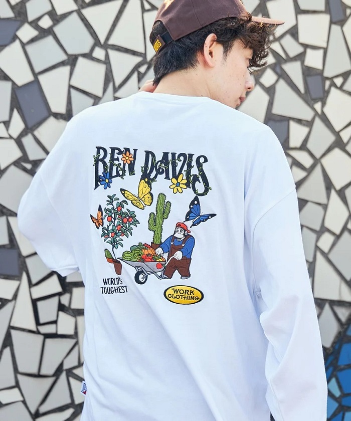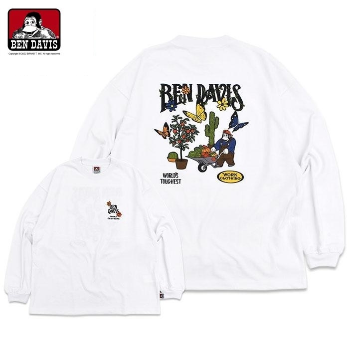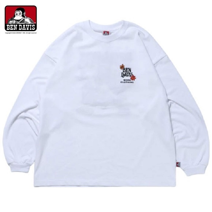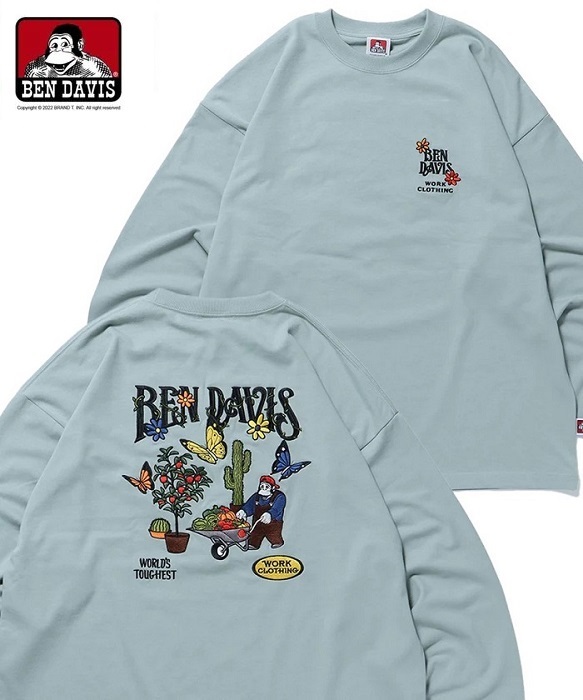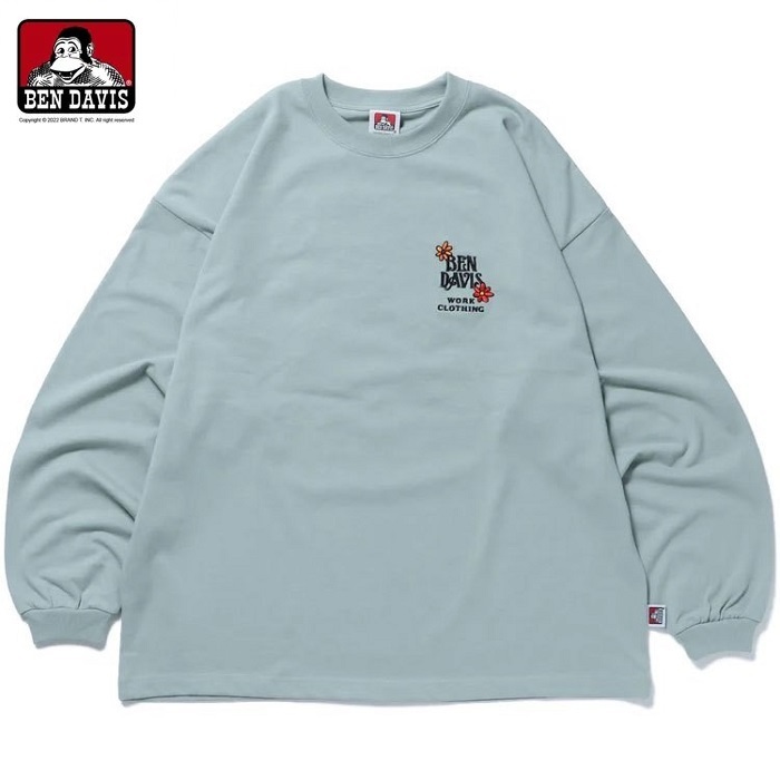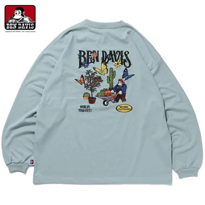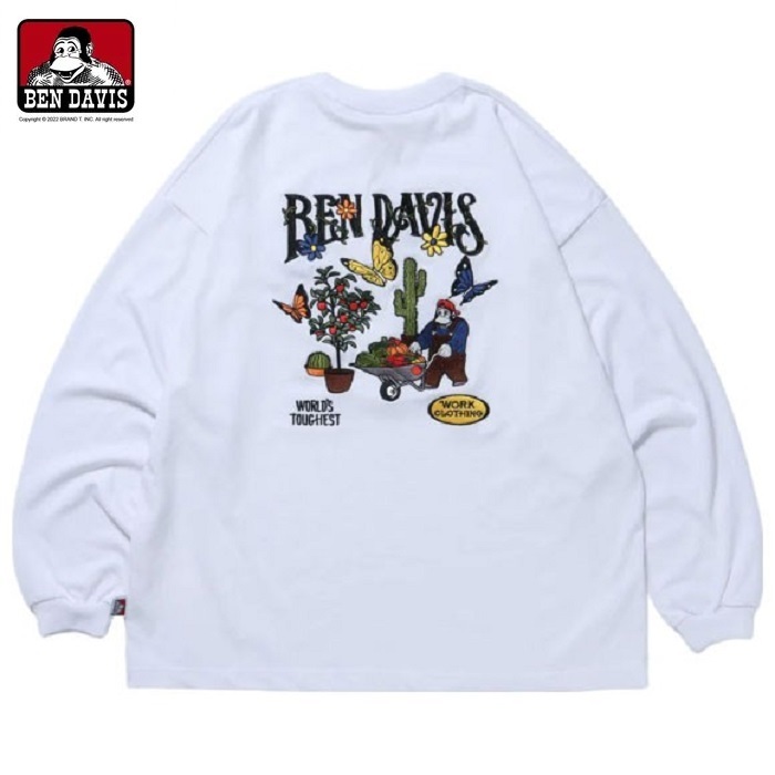 BEN DAVIS HARVEST BRUSHED LS花園刺繡長TEE 2色 ( 白 / 冰藍 )
