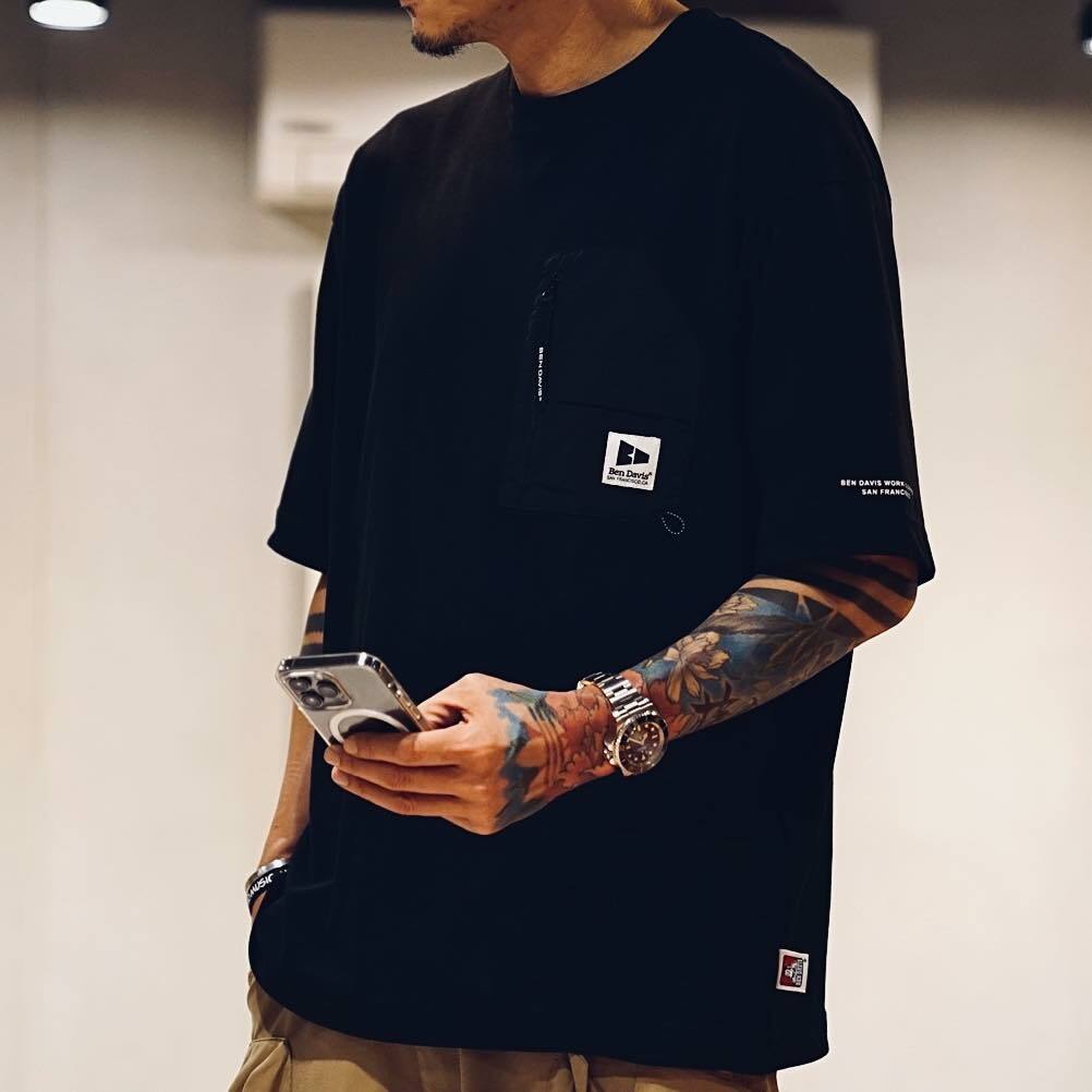 BEN DAVIS 拉鍊口袋可縮下擺短TEE ( 軍綠 / 黑 )