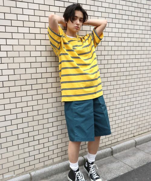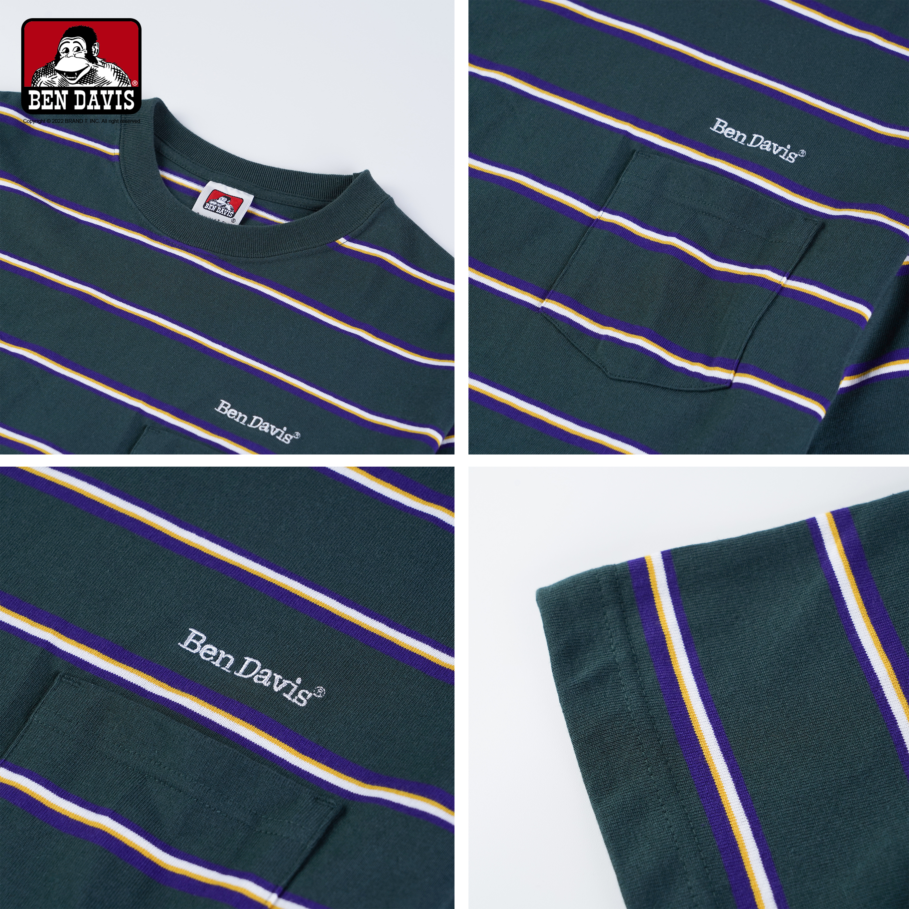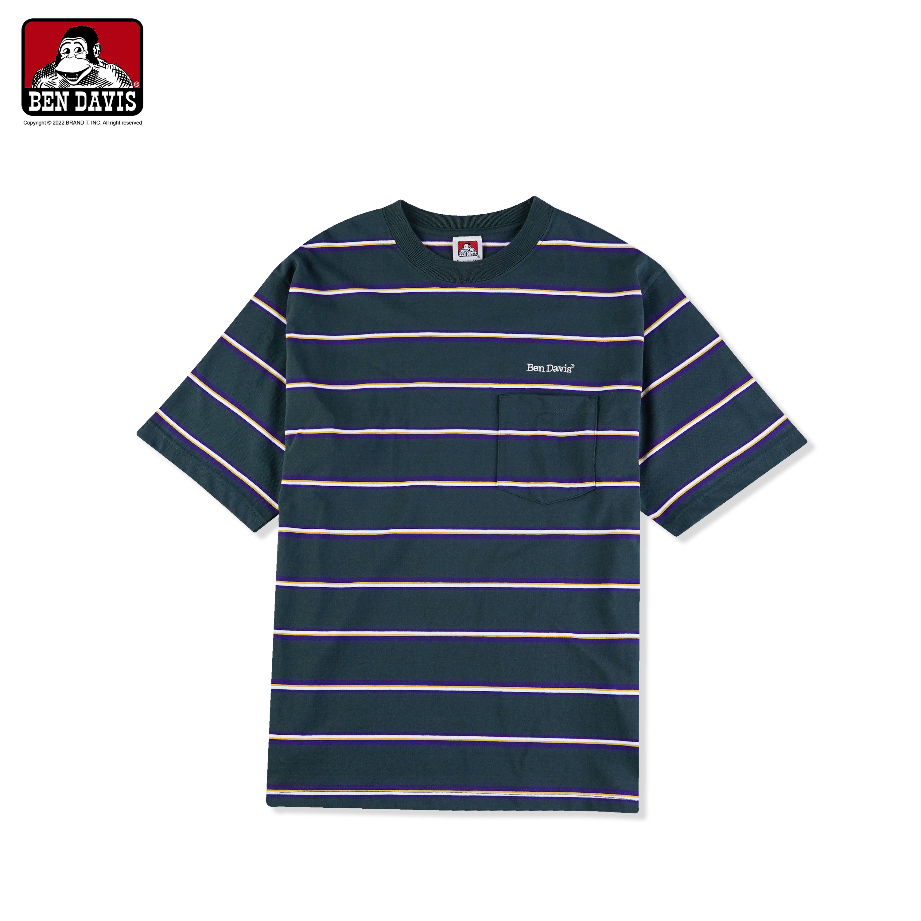 BEN DAVIS 口袋條紋寬鬆短TEE ( 石磨灰 / 黃 / 暗綠 )