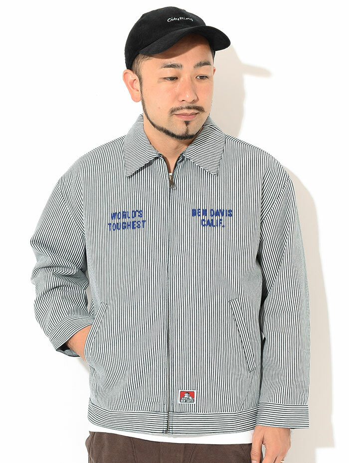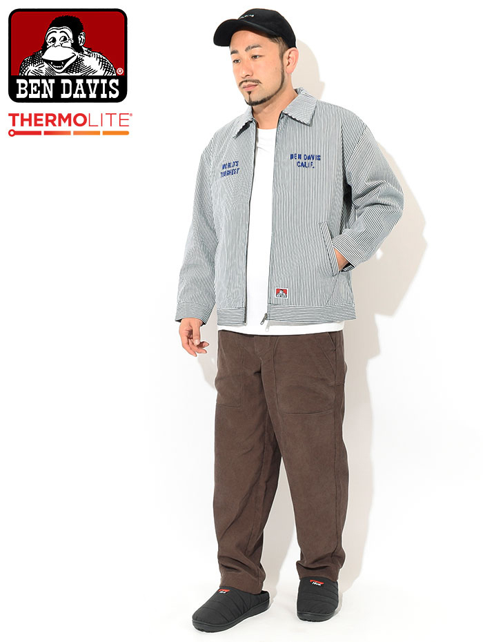 BEN DAVIS 保暖刺繡英文字工作外套 ( 黑 / 條紋藍 / 卡其 )