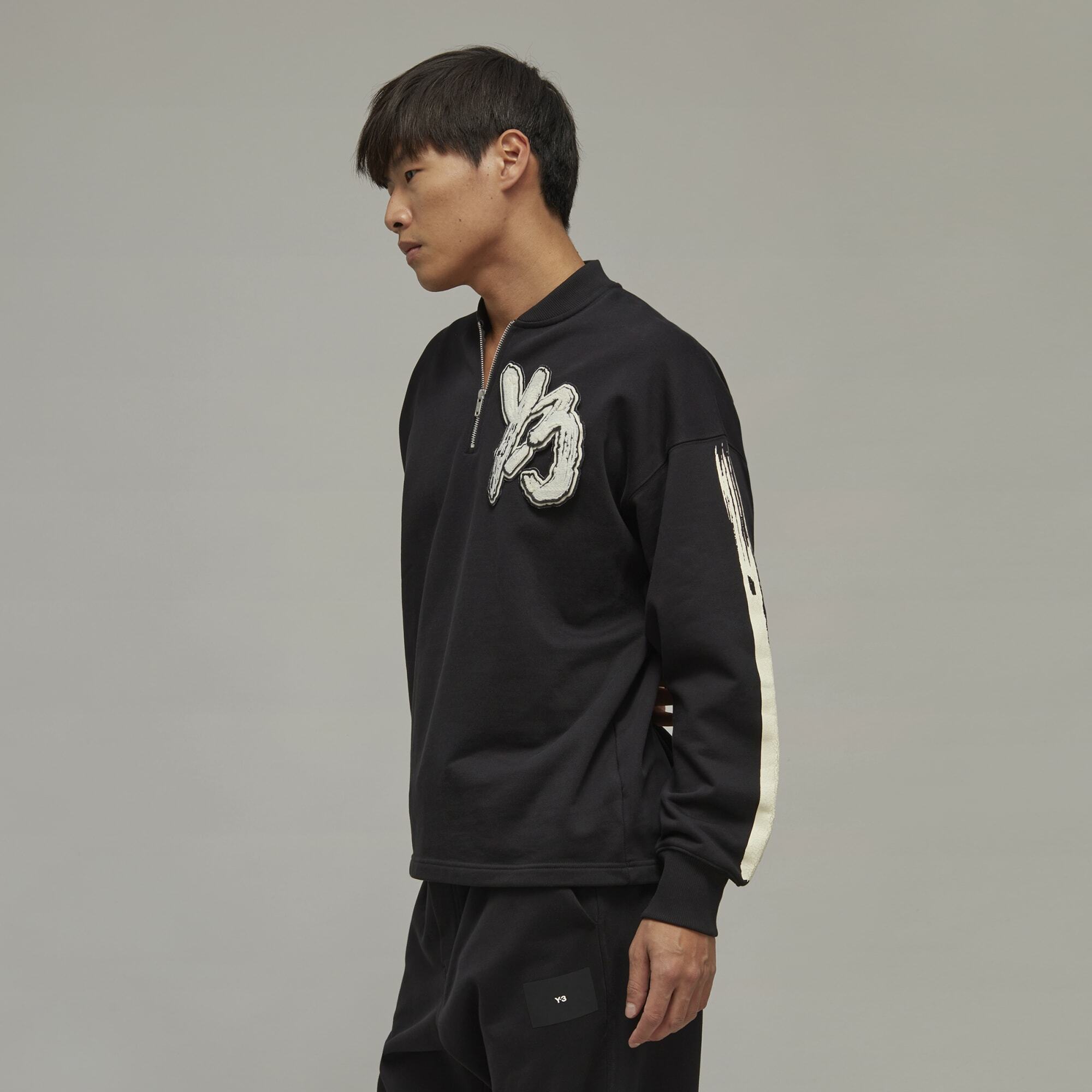 【 Y-3 GFX LOG FT CREW 半拉鍊長袖TEE - 黑 】