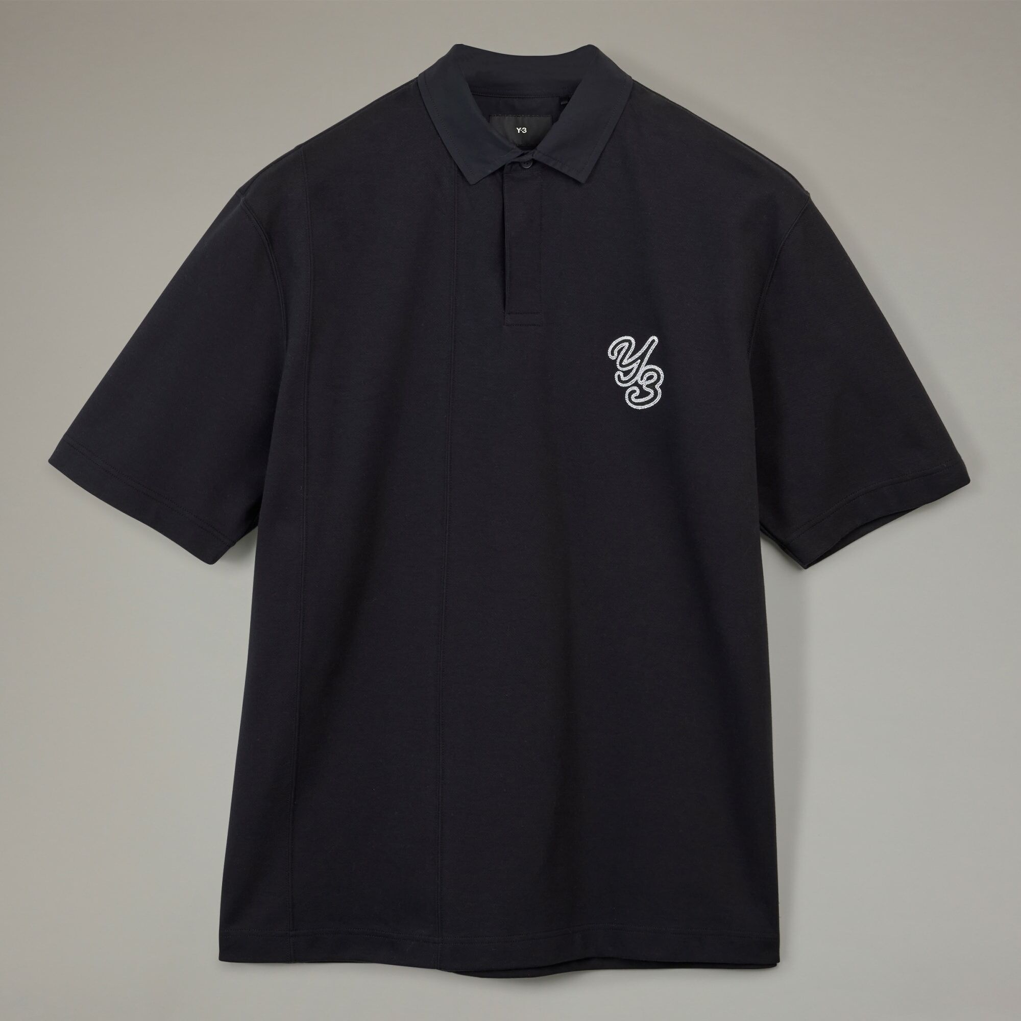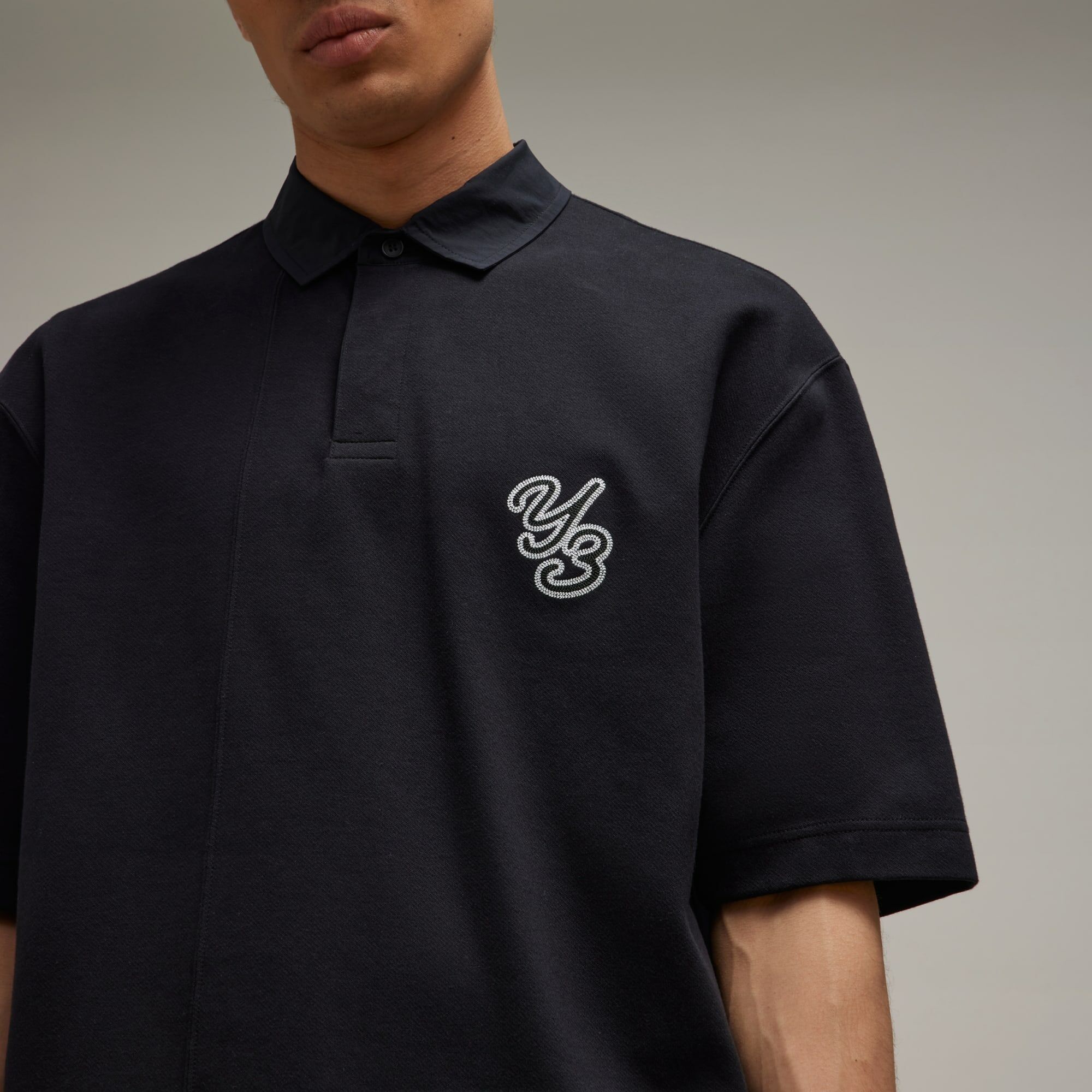 【 Y-3 RUGBY SS SHIRT 草寫LOGO重磅短袖POLO - 黑 】