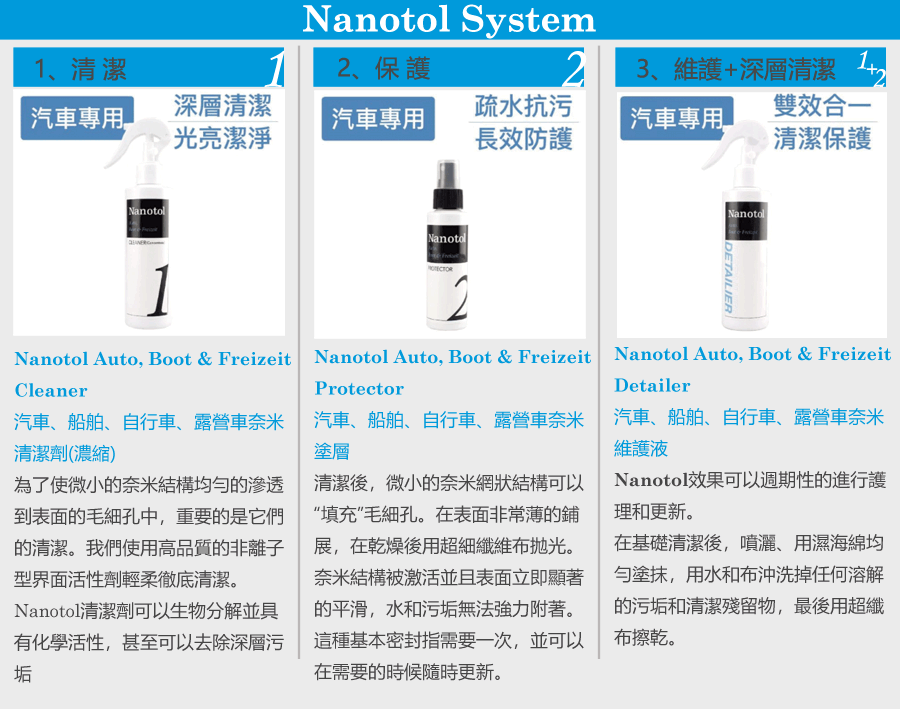 1.用Nanotol汽車奈米清潔劑稀釋於水桶或噴壺中,用洗車手套或洗車海棉進行清潔 (確認無蠟層殘留否則清潔劑無法深入毛細孔)