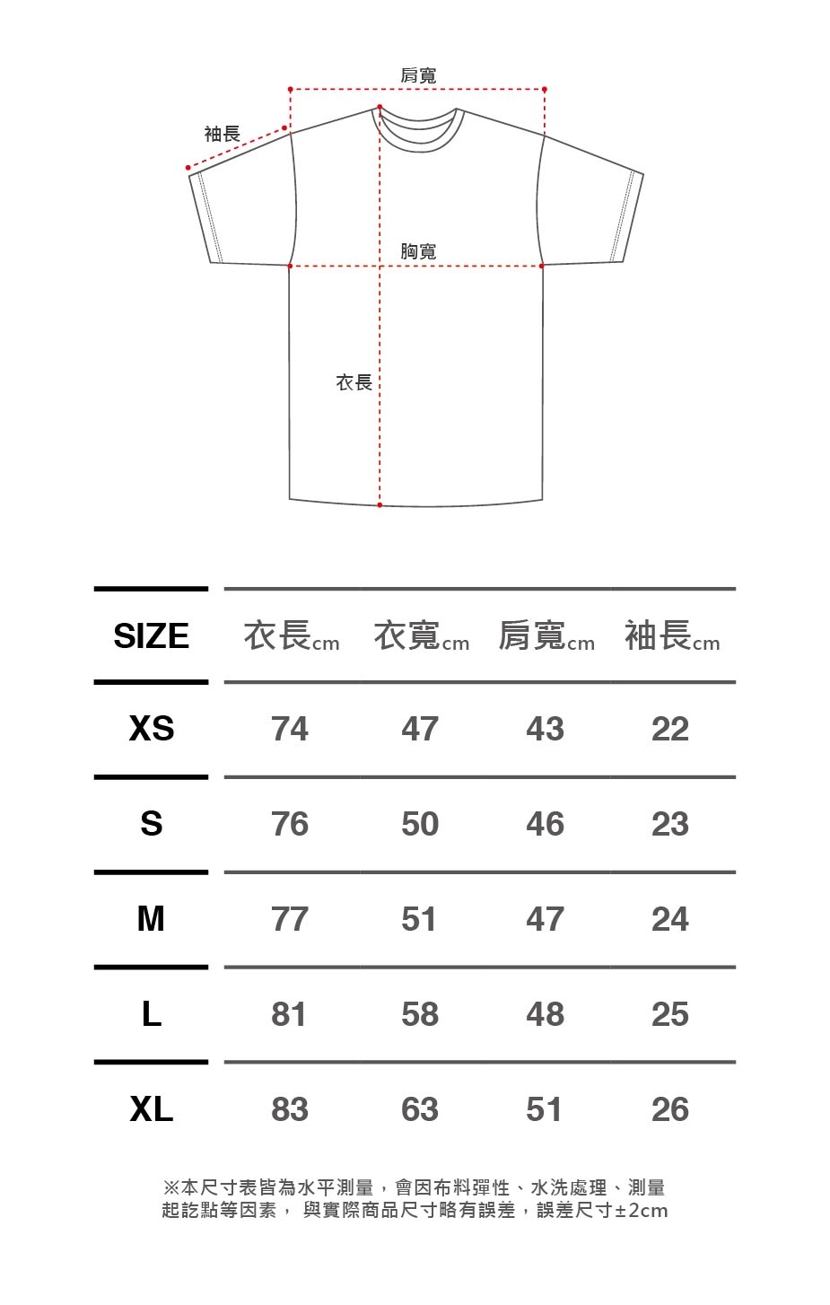 XS: 衣寬47/衣長74/肩寬43/袖長22