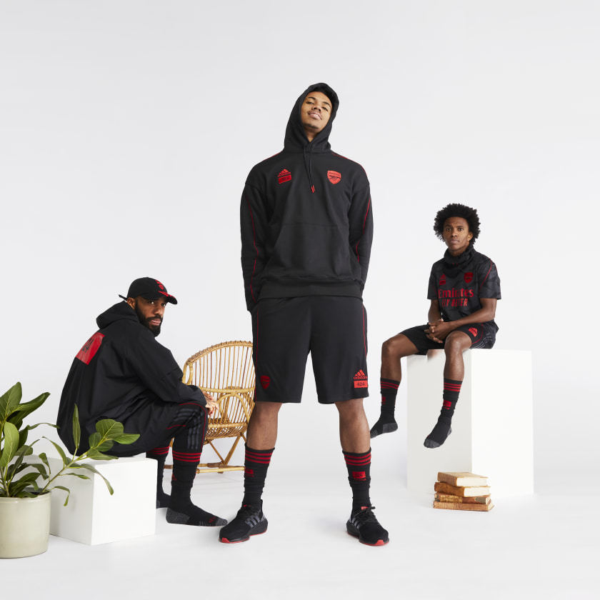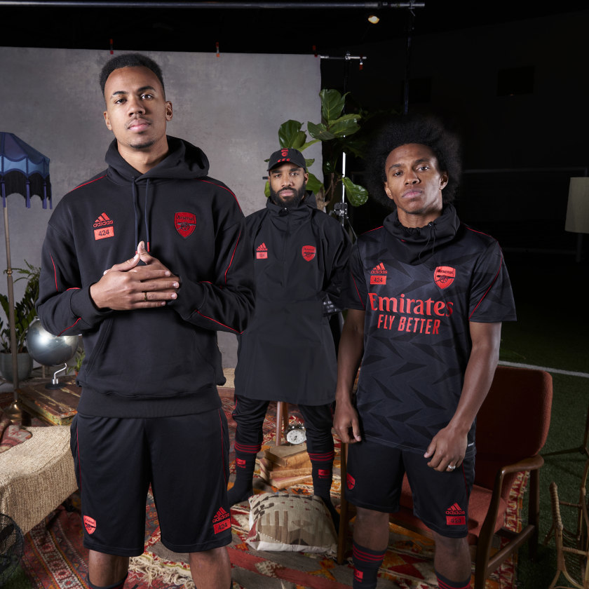 ★ 來自洛杉磯潮流單位424品牌是英超阿森納的正裝設計夥伴,本系列成功將街頭服飾與adidas的高性能產品做了完美的結合,突破了時尚與運動的界線。全系列大膽採用阿森納的黑/紅主色調,搭載AFC/424/adidas品牌LOGO,突出了阿聯酋體育場的建築風格,並以2020-21主場球衣的碳黑色圖案做為設計,實在令人感到興奮啊!