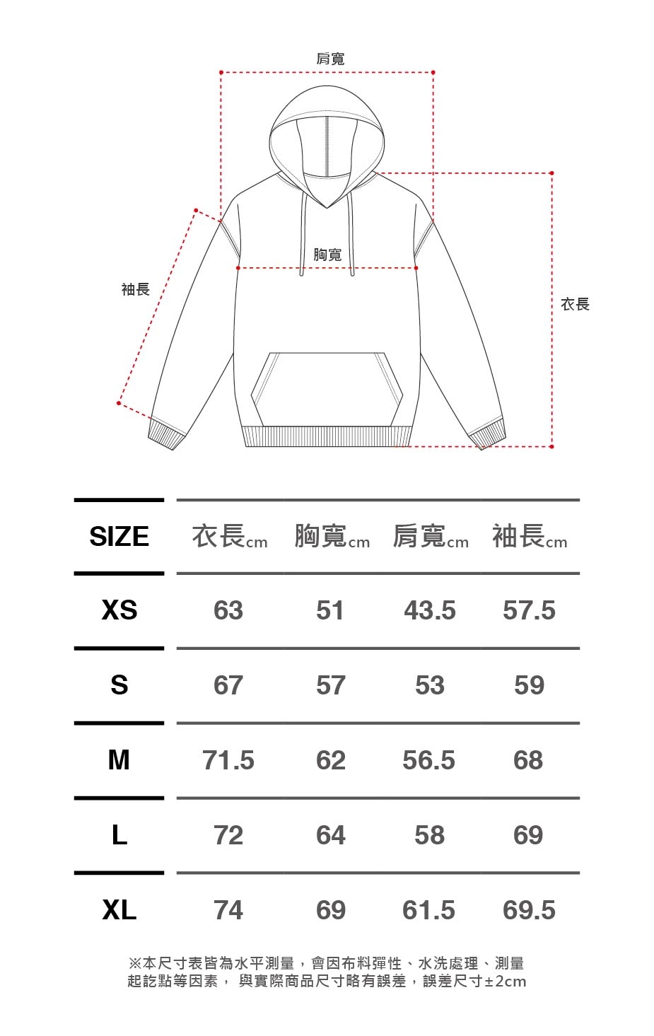 XS: 胸寬51/衣長63/肩寬43.5/袖長57.5