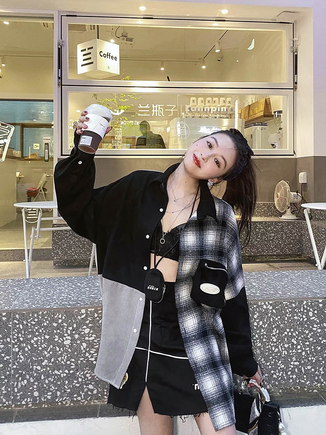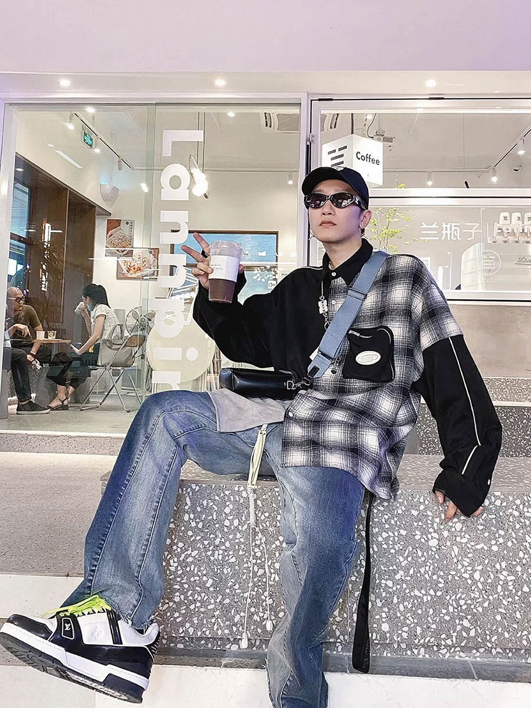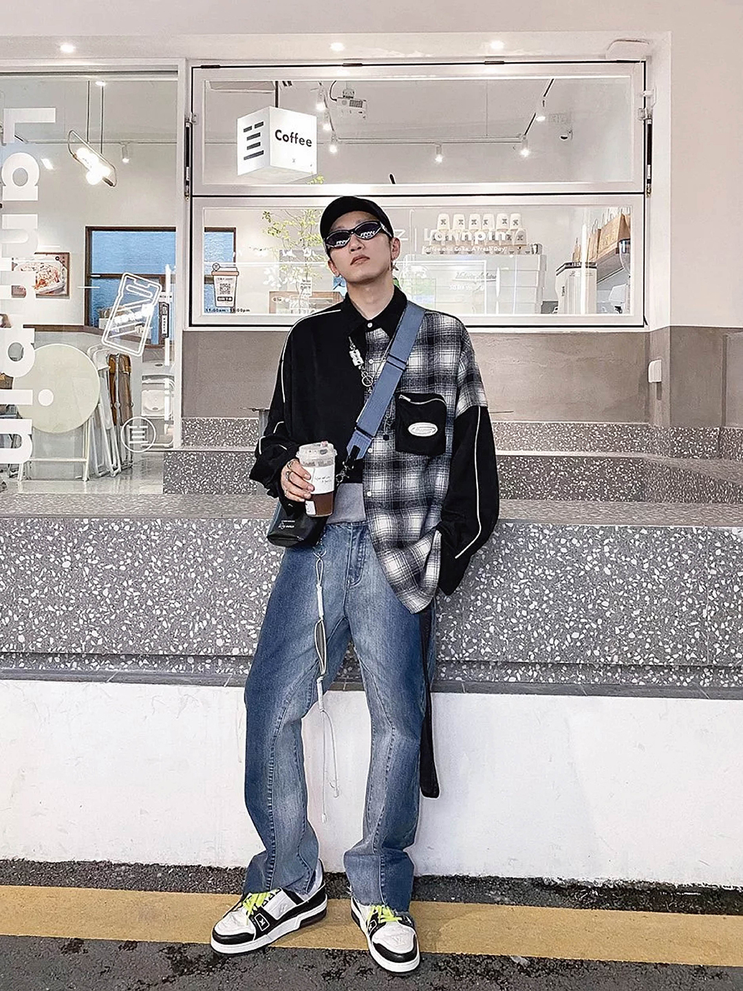 MAMC SUEDE STITCHING SHIRT  格子拼接麂皮襯衫