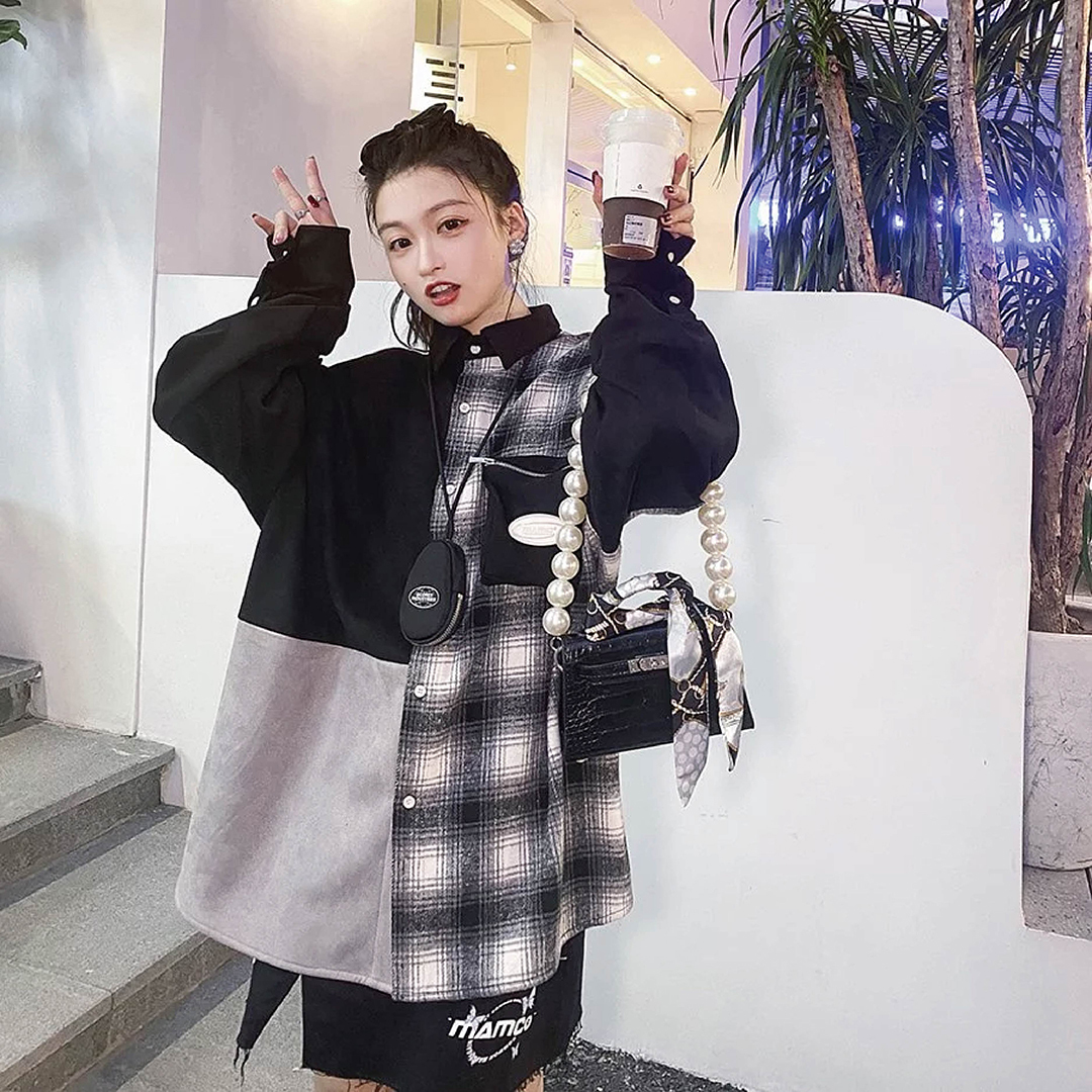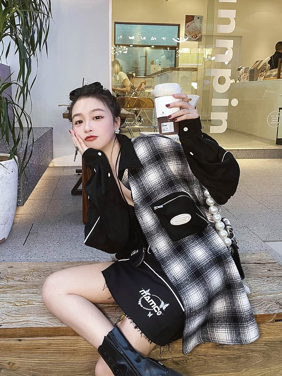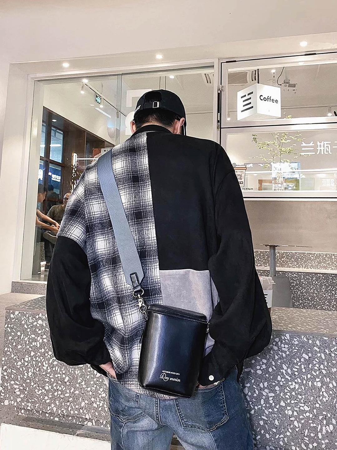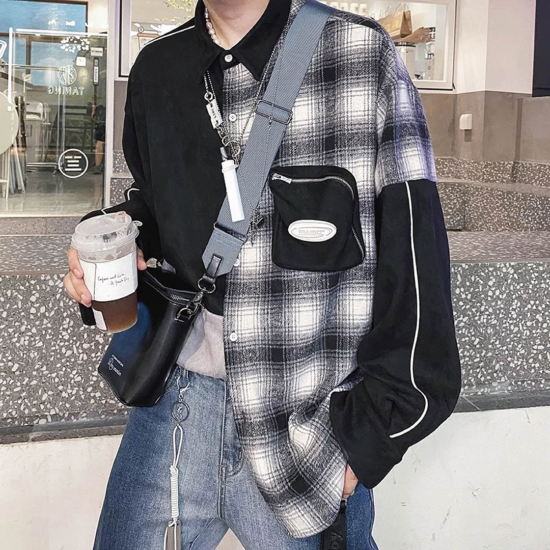 MAMC SUEDE STITCHING SHIRT  格子拼接麂皮襯衫