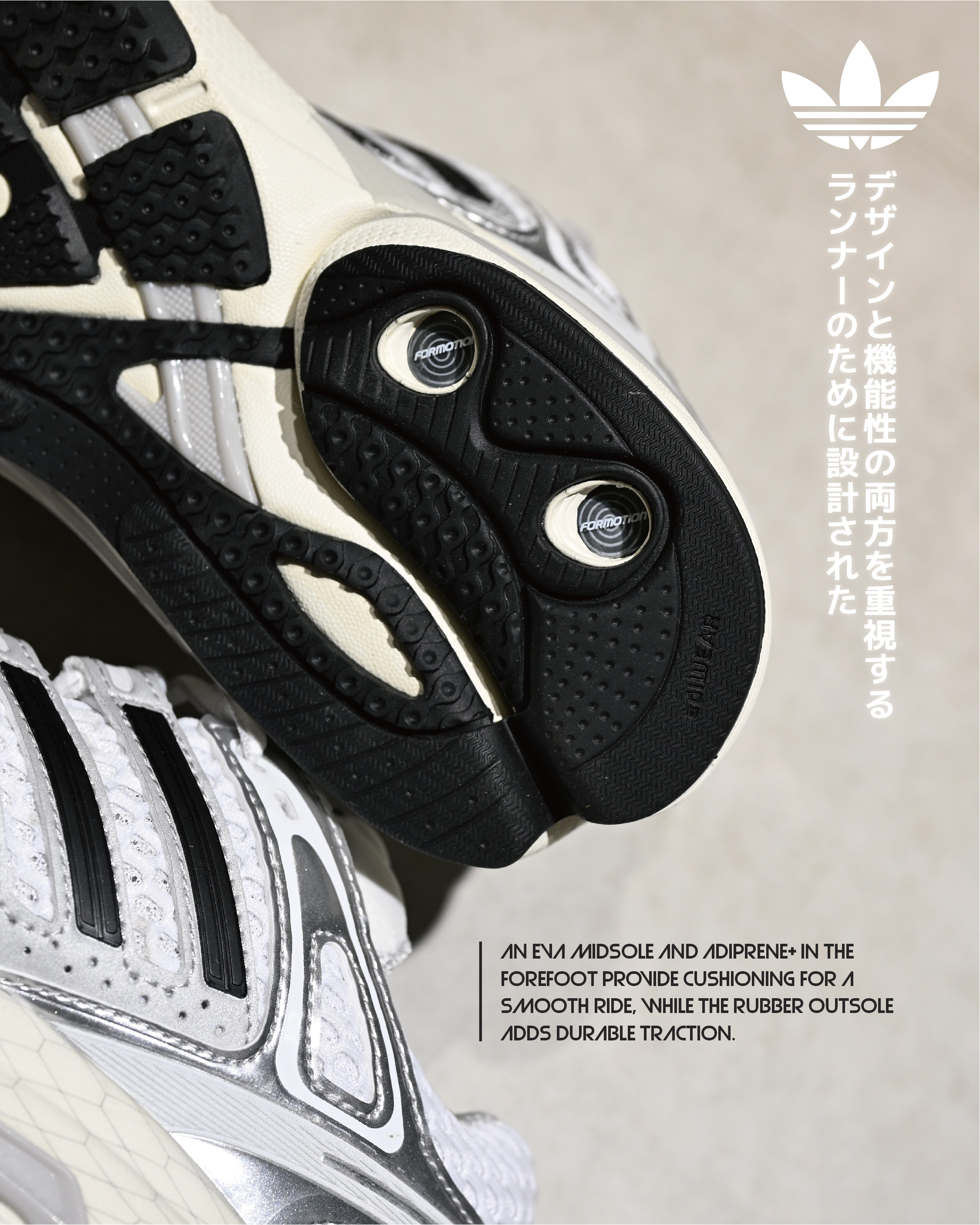 ★ 中底搭載 EVA 材質,前足區配置 Adiprene+ 緩震科技,帶來柔軟回彈與流暢步伐;橡膠外底則提供耐用的抓地力,確保行走穩定舒適。