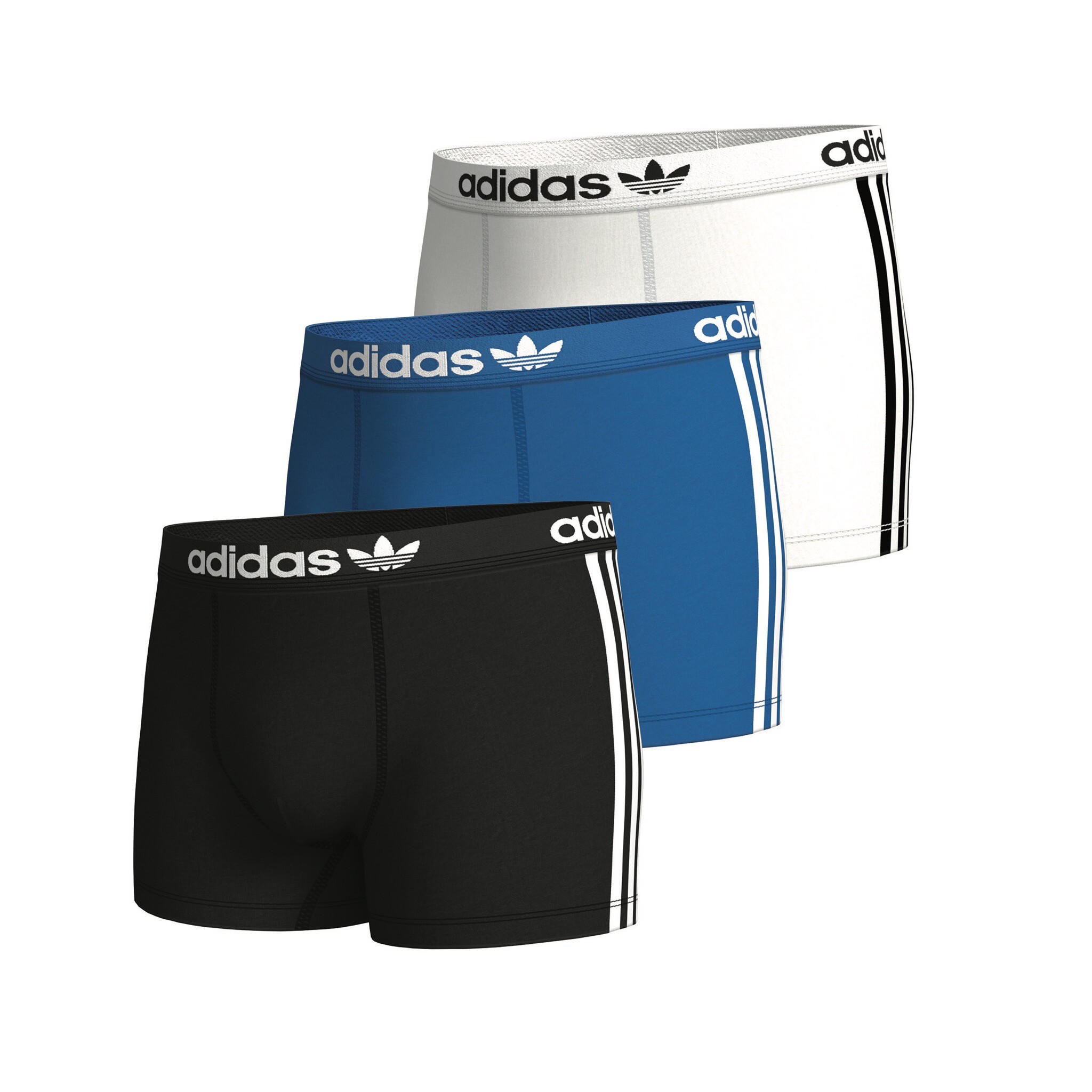 【 adidas AU M TRUNK 四角內褲組 3PACK - 白/藍/黑 】