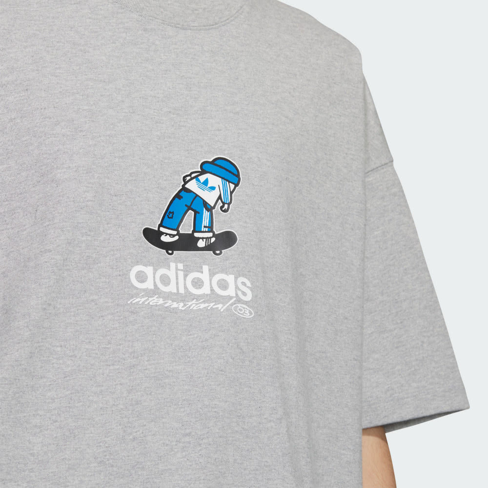 【 adidas CS TEE SS M 滑板塗鴉短TEE - 灰 】