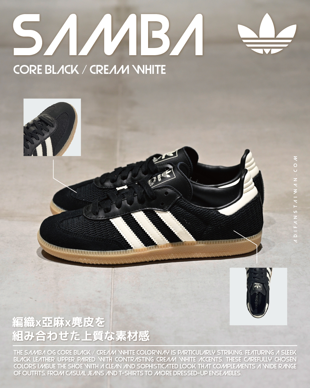 【 adidas SAMBA OG 編織麂皮鞋款 - 黑x白 】