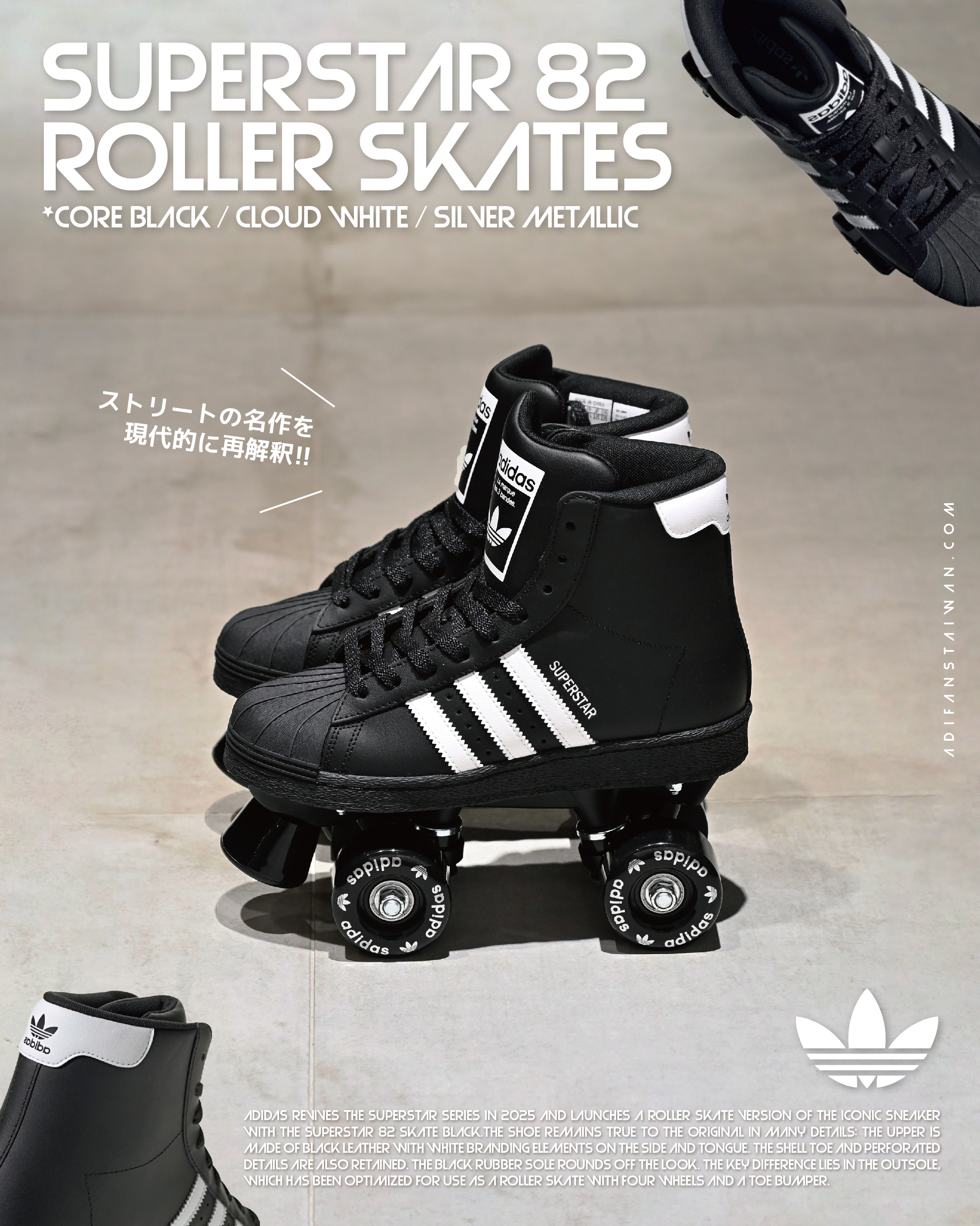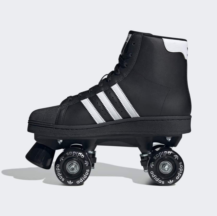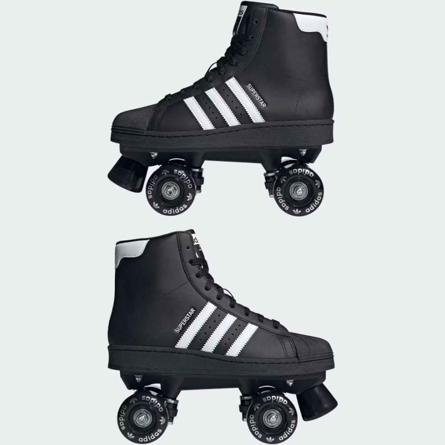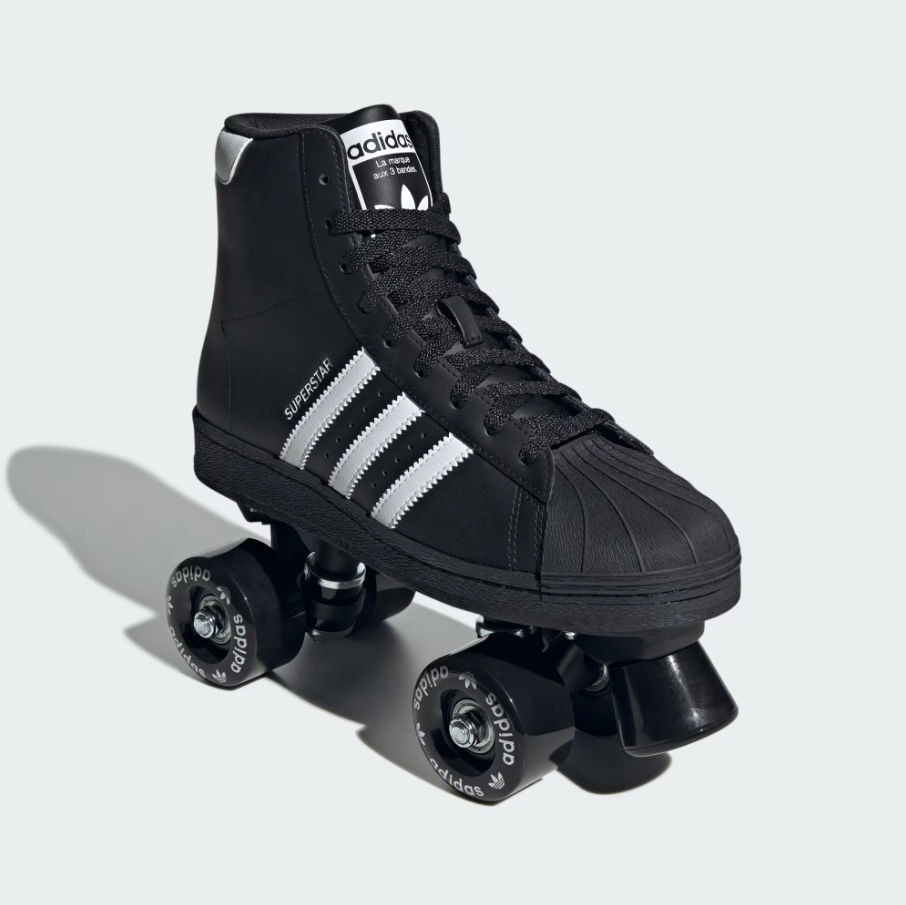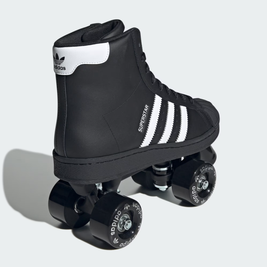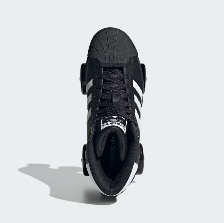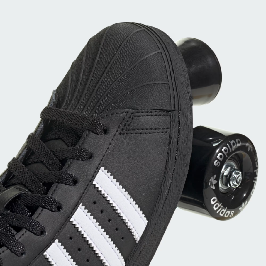 ★ 高筒鞋面以順滑的黑色塗層皮革打造,內裡填充柔軟襯墊,確保滑行時的舒適感受。鞋款配備前端剎車設計,並在滾輪上印有 adidas Superstar 標誌,完整呈現經典與時尚的融合。