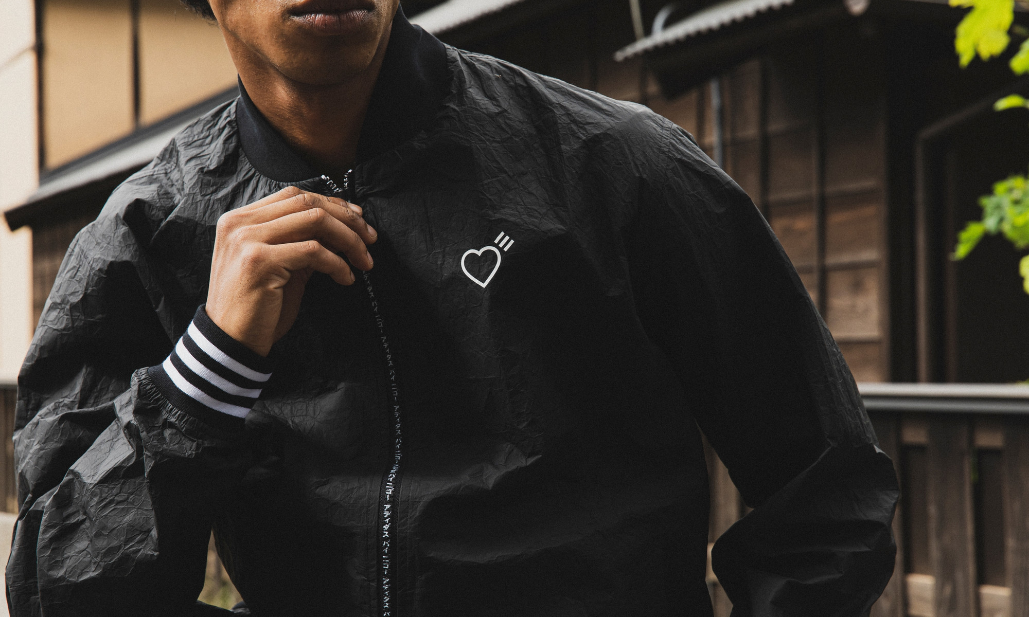 ★ 此番運動套裝在設計細節上放上了 HUMAN MADE 經典標誌簍空愛心LOGO,以及日文片假名拉鍊設計帶出聯名特色,非常具有品牌辨識度。而材質上特別選用 TYVEK 材質作為主面料,輕薄、抗皺、防皺、環保...等等特性,絕對是您的首選單品!