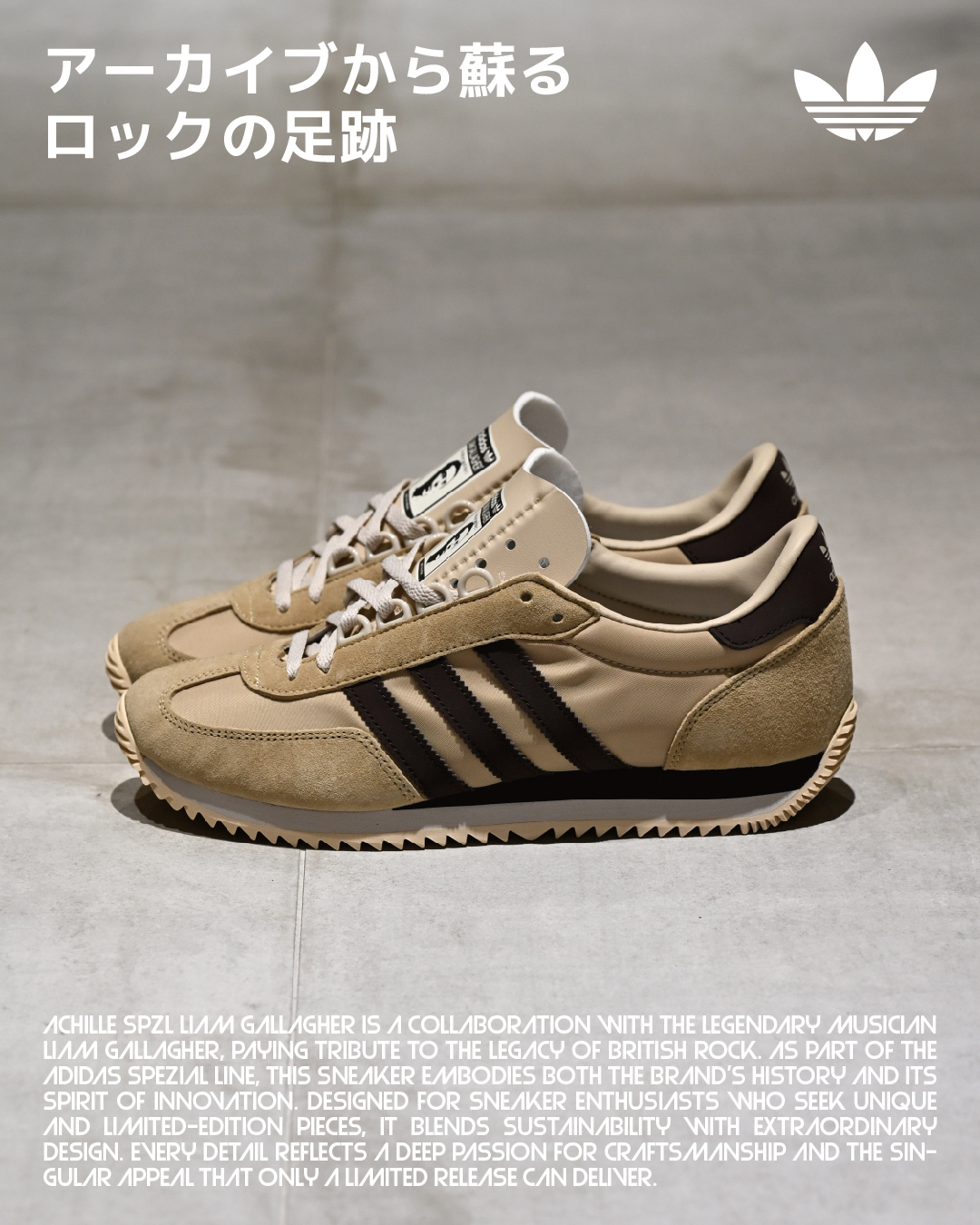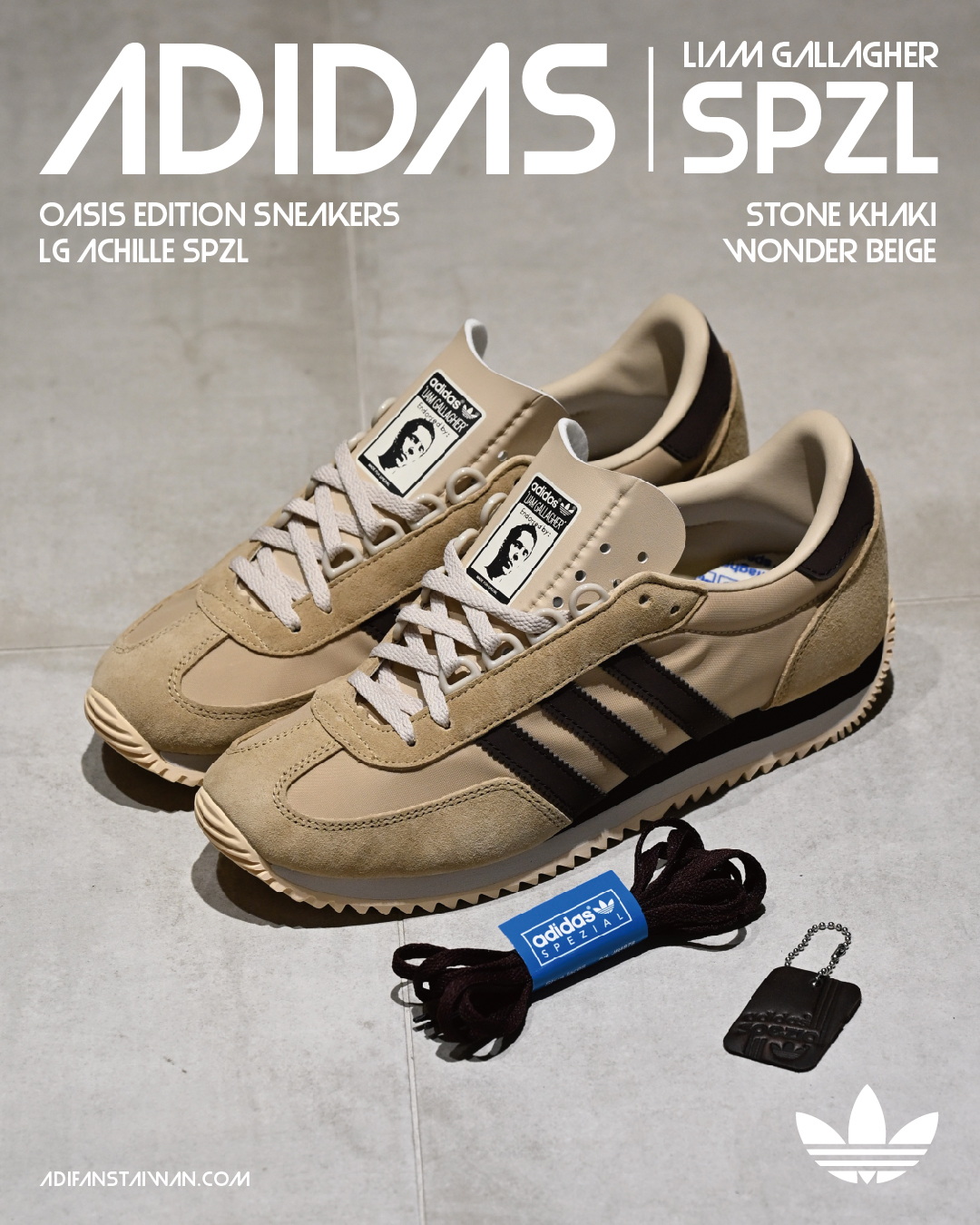 ★ 在此之前,Liam Gallagher 曾與 adidas SPZL 合作打造 LGI 與 LGII SPZL,這次則由他親自提出,希望復刻品牌檔案庫中的經典跑鞋 —— adidas Achille。本次版本以同色系呈現,並對鞋面結構進行細微調整:採用卡其色網布鞋面,搭配深巧克力棕三條紋、米色麂皮 T 字鞋頭覆片,以及沙色外底,完整演繹經典與現代的融合。