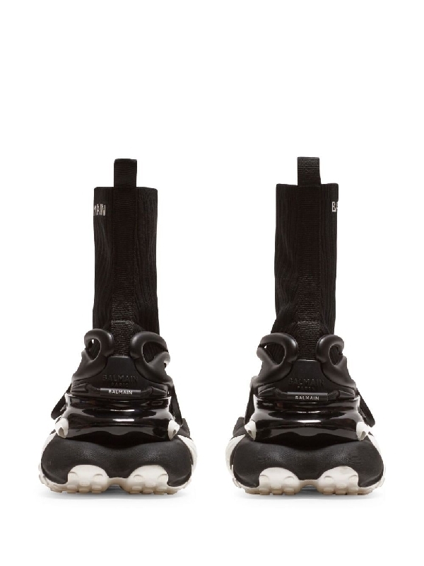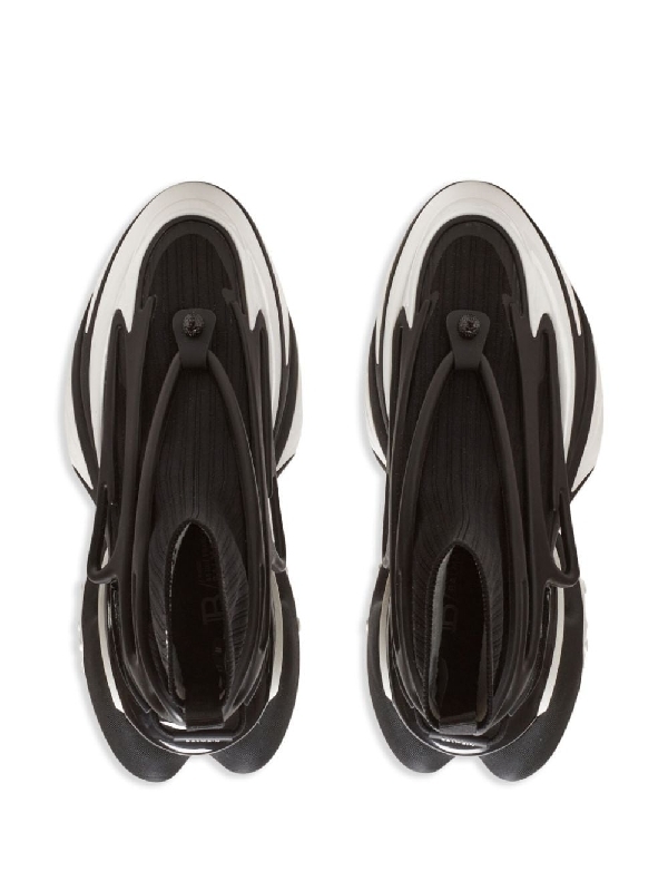 【 BALMAIN UNICORN KNITTED 高筒皮革運動鞋 - 黑白 】