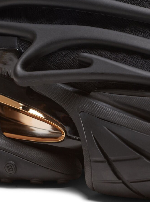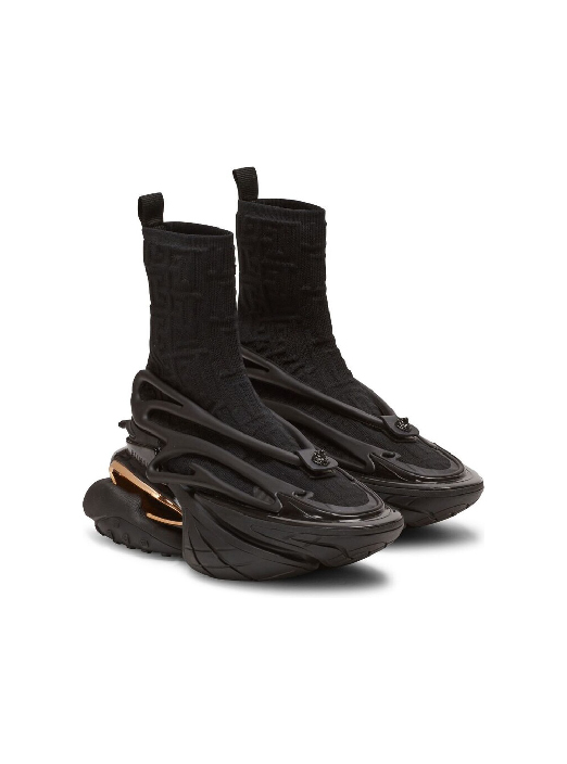 【 BALMAIN UNICORN KNITTED 高筒皮革運動鞋 - 黑金 】