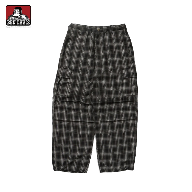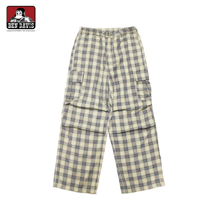 BEN DAVIS 推出全新款式的寬版直筒工裝褲,採用鬆緊腰頭搭配抽繩設計,兼具舒適度與調節性。以格紋布料呈現經典風格為整體造型注入洗練的街頭氛圍。膝部設有活動褶皺(Action Pleats)設計,搭配流行的寬鬆版型,不僅能展現時下的時尚比例,也能自由搭配多樣造型。無論是街頭風格還是古著混搭,皆能完美融入,打造兼具舒適與風格的日常穿搭。