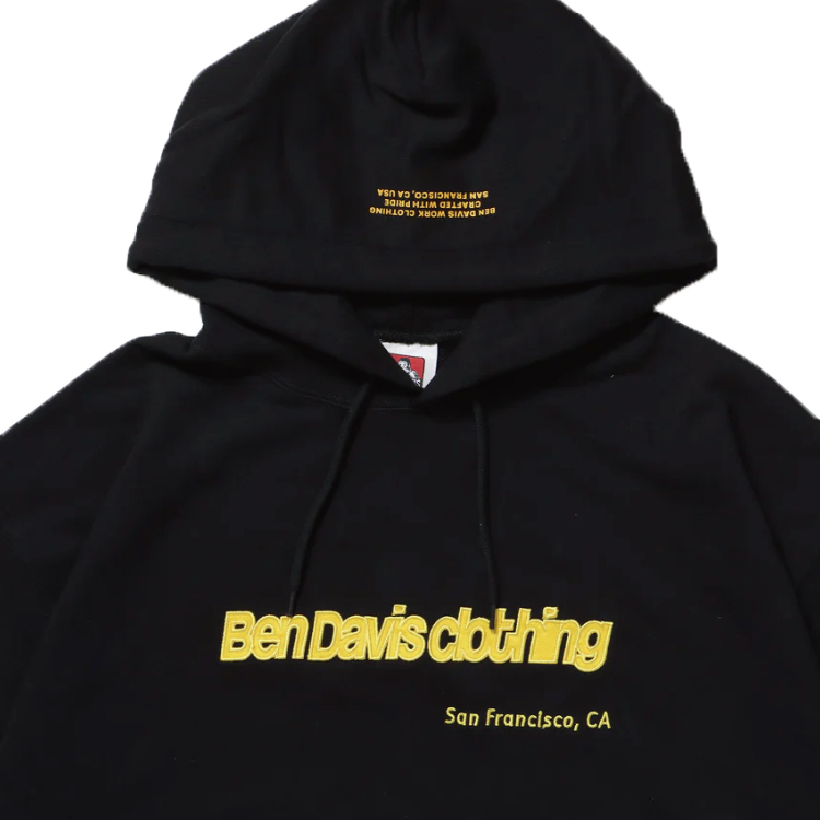 【 BEN DAVIS | 刺繡CLOTHING連帽TEE - 黑x黃 】