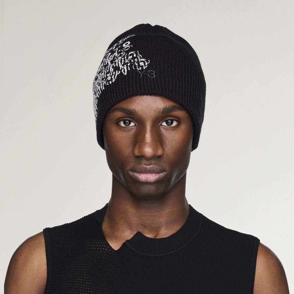 【 Y-3 GRAPHIC BEANIE 解構文字毛帽 - 黑 】