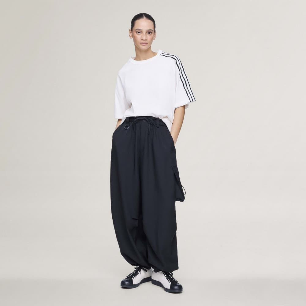 融合 Yohji Yamamoto 前衛的設計感性與 adidas 運動服裝的機能科技,完整呈現 Y-3 一貫洗鍊且富有張力的設計哲學。選用 柔軟親膚的材質,帶來滑順舒適的穿著體驗;細節處以 不收邊(Raw Edge)剪裁工藝 呈現,搭配具象徵性的 三條線設計,為整體造型增添鮮明個性與層次感。