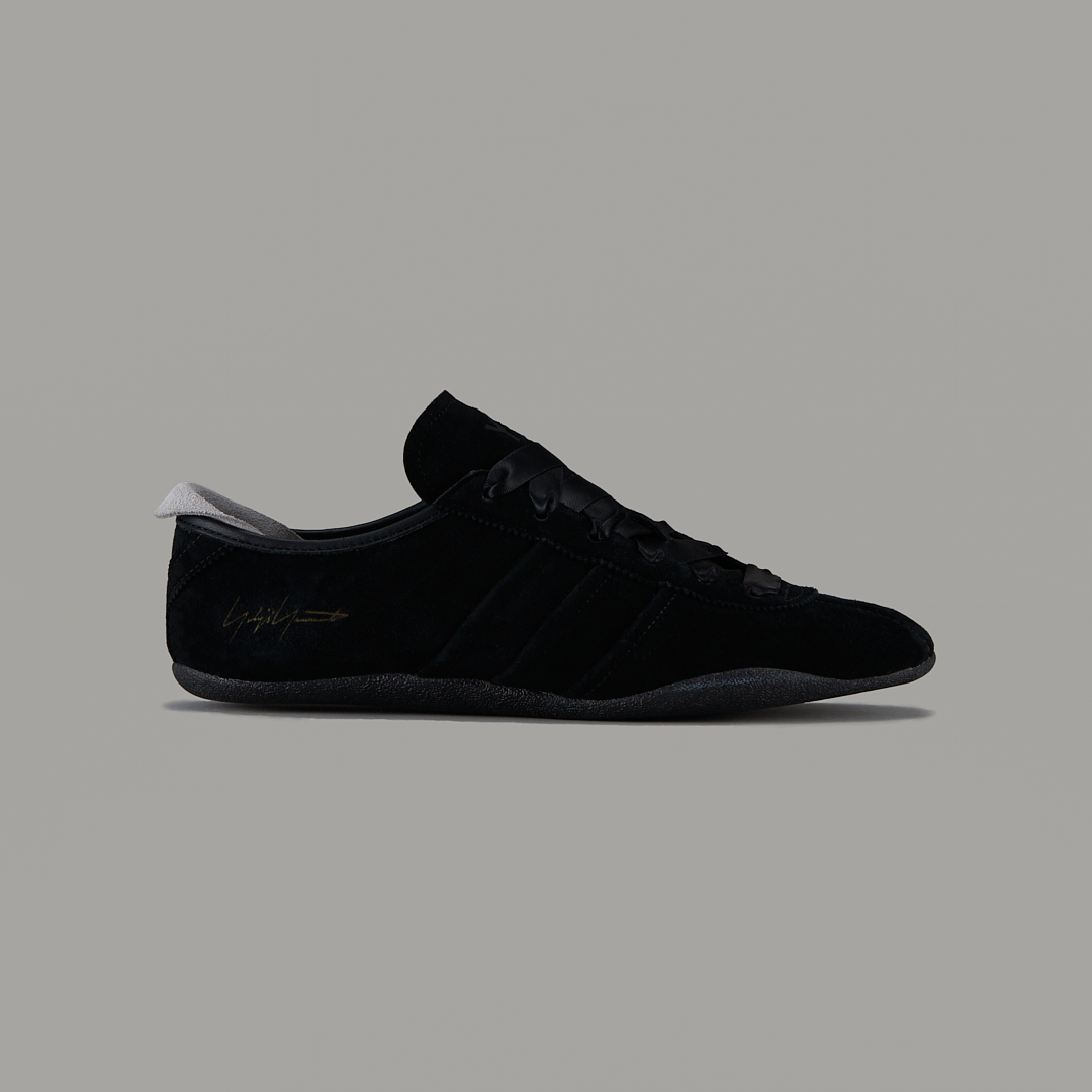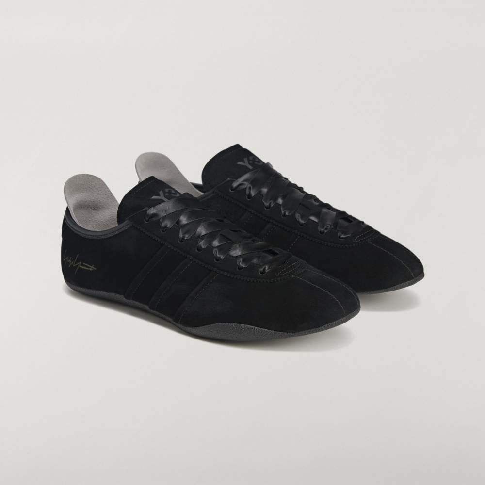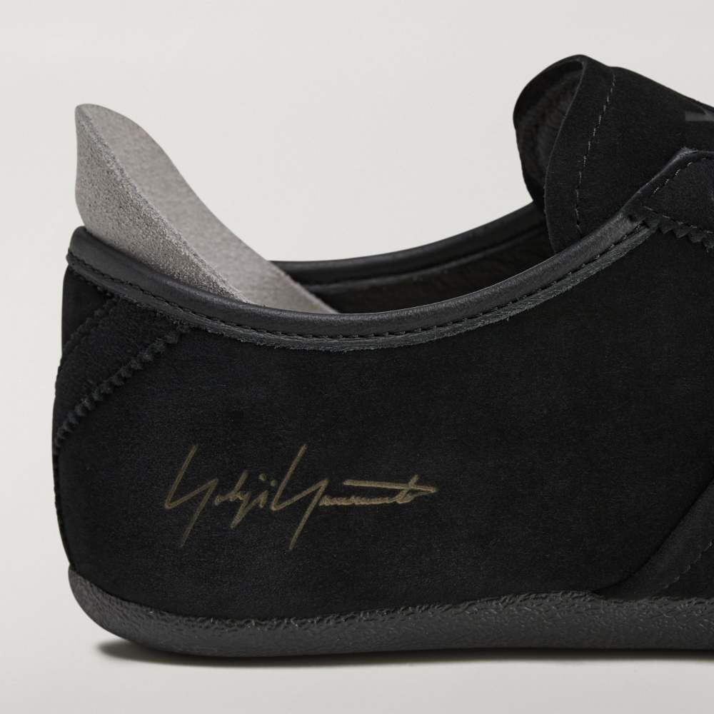 側面飾有經典三條線,鞋舌上壓印 Y-3 標誌與 Yohji Yamamoto 簽名,鞋跟則以獨特的 “Y” 造型細節作為視覺亮點。