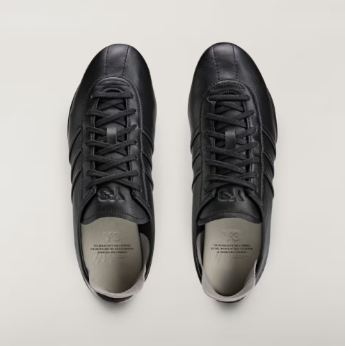 鞋款採用 全皮革結構,觸感柔軟細膩,帶來獨特的手感體驗;橡膠外底提供穩定可靠的抓地力,冷膠貼合(Cold Cement)工法 則提升整體耐用性與結構穩定度。 細節部分,鞋身飾有 經典三條線、壓印 Y-3 Logo、印刷 Yohji Yamamoto 簽名,以及後跟處象徵 Y-3 合作關係的 Y 字形設計,在低調中流露出鮮明而細膩的品牌識別。